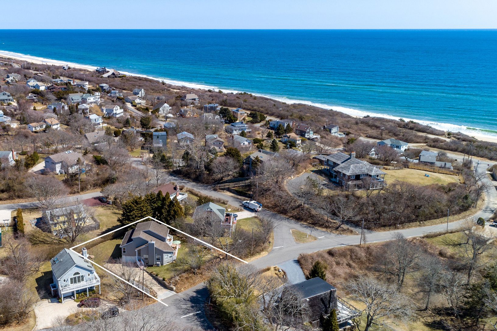 Ideally located in Montauk's highly sought-after Hither Hills community, this charming beach house is just a block away from a fabulous, private ocean beach. Enter the home to a light-filled living room with double-height ceilings and a welcoming fireplace. The large, open kitchen with stainless steel appliances and adjacent dining area opens to an inviting sun deck, wonderful for entertaining. Two large guest bedrooms share a full bath. T