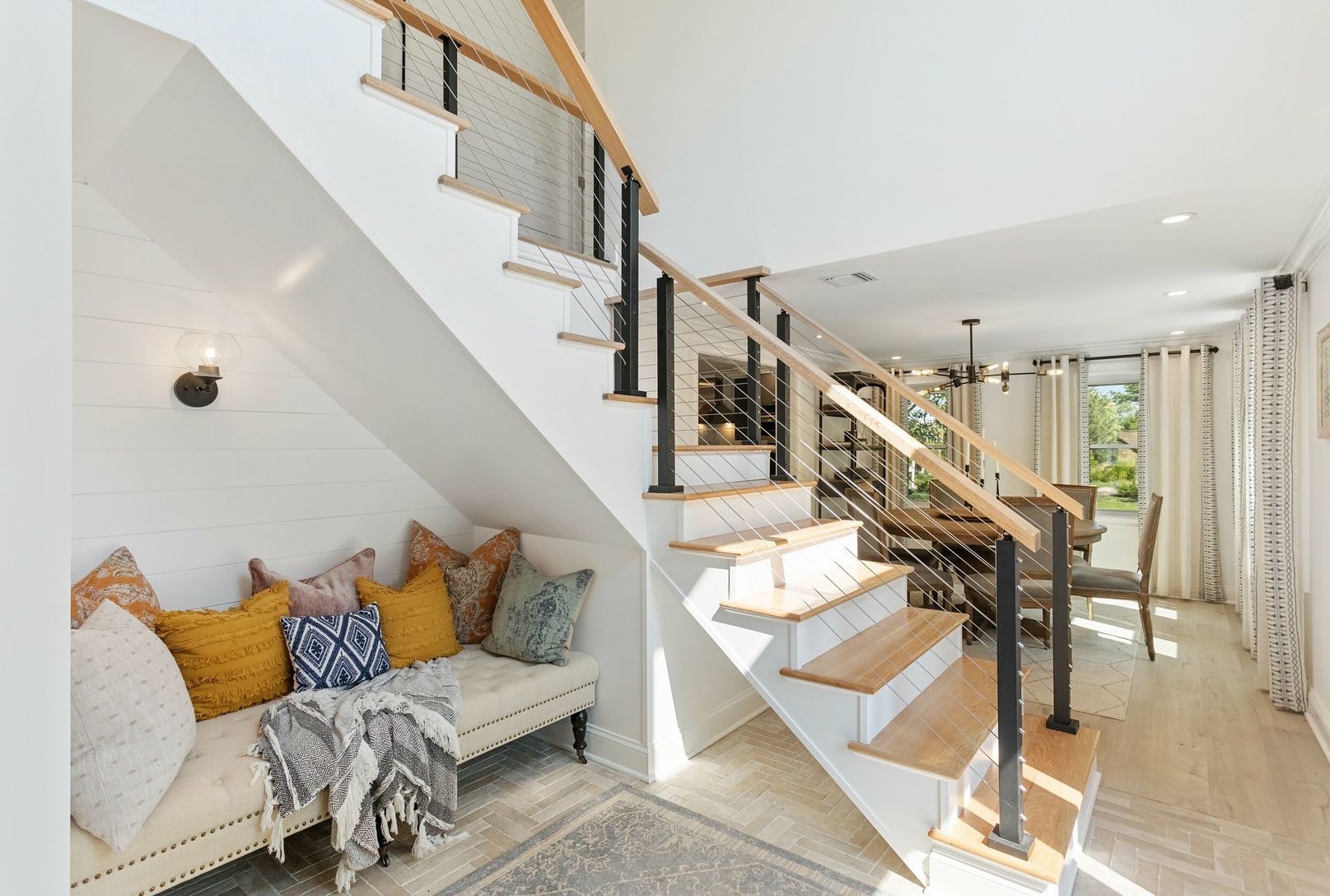 Bright, airy, and completely renovated in 2020. This Southampton designer home is located just moments from award winning ocean beaches and the world-renowned Shinnecock Hills Golf Club. The layout offers a double height foyer, designer kitchen with custom cabinets, quartz countertops with a waterfall island, and kitchenAid appliances. The adjoining dining room and living room complete with a built-in wet bar offer plenty of space to entertain