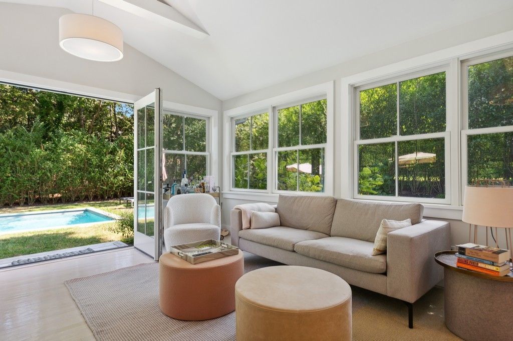 This fantastic turn-key home, renovated in 2018 is conveniently located minutes to the Village of Sag Harbor and Bay Beaches. The design features high ceilings and large windows which flood the home with natural light and fantastic views of the pool. With an open-flow complemented by hardwood floors throughout, the home has a stylish living room, and a stunning Chef's kitchen with stainless steel appliance and center Island, which opens to the
