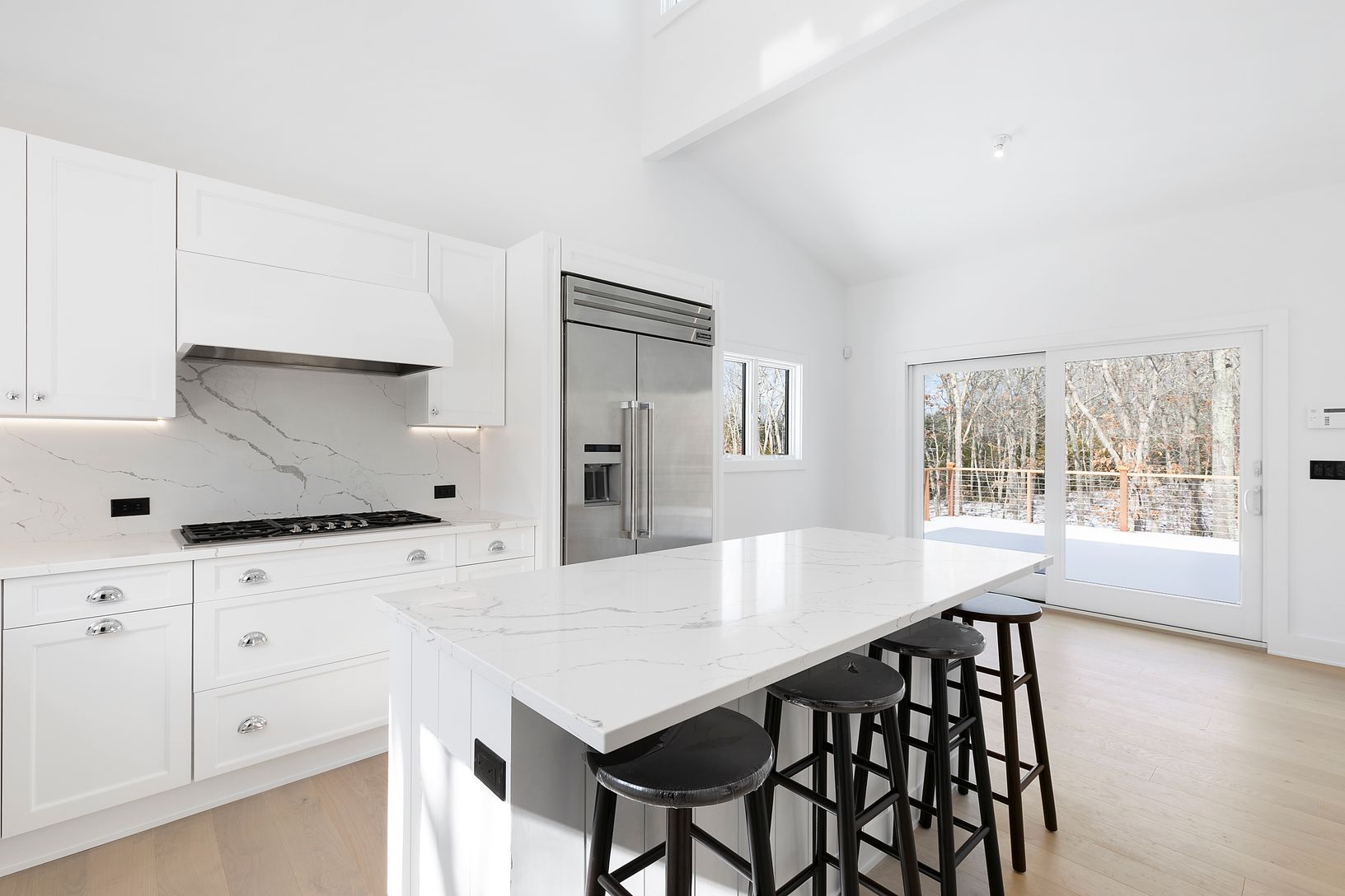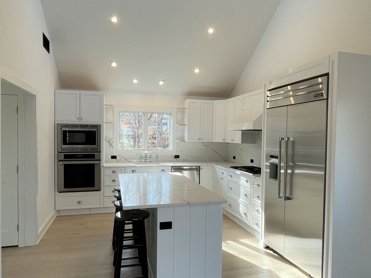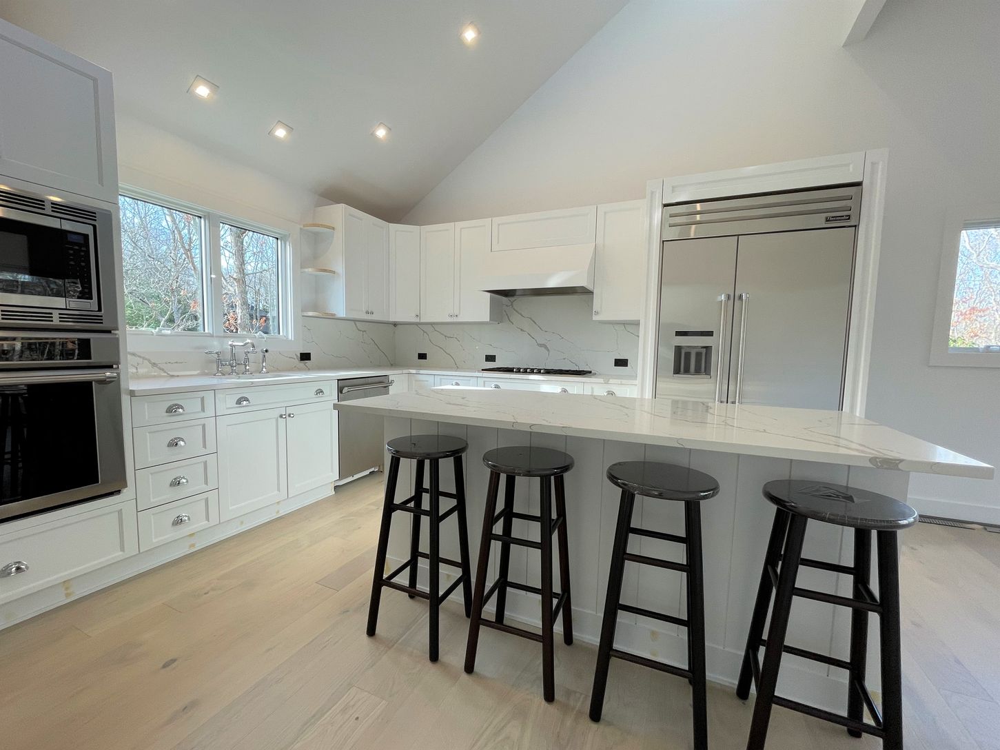 A pristine top to bottom renovation in the wonderful and desirable Southampton Acres Homeowner’s Association has just been completed. There are four ensuite bedrooms, one half-bath, living room with 42" gas fireplace, eat-in kitchen with Calacatta One marble countertops and backsplash, Thermador appliances, dining area, mahogany deck with BBQ set up, six-inch wide plank engineered floors, Nivean boiler, forced air heat and AC, Lutron Caseta l