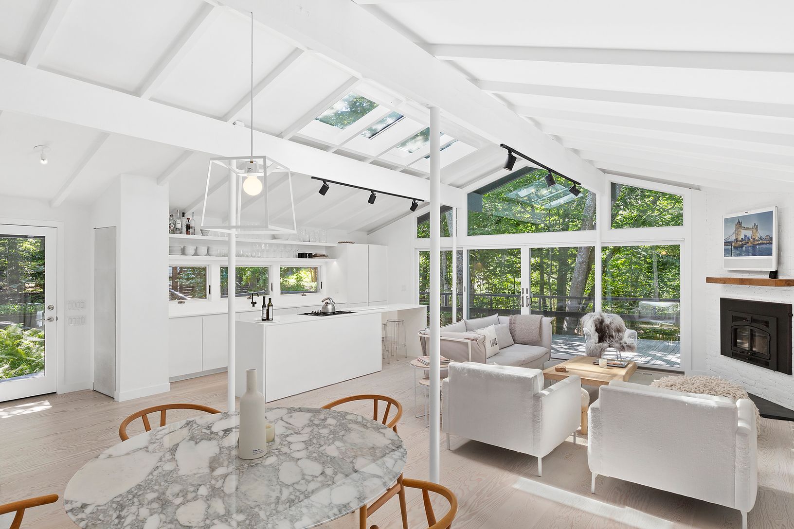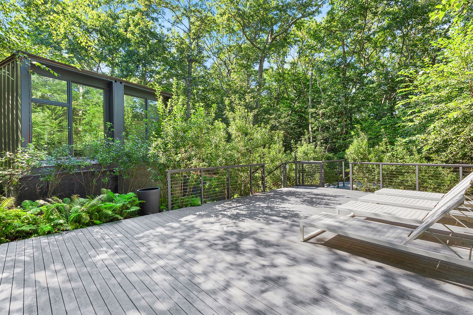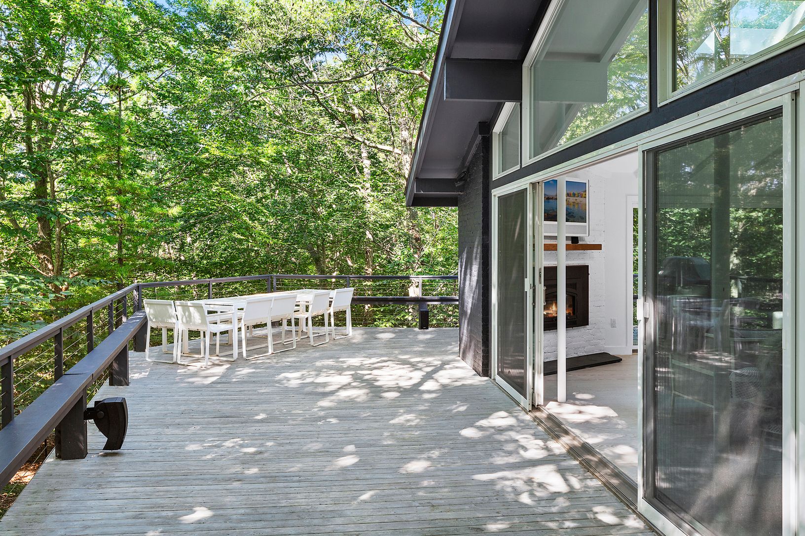 This three bedroom three bathroom Australian designed contemporary home affectionately named the “Treehouse” truly embodies the indoor and outdoor lifestyle. Located on the border of East Hampton Springs and Amagansett North the house has been fully renovated with high end finishes and provides a fun environment to enjoy complete privacy year round. Upon entering the home you are presented with a light, bright and open vaulted living, kitchen