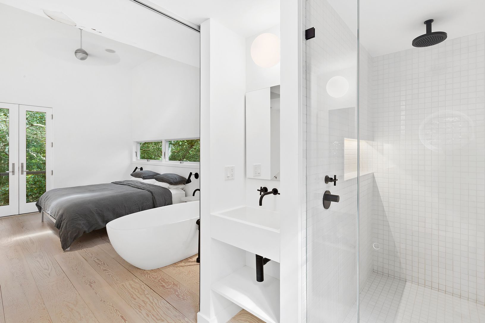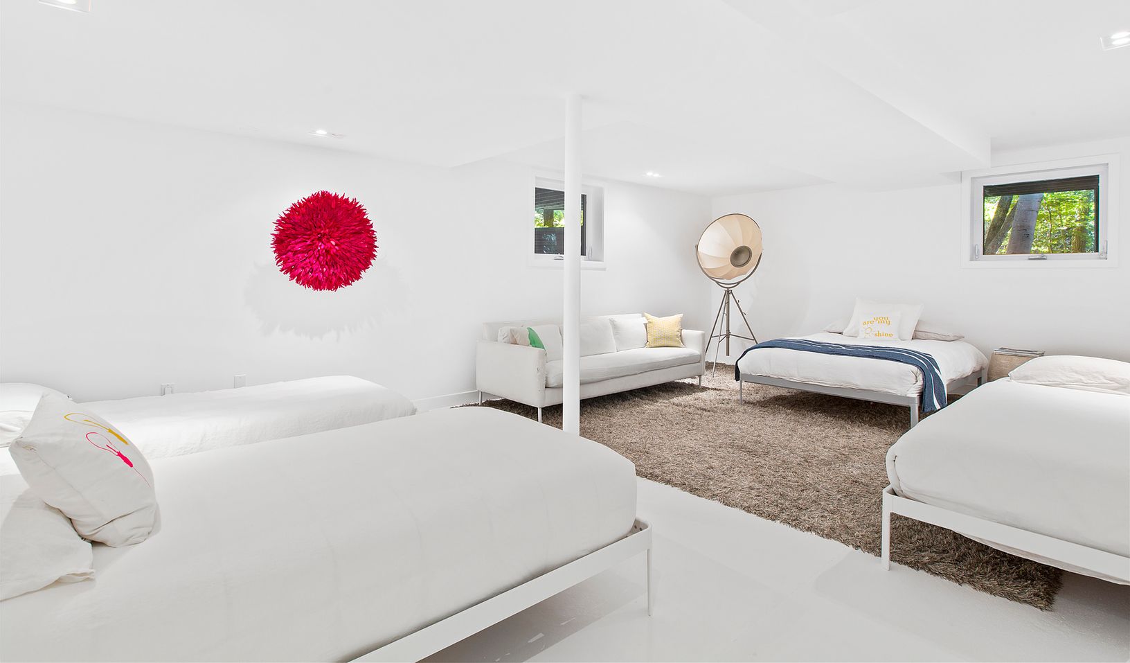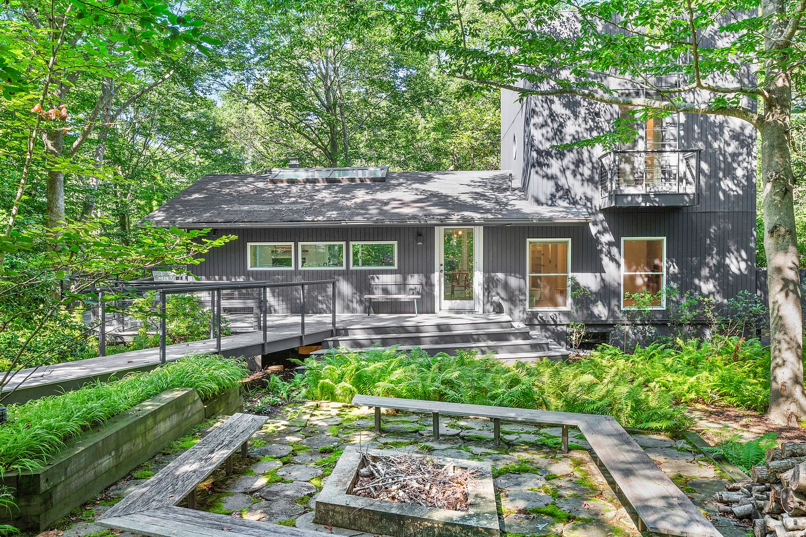 This three bedroom three bathroom Australian designed contemporary home affectionately named the “Treehouse” truly embodies the indoor and outdoor lifestyle. Located on the border of East Hampton Springs and Amagansett North the house has been fully renovated with high end finishes and provides a fun environment to enjoy complete privacy year round. Upon entering the home you are presented with a light, bright and open vaulted living, kitchen