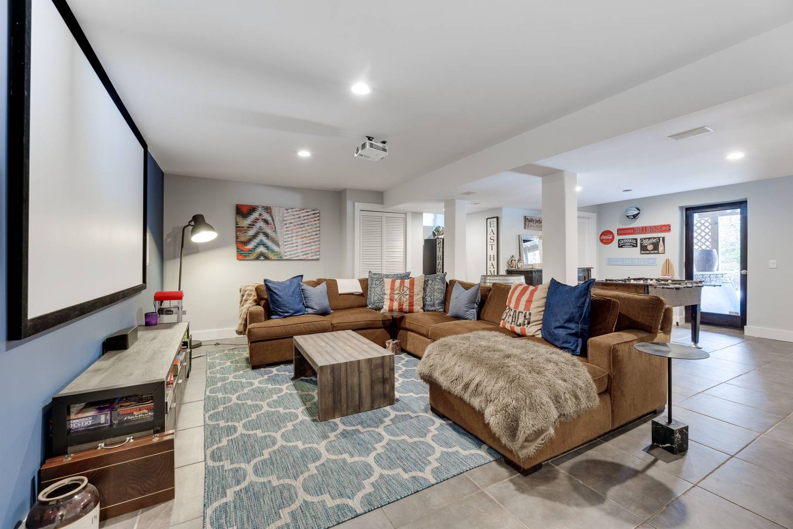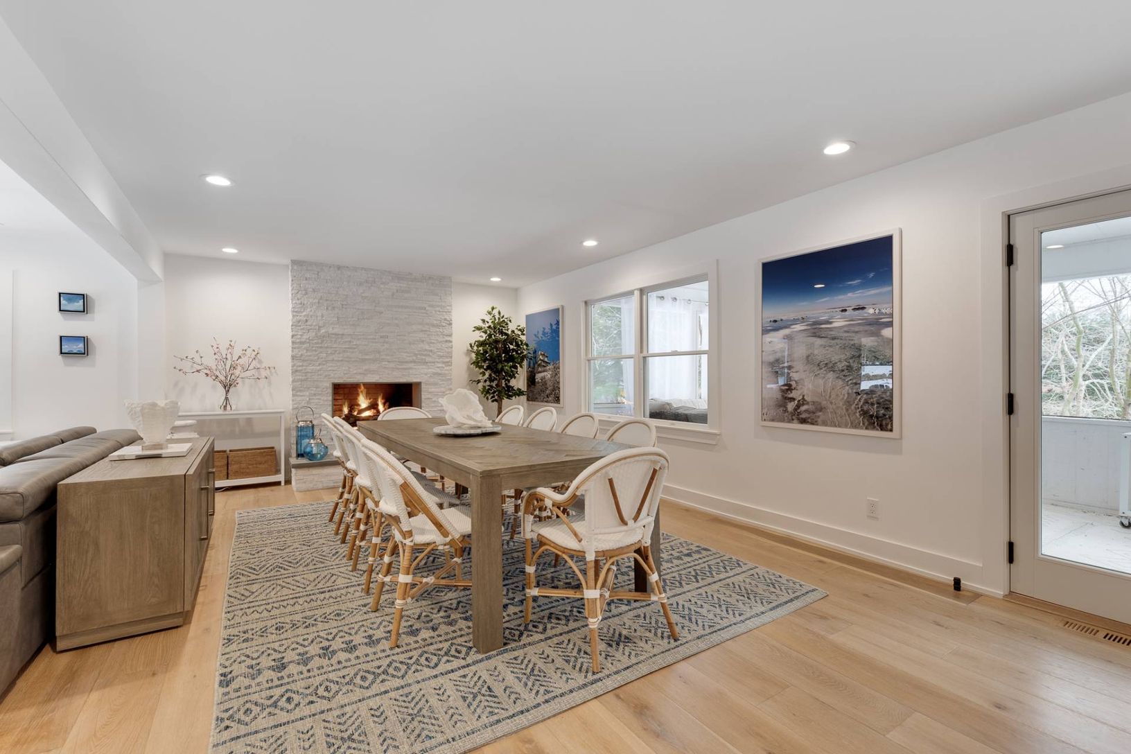 Located in the Hands Creek subdivision, with water access just around the corner, this renovated and stylish home has much to offer. The main floor is open concept, with gorgeous wide plank oak flooring, stacked stone fireplace and walls of windows bringing in beautiful natural light. There is a substantial seating area, dining area, and fully remodeled kitchen with excellent storage, quartz countertops, and high end appliances. In addition th