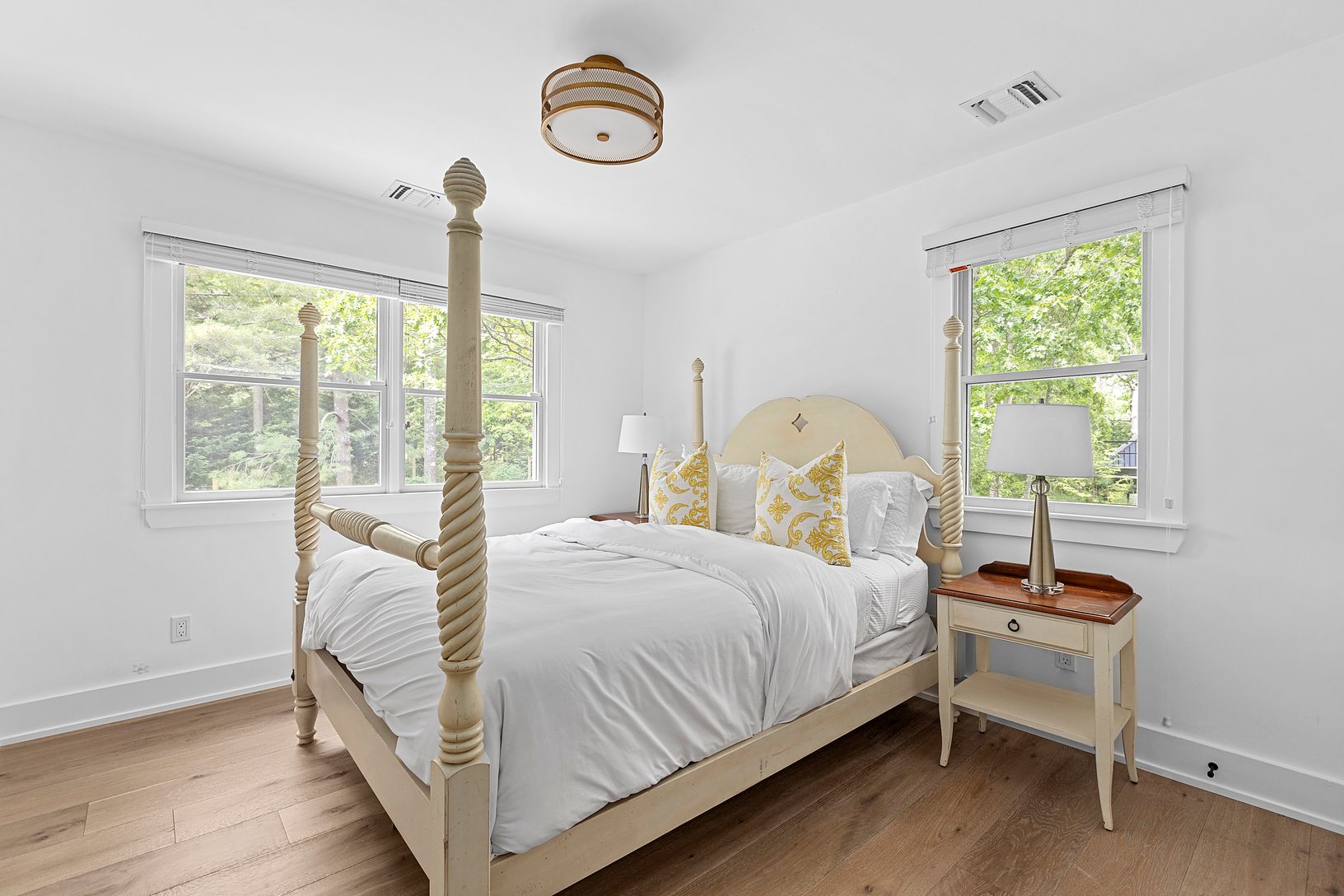 Located in the Hands Creek subdivision, with water access just around the corner, this 6 bed, 4.5 bath renovated and stylish home has much to offer. The main floor is open concept, with gorgeous wide plank oak flooring, stacked stone fireplace and walls of windows bringing in beautiful natural light. There is a substantial seating area, dining area, and fully remodeled kitchen with excellent storage, quartz countertops, and high end appliances