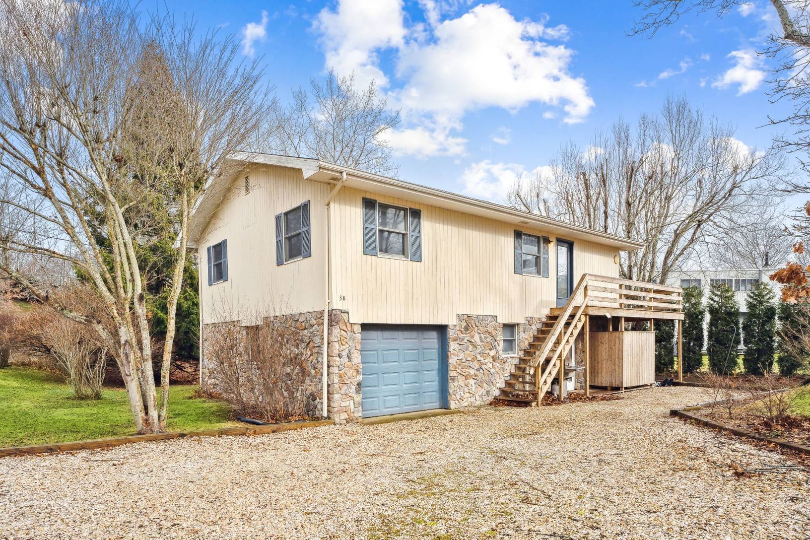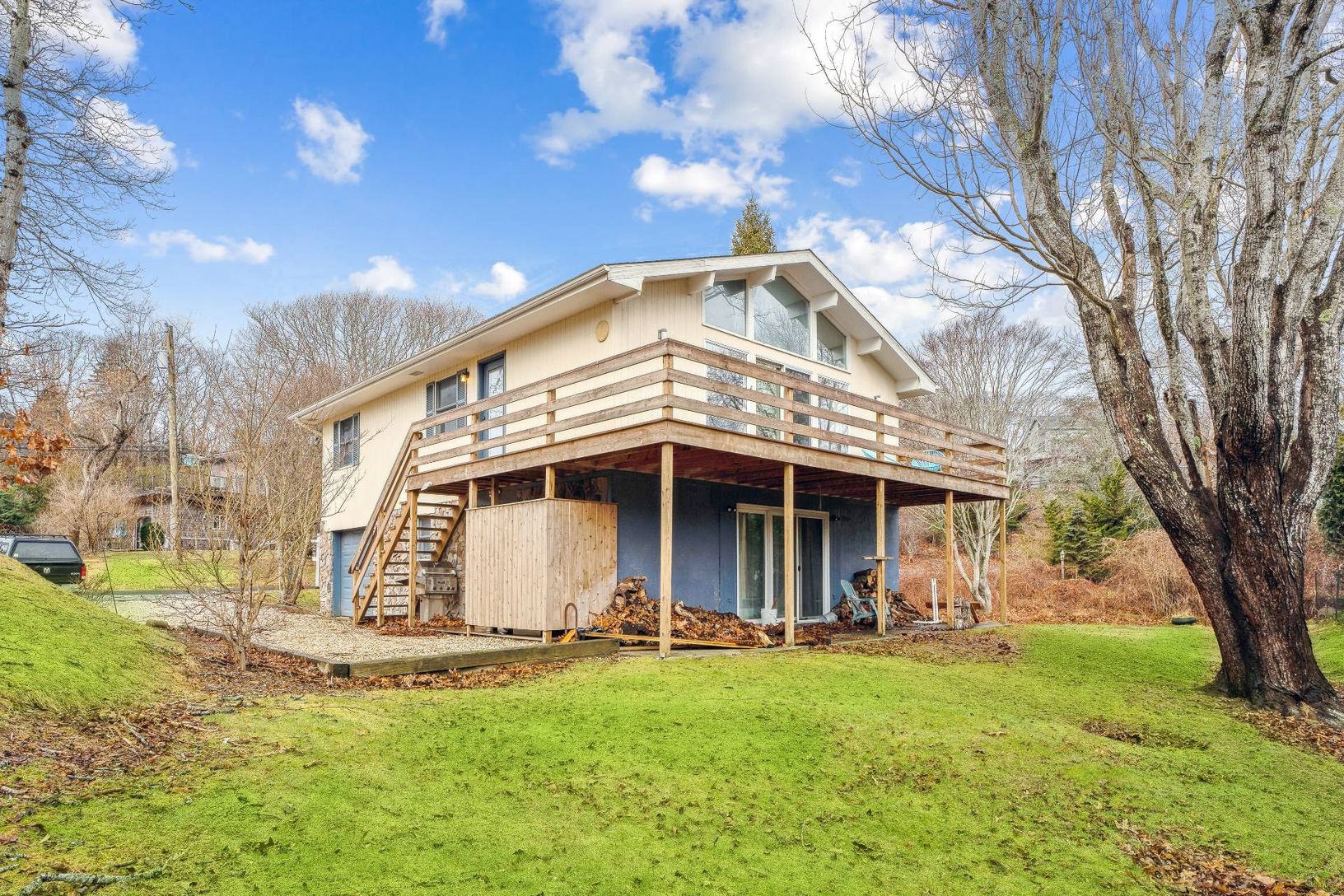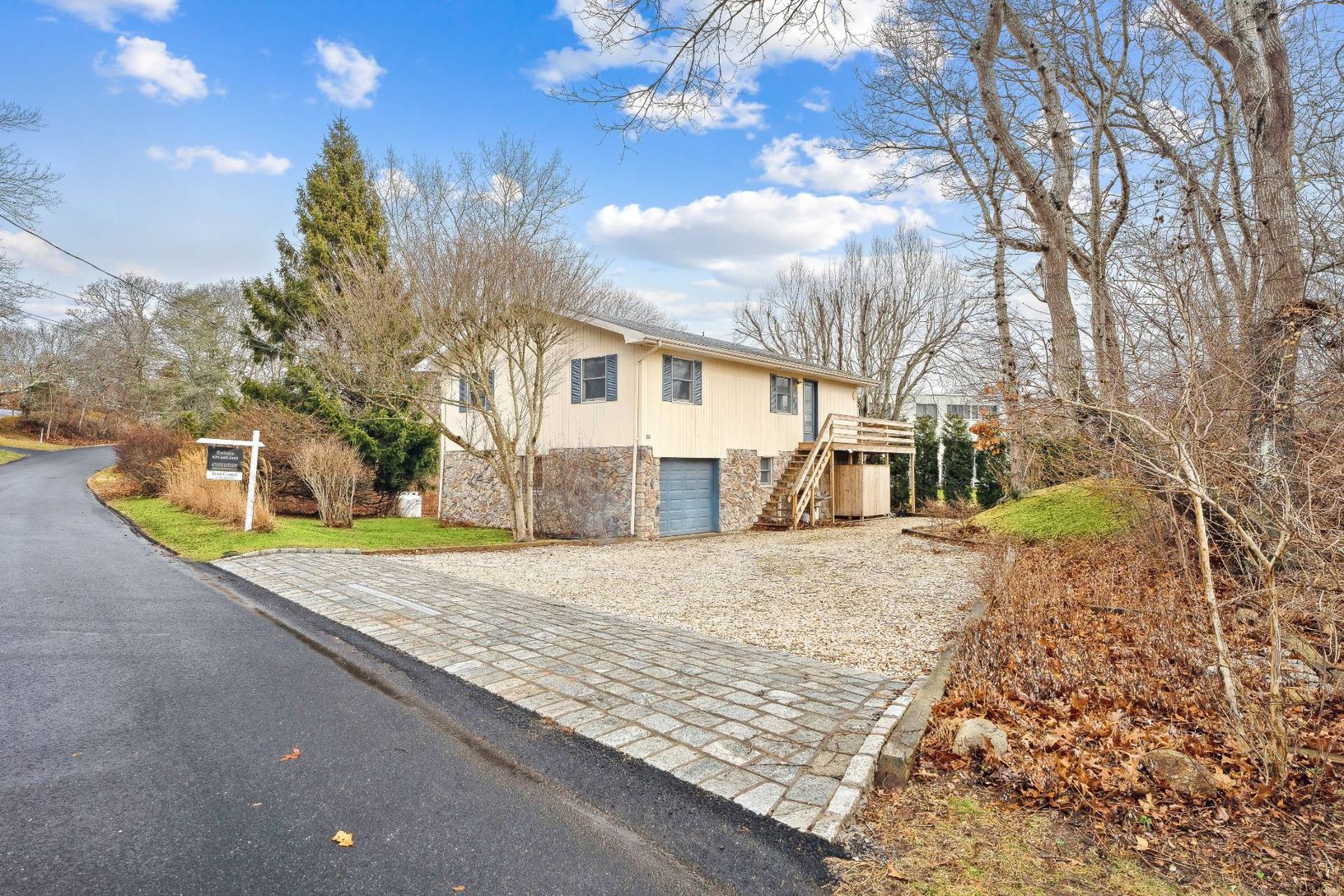 this 3 bedroom 2 bath beach house is located just up the block from the Atlantic Ocean in Hither Hills. 2 Story upside down with a vaulted ceiling bringing in plenty of natural light. Large sliding doors lead out to an expensive deck for your outdoor dining and relaxation. The lower level features one of the 4 bedroom, wood burning fireplace and sliders with access to your patio, potential pool and the outdoor shower. There is an attached ga