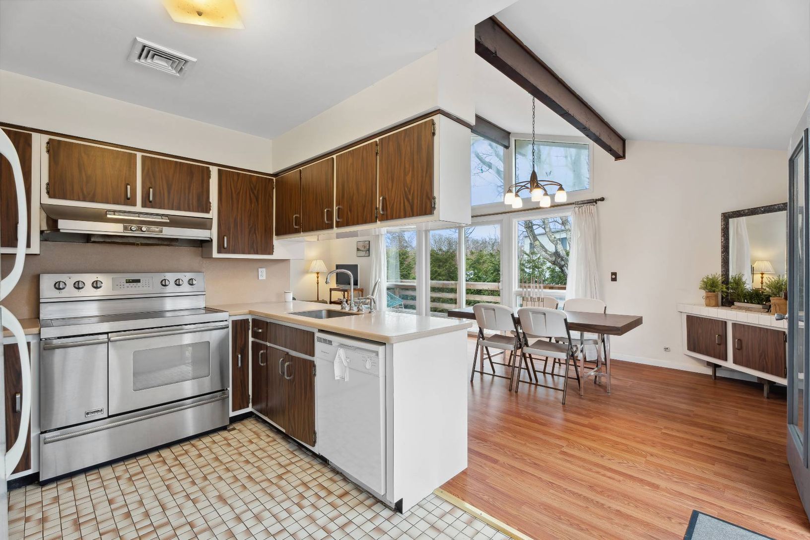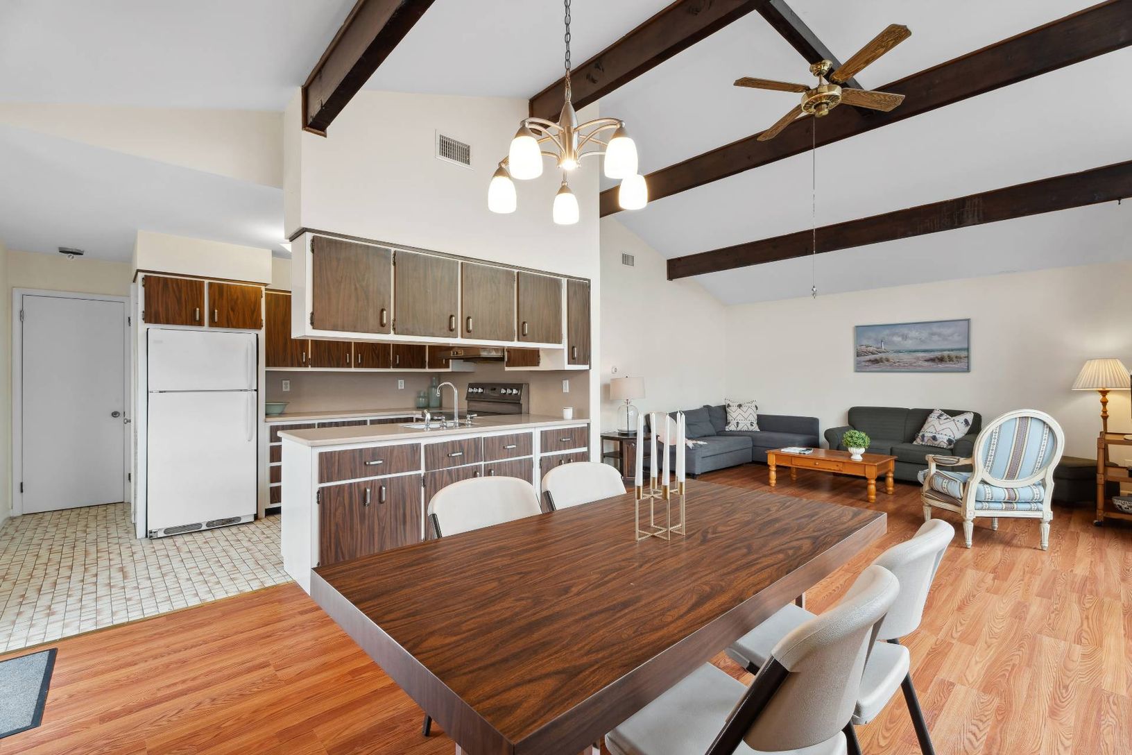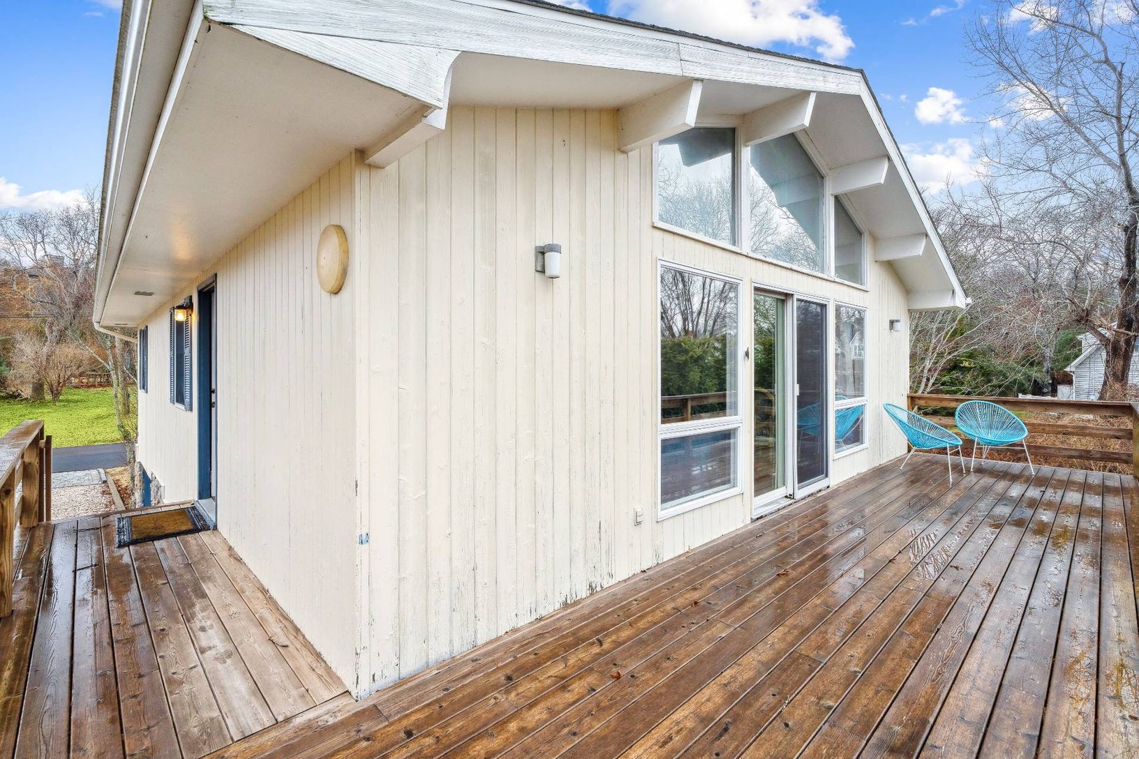 this 3 bedroom 2 bath beach house is located just up the block from the Atlantic Ocean in Hither Hills. 2 Story upside down with a vaulted ceiling bringing in plenty of natural light. Large sliding doors lead out to an expensive deck for your outdoor dining and relaxation. The lower level features one of the 4 bedroom, wood burning fireplace and sliders with access to your patio, potential pool and the outdoor shower. There is an attached ga