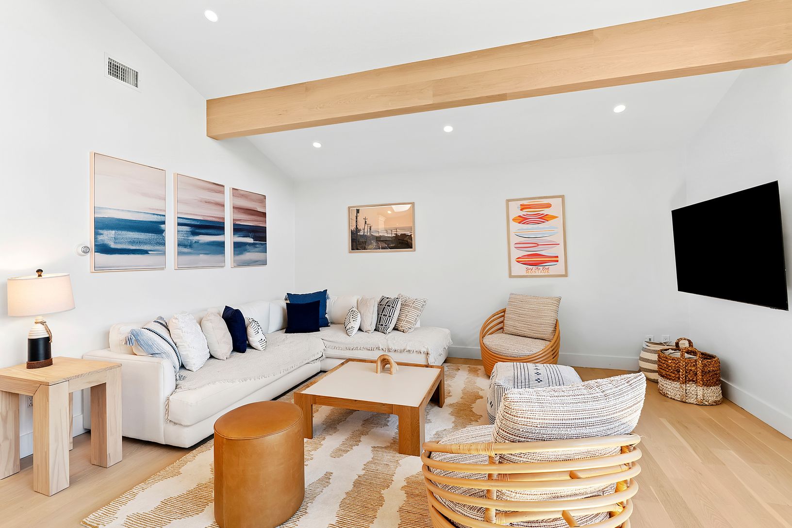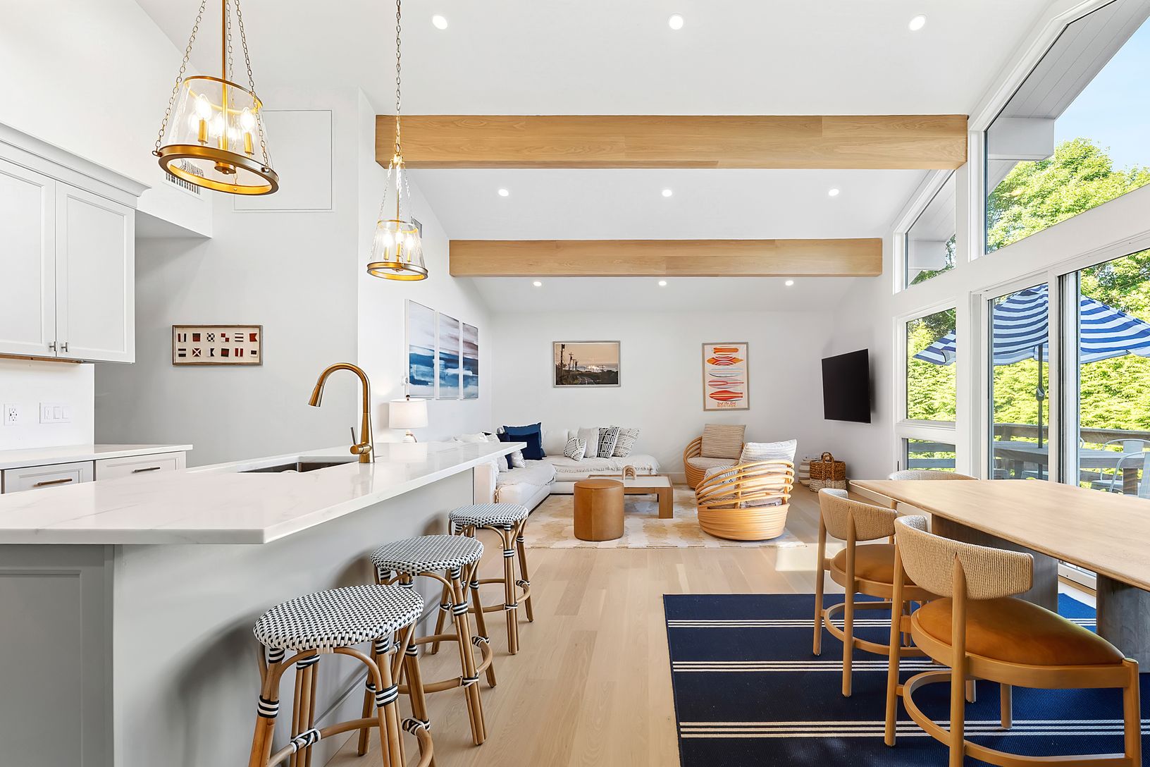 This charming beach house is located just a stones throw from the beach in Hither Hills! This two story upside down home has a vaulted ceiling and large windows bringing in plenty of natural light on the upper level. There are 3 bedrooms upstairs along with bathroom, kitchen, living room and large sliding glass doors leading out to an expansive deck for outdoor dining and relaxation. The lower level features one additional bedroom and bathroom