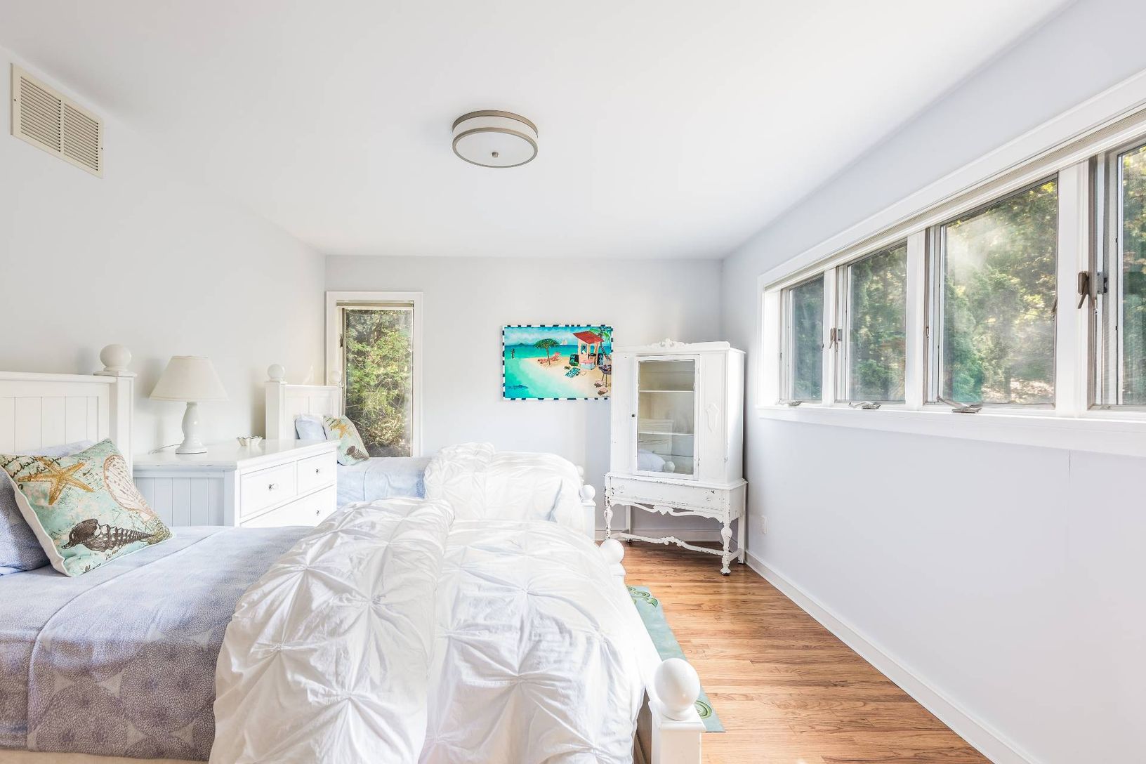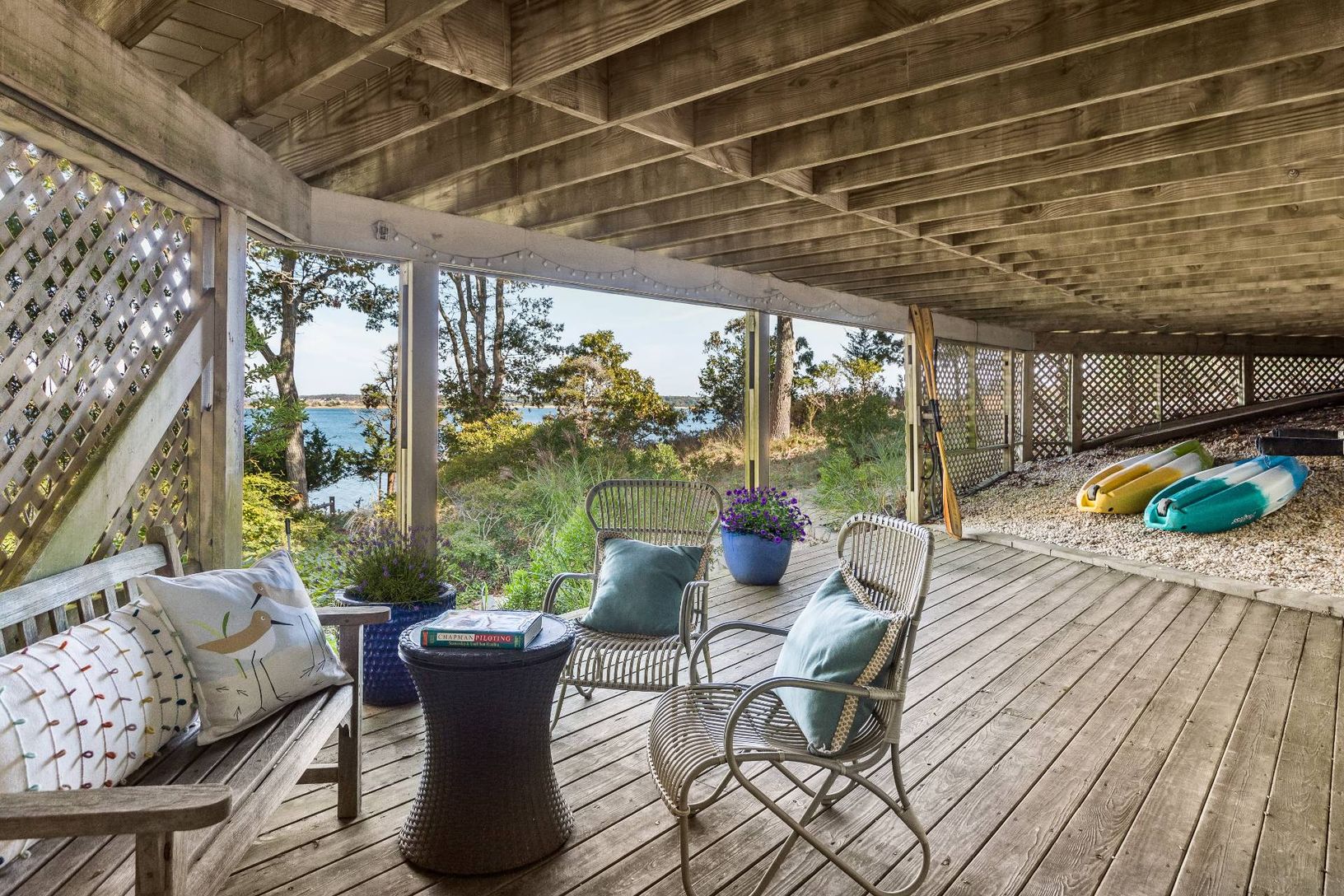 Breathtaking Views over Three Mile Harbor and beyond to Gardiners Bay! .9 Acre Waterfront Property on Three Mile Harbor Drive in the highly desirable Settlers Landing community of Northwest Harbor. Privately set back from the road on a large piece of land with elevated views of two bodies of water, and beautiful Sammy's Beach in between. With it's own private sandy beach and boat mooring, water lovers could not find a better match. Three Mile