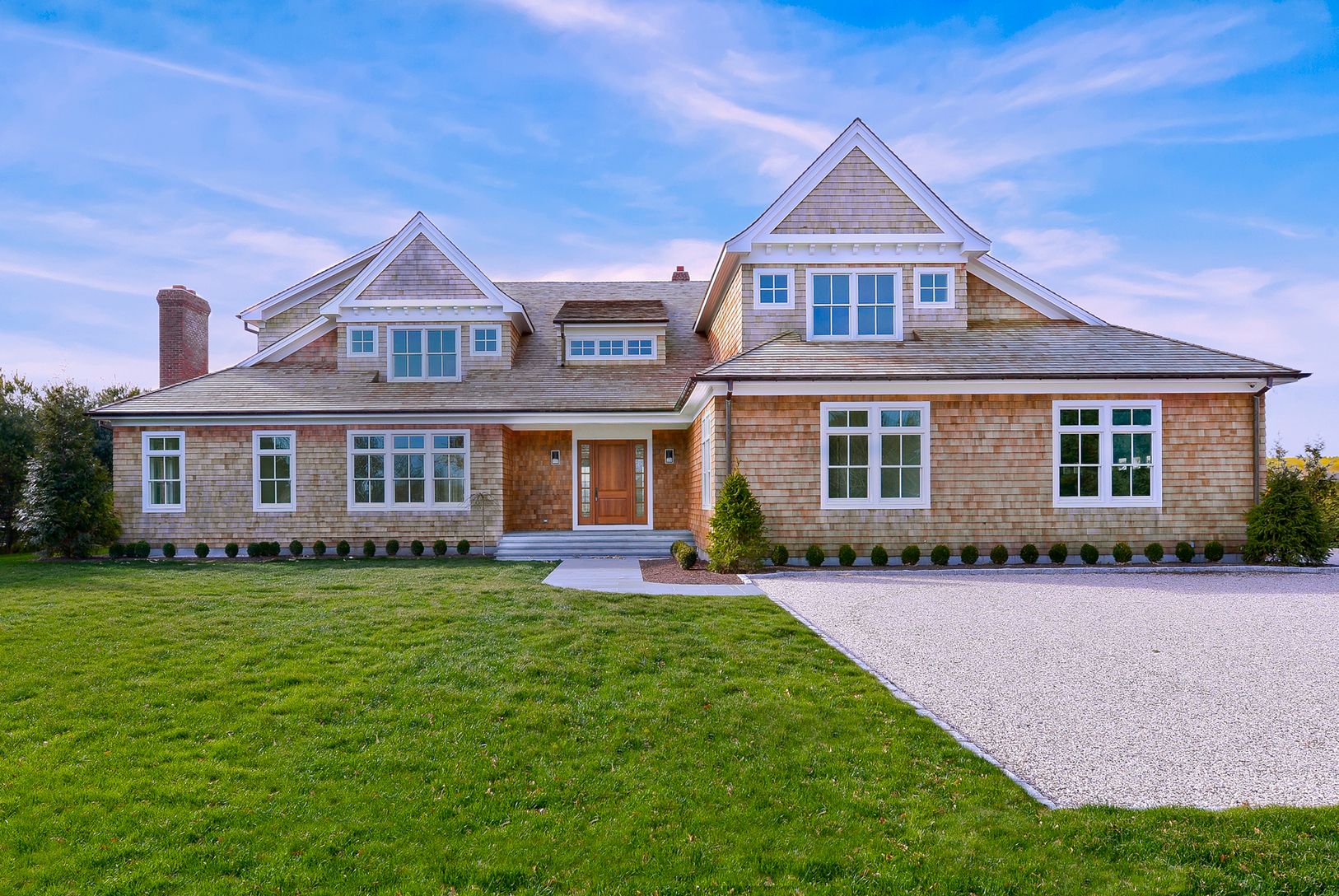 Brand new construction in a bucolic, cul-de-sac location, south of the highway and mere minutes from the ocean. The 6,000 sf house has been built to exacting standards of design and construction, and features eight generously sized bedrooms, 8.5 baths, elegantly detailed principal rooms, and four fireplaces, including one in the finished lower level. State of the art mechanicals including geothermal heating and cooling. Outside, the 1.11 acre