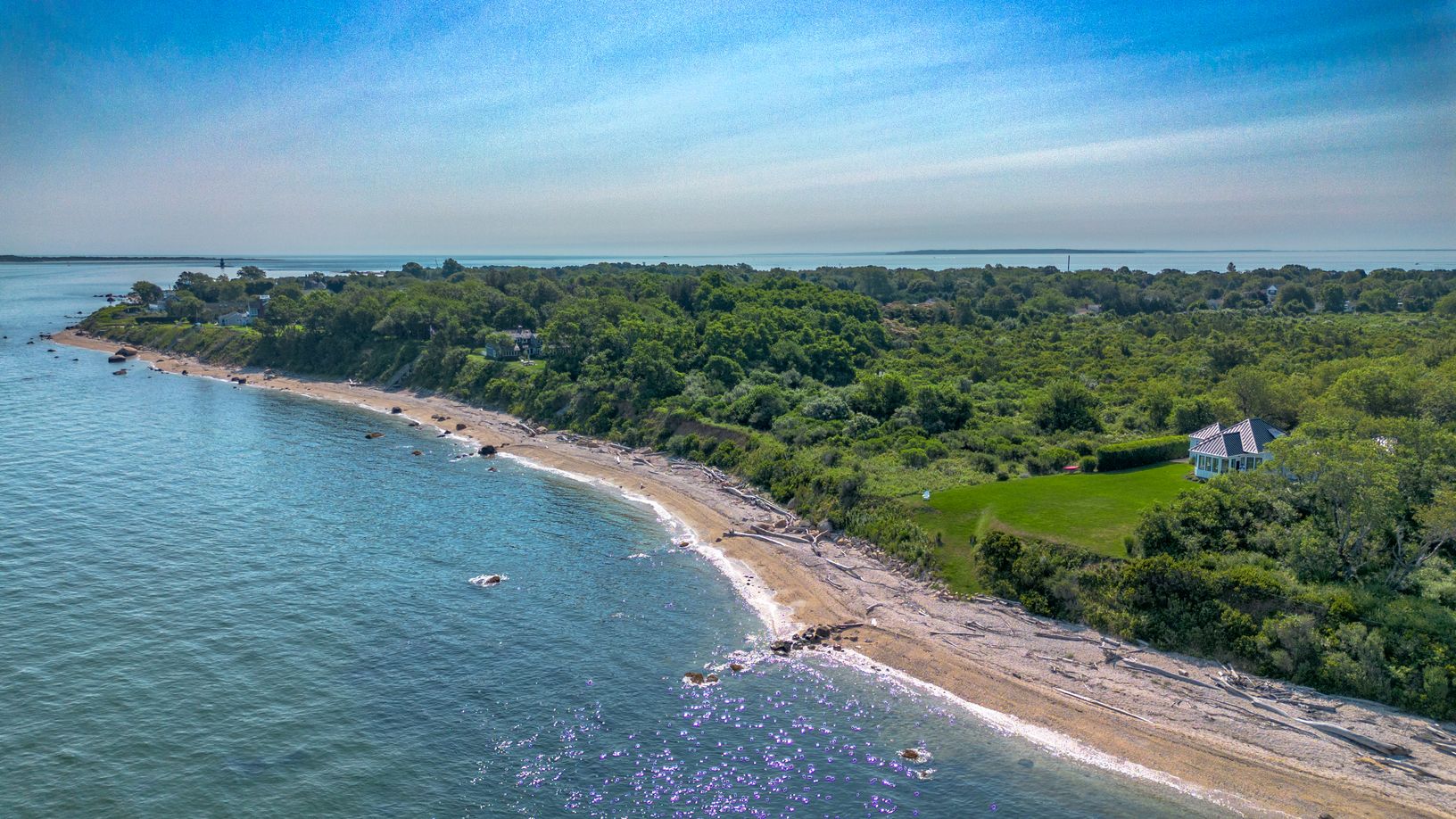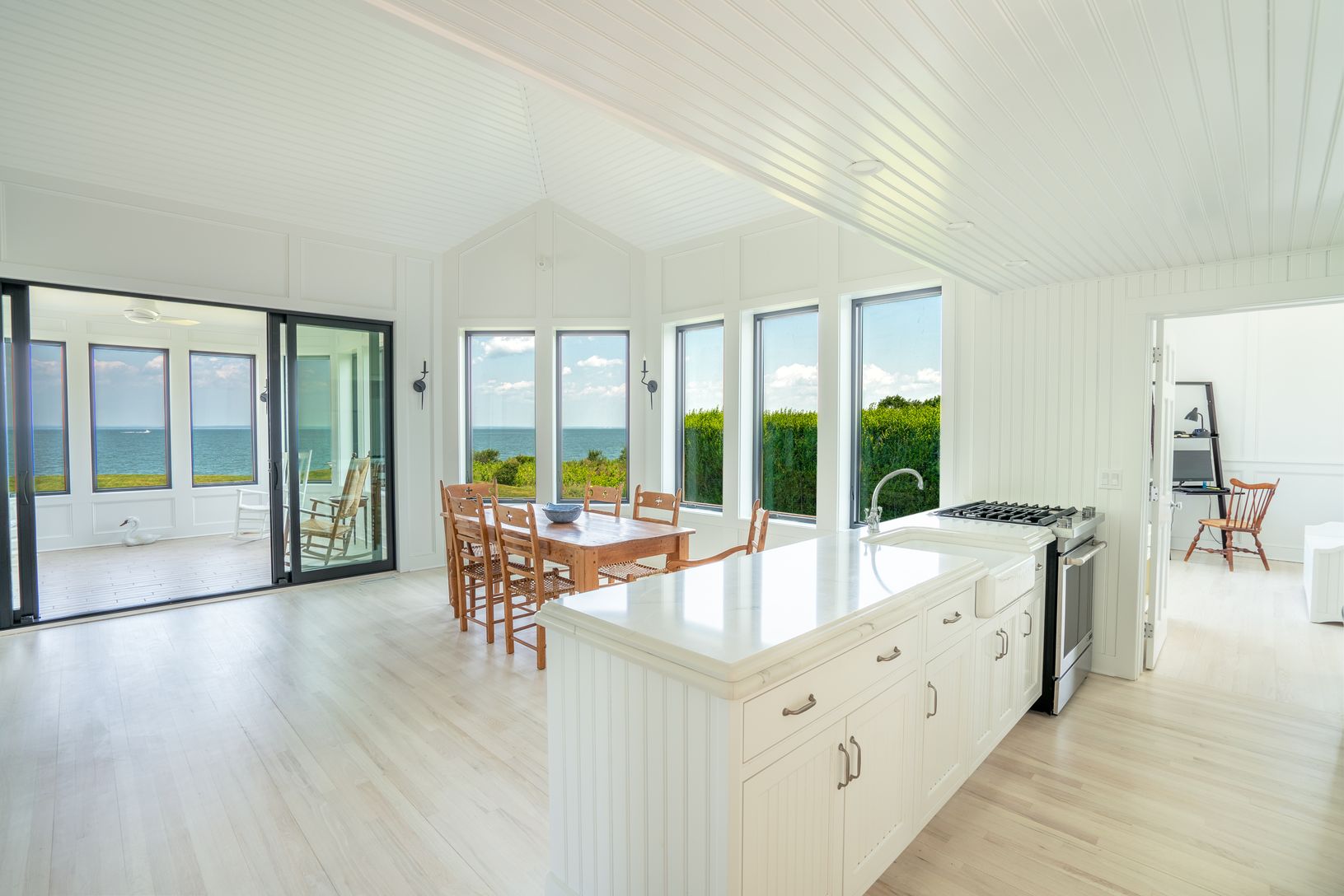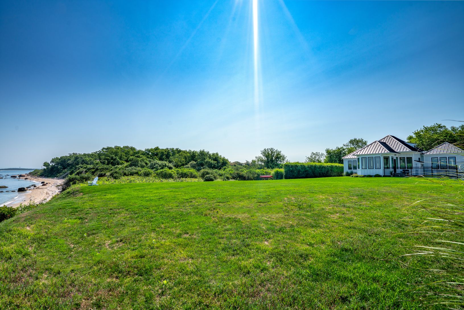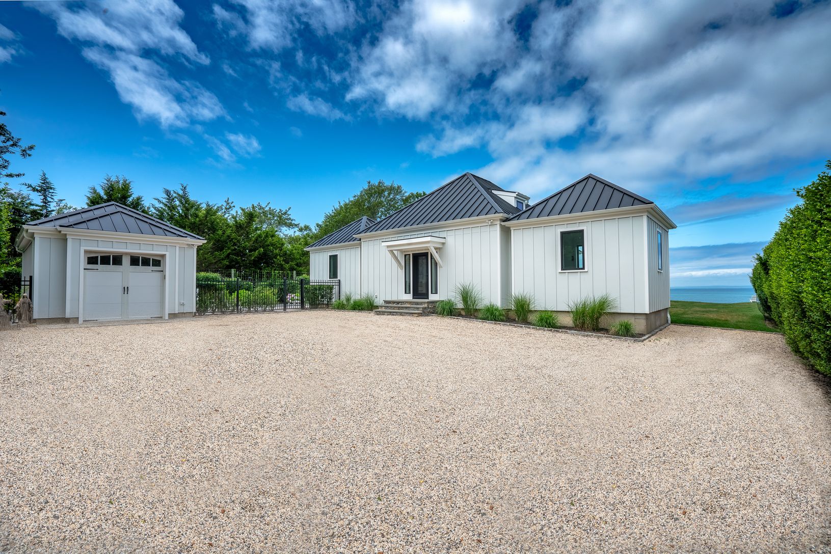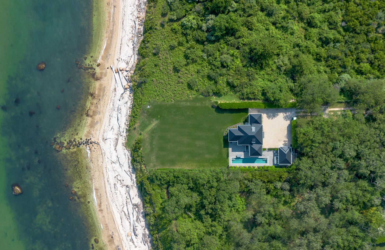 At the end of a secluded, private one-mile road, where the land meets the Long Island Sound, this newly renovated modern beach house offers breathtaking views, refined design, and total privacy. Set on two-thirds of an acre and surrounded by two 30 acre privately owned parcels of land, one of which is entirely vacant, the home features over 100 feet of private beachfront with a naturally sloped path leading to the shore. Every inch of this res