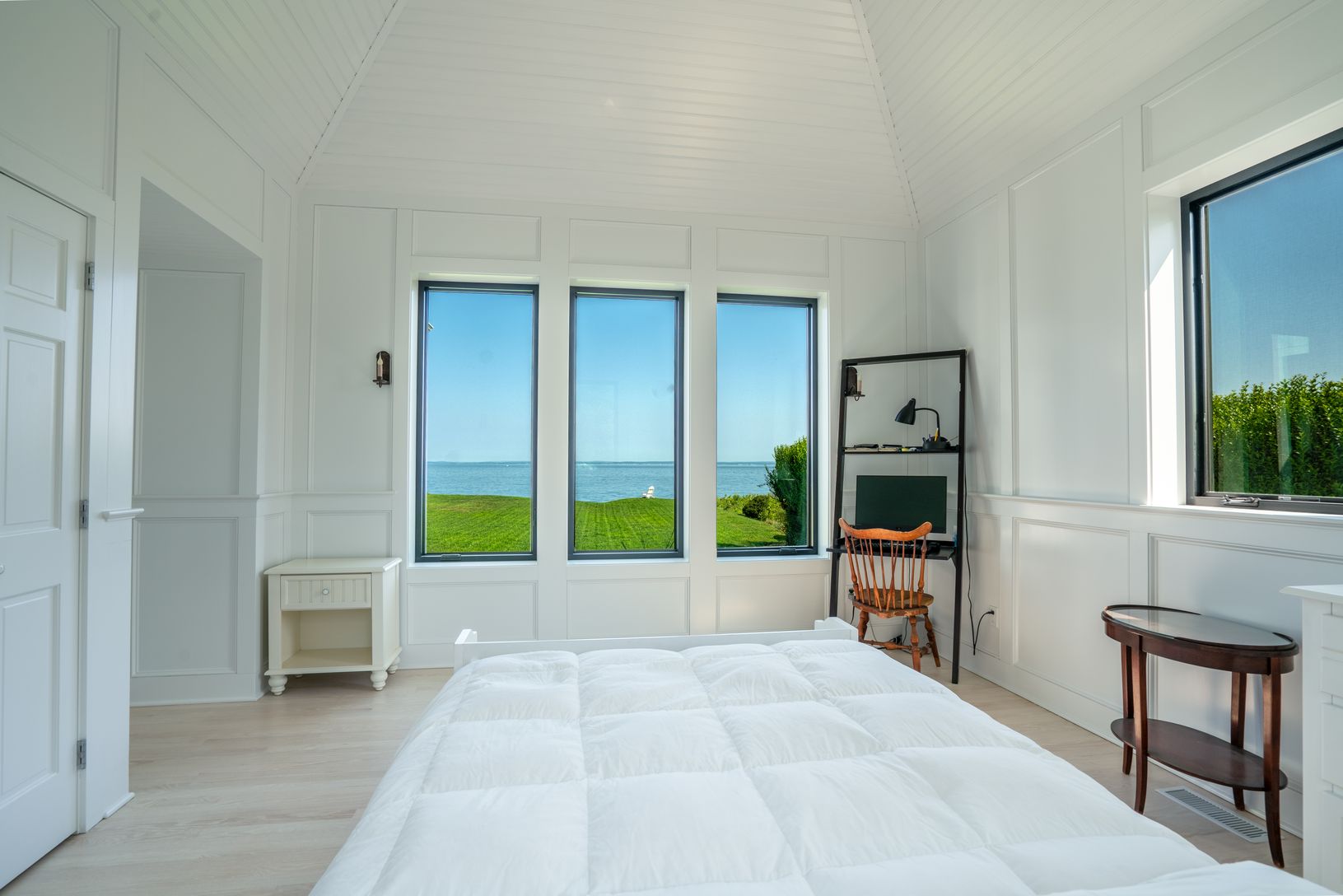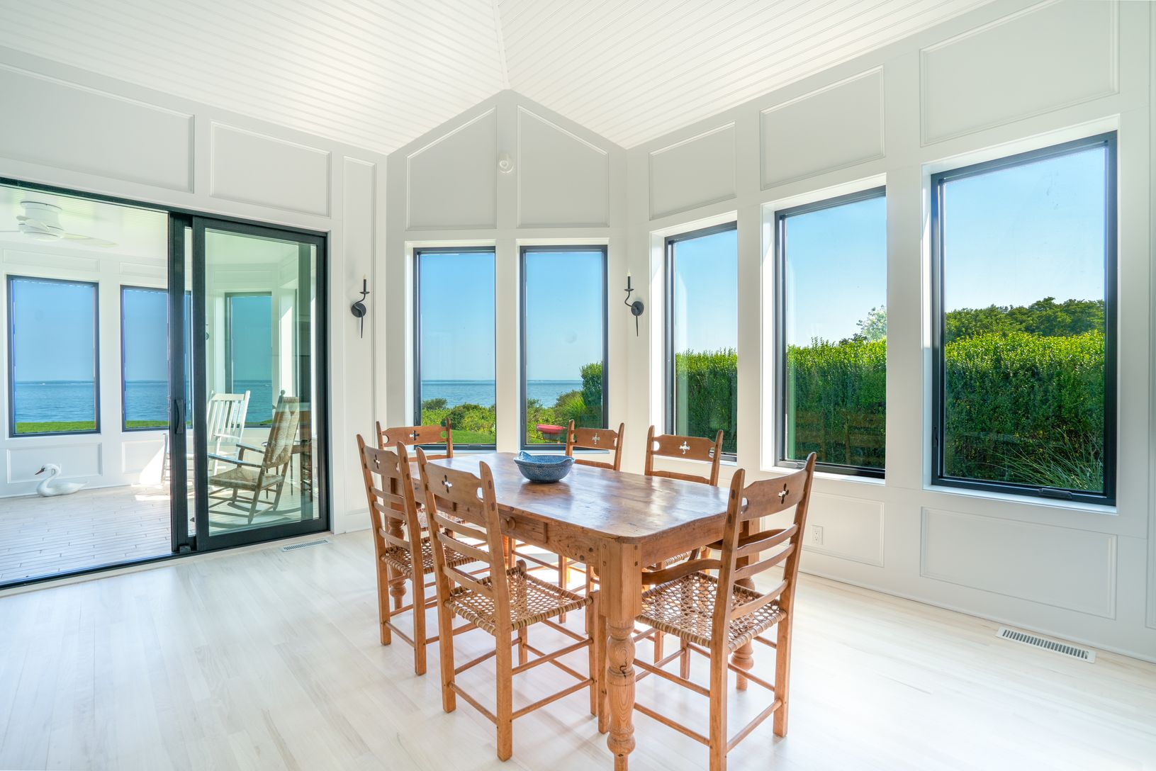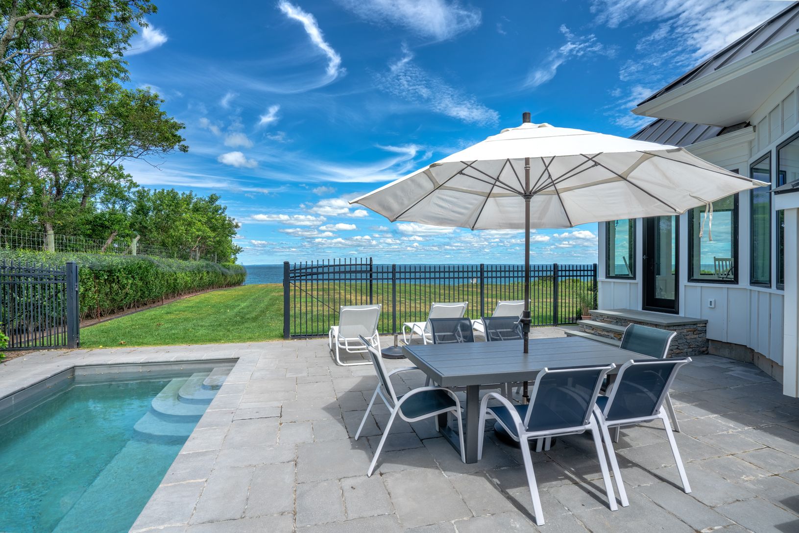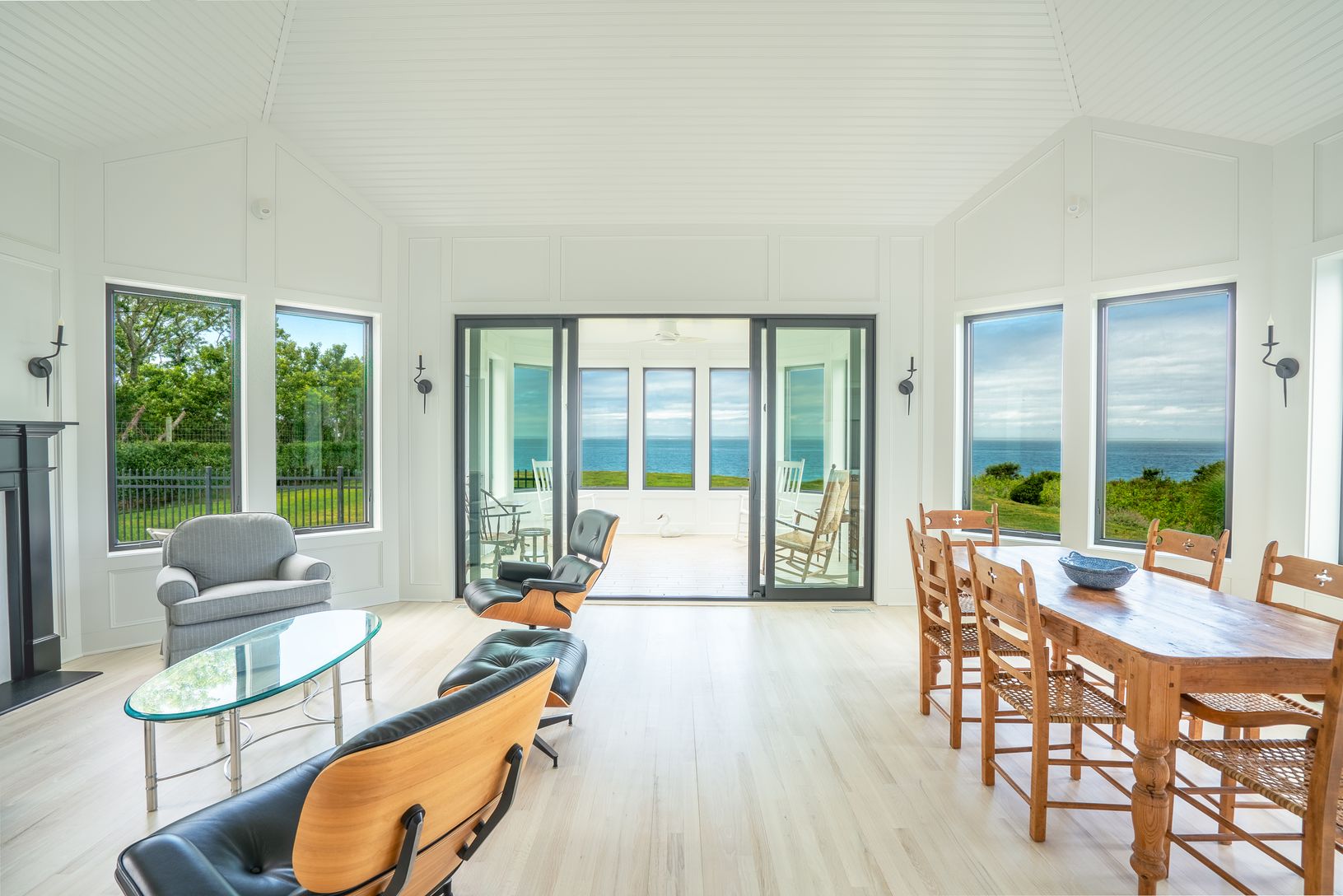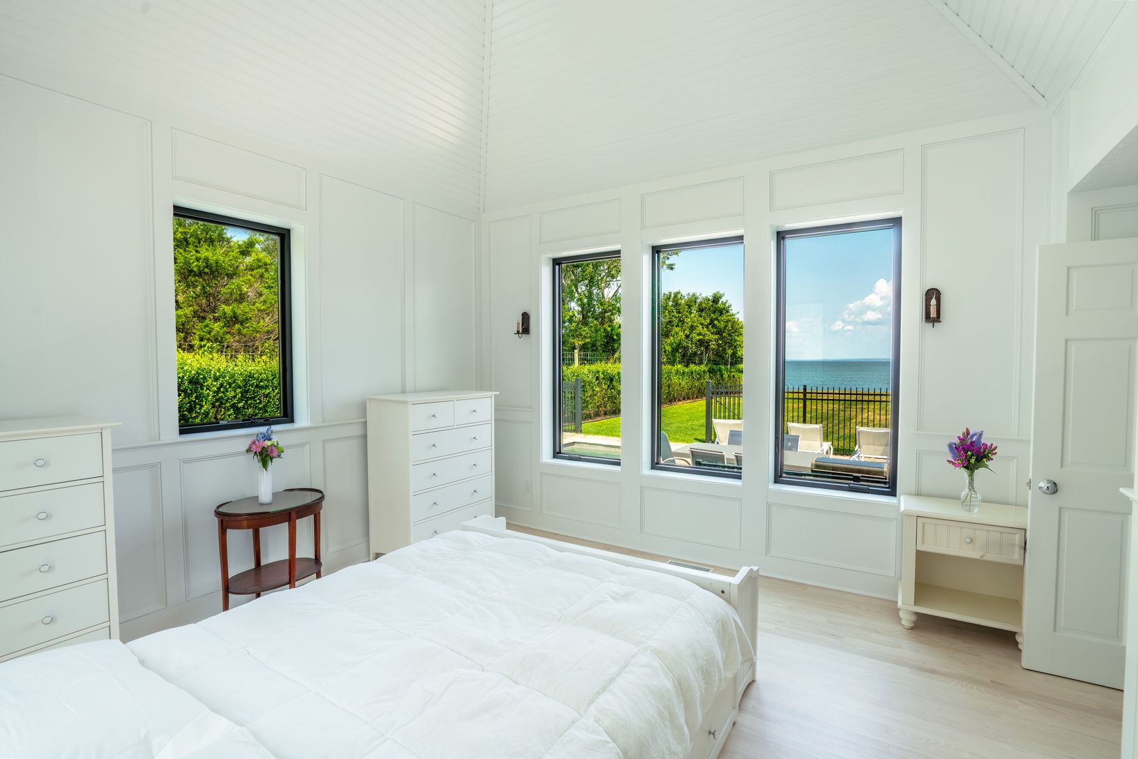At the end of a secluded, private one-mile road, where the land meets the Long Island Sound, this newly renovated modern beach house offers breathtaking views, refined design, and total privacy. Set on two-thirds of an acre and surrounded by two 30 acre privately owned parcels of land, one of which is entirely vacant, the home features over 100 feet of private beachfront with a naturally sloped path leading to the shore. Every inch of this res