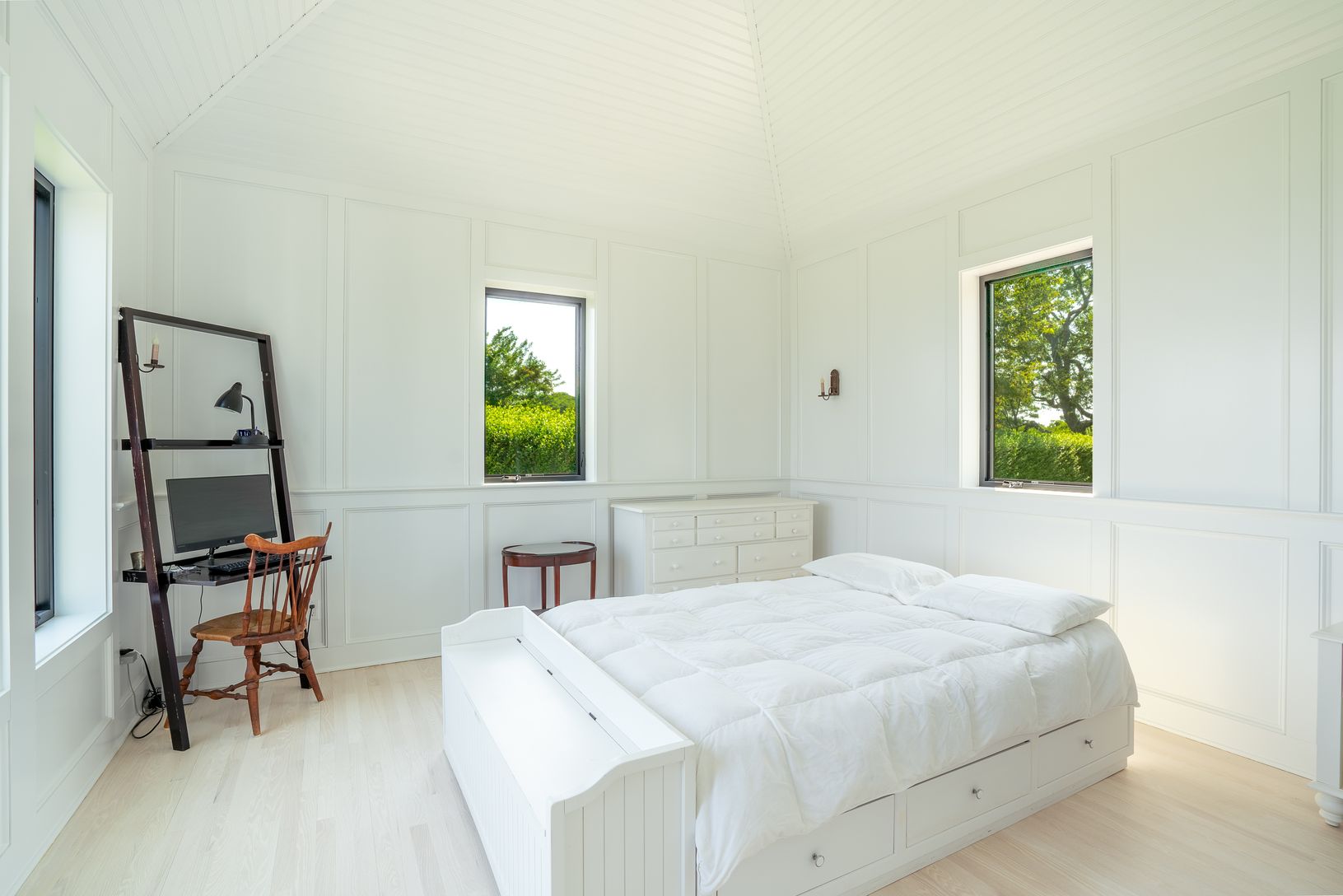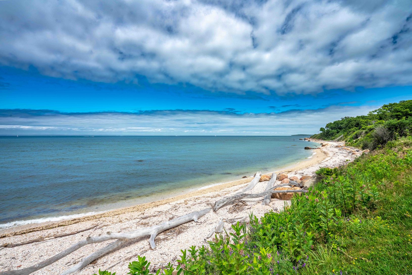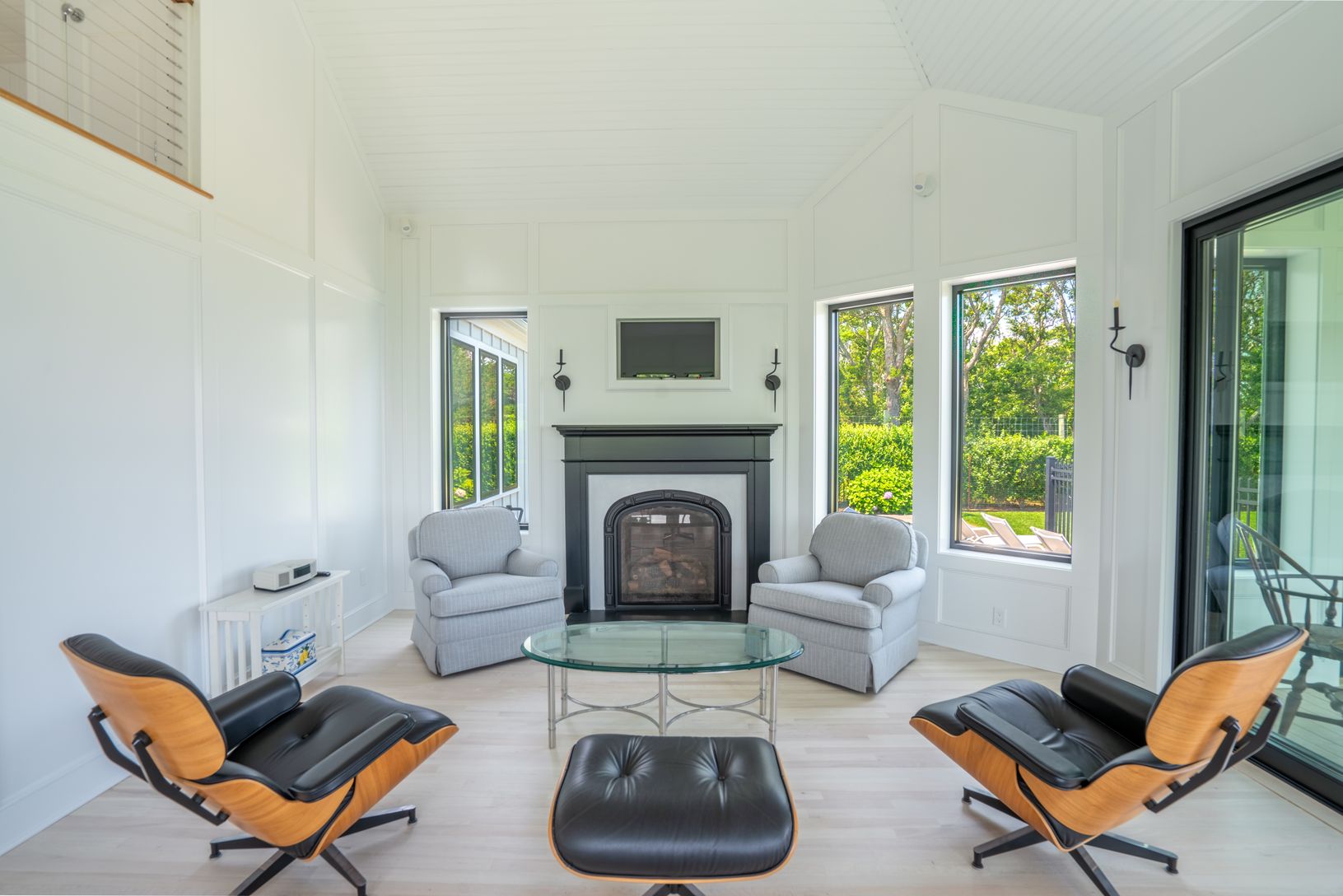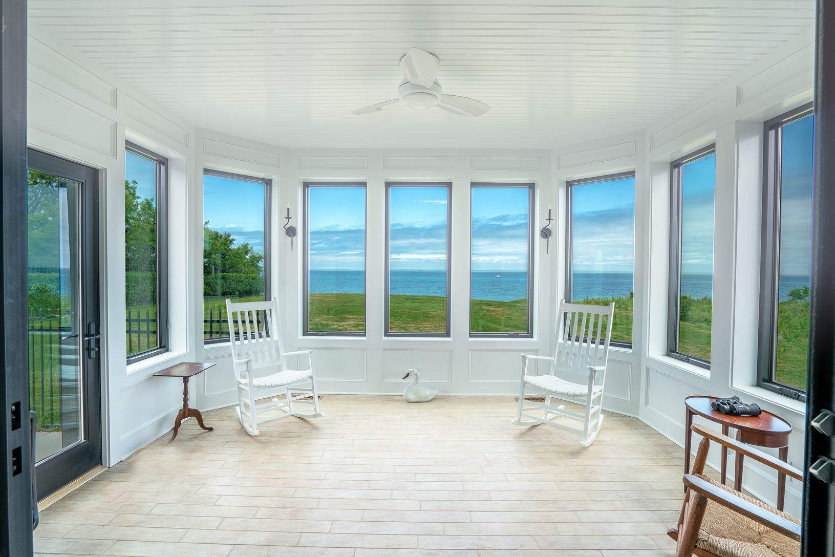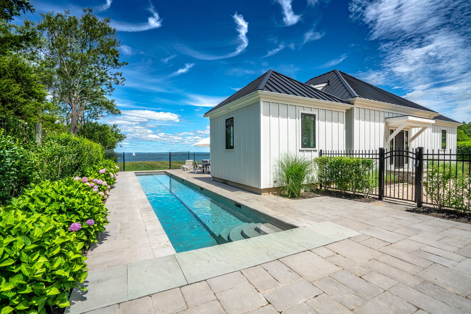 At the end of a secluded, private one-mile road, where the land meets the Long Island Sound, this newly renovated modern beach house offers breathtaking views, refined design, and total privacy. Set on two-thirds of an acre and surrounded by two 30 acre privately owned parcels of land, one of which is entirely vacant, the home features over 100 feet of private beachfront with a naturally sloped path leading to the shore. Every inch of this res