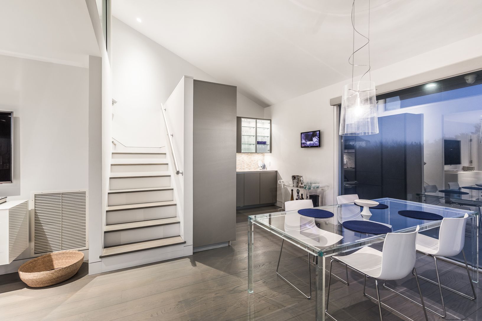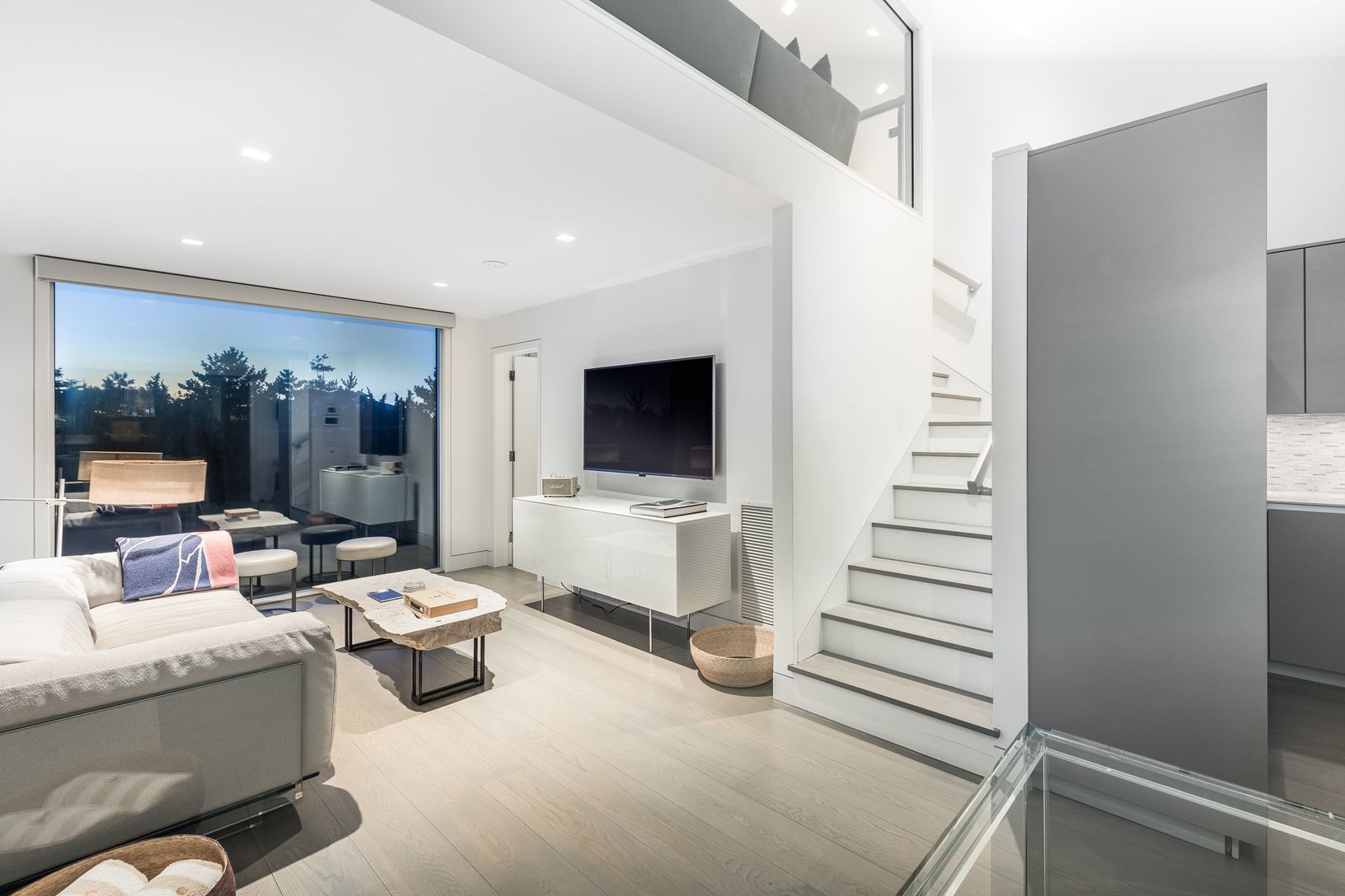 The existing modern residence offers expansion potential and is currently configured
