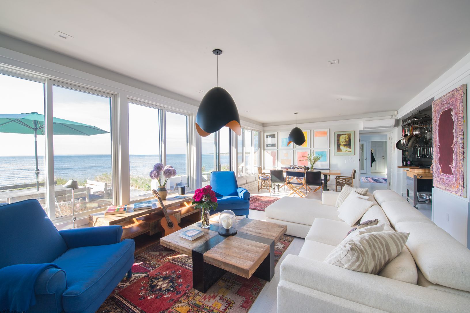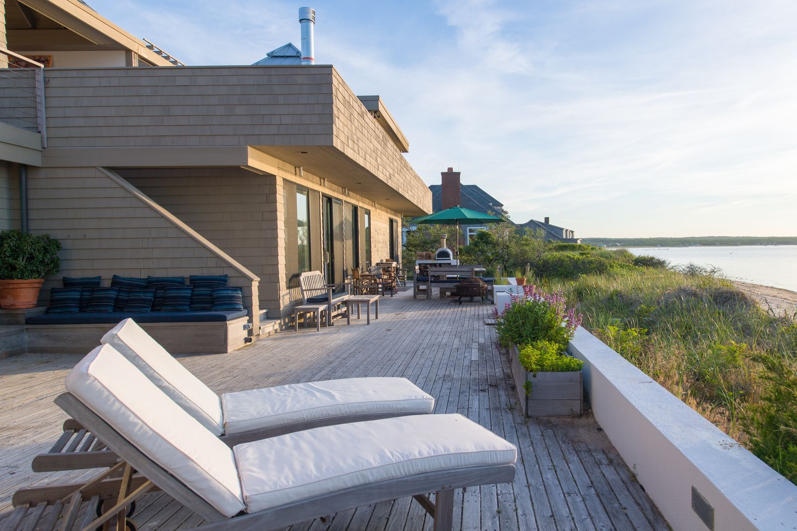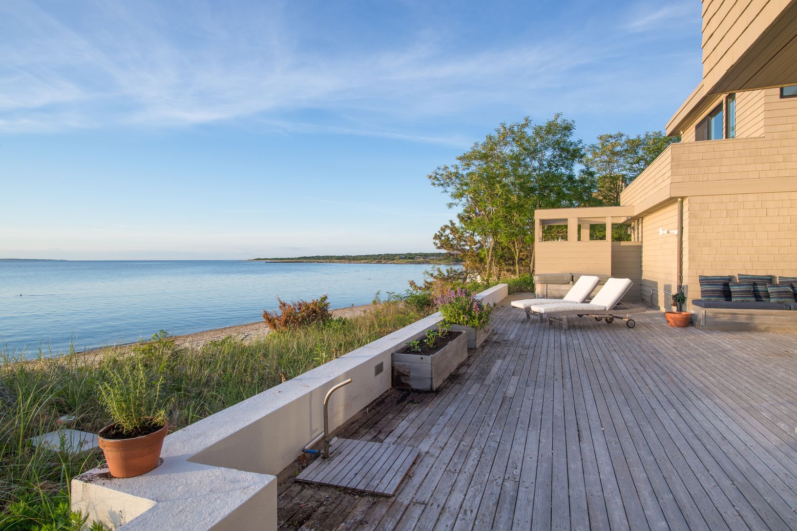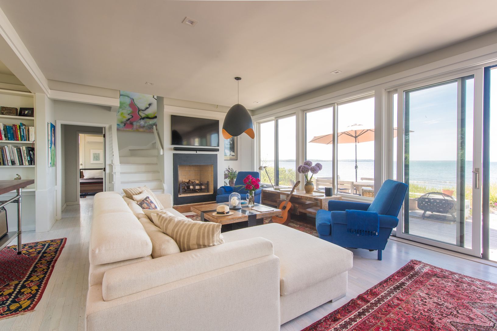 Recently renovated throughout, this unique waterfront home features new windows designed to capture stunning sunset and beach views in one of Amagansett's most desirable locations. The two-story home includes two private second-level suites with expansive water views, plus two additional bedrooms. The main level offers an open living room with fireplace, a fully equipped kitchen, and a dining nook. Outdoor spaces are perfect for relaxing and e