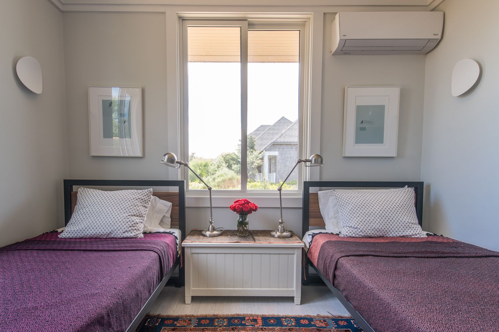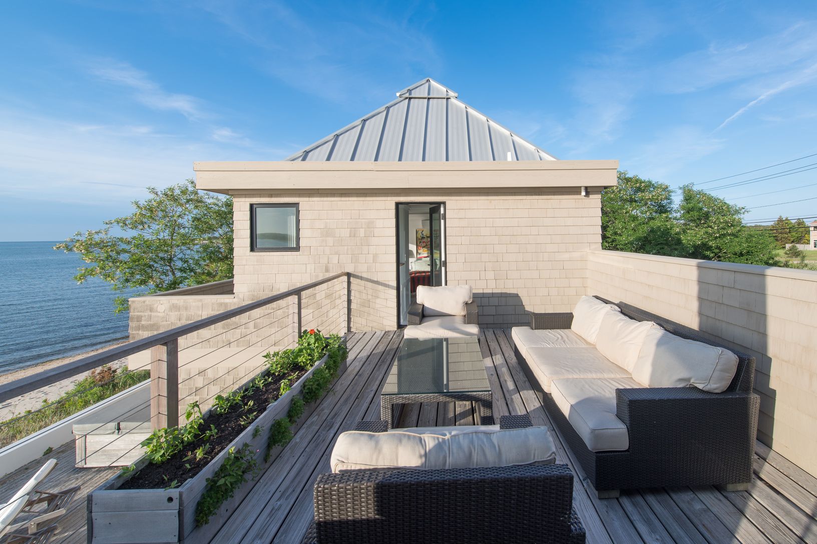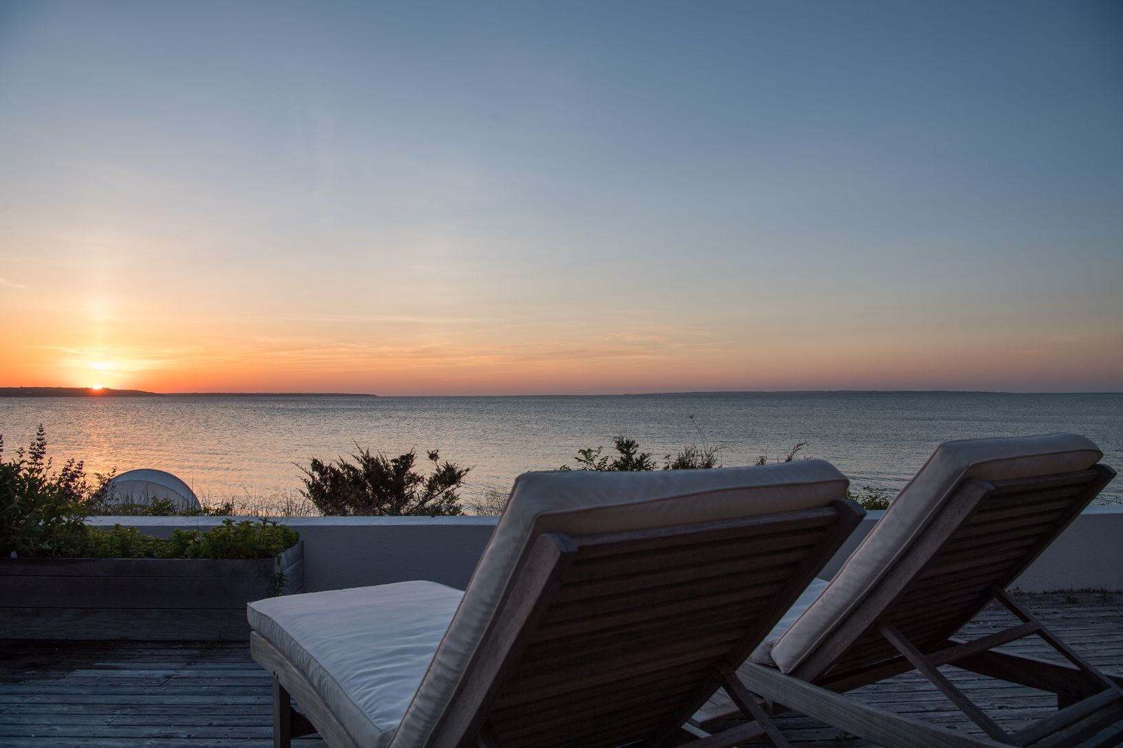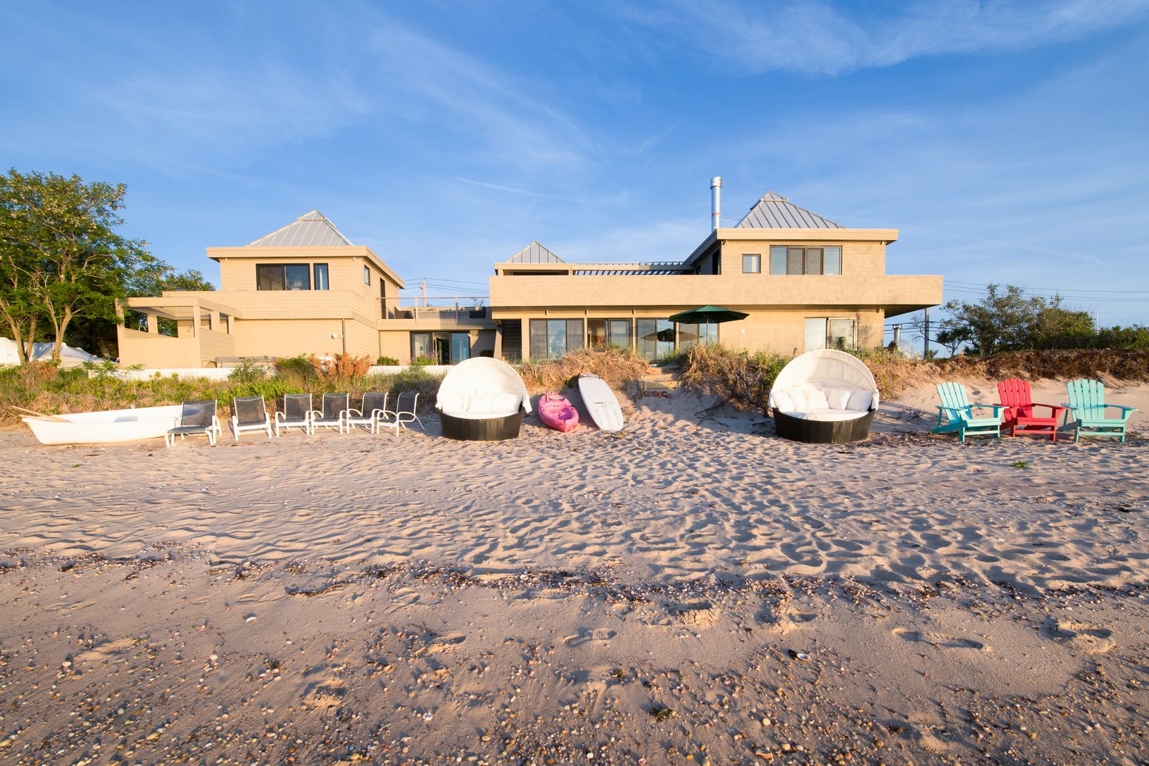 Recently renovated throughout, this unique waterfront home features new windows designed to capture stunning sunset and beach views in one of Amagansett's most desirable locations. The two-story home includes two private second-level suites with expansive water views, plus two additional bedrooms. The main level offers an open living room with fireplace, a fully equipped kitchen, and a dining nook. Outdoor spaces are perfect for relaxing and e
