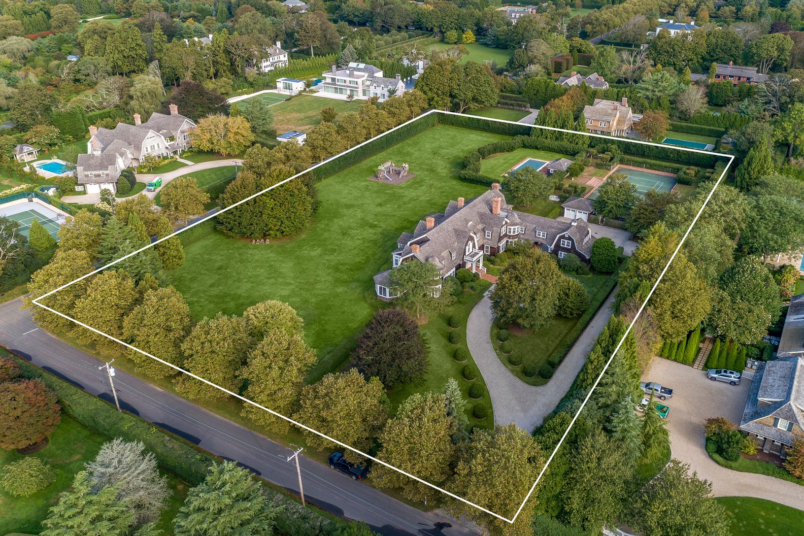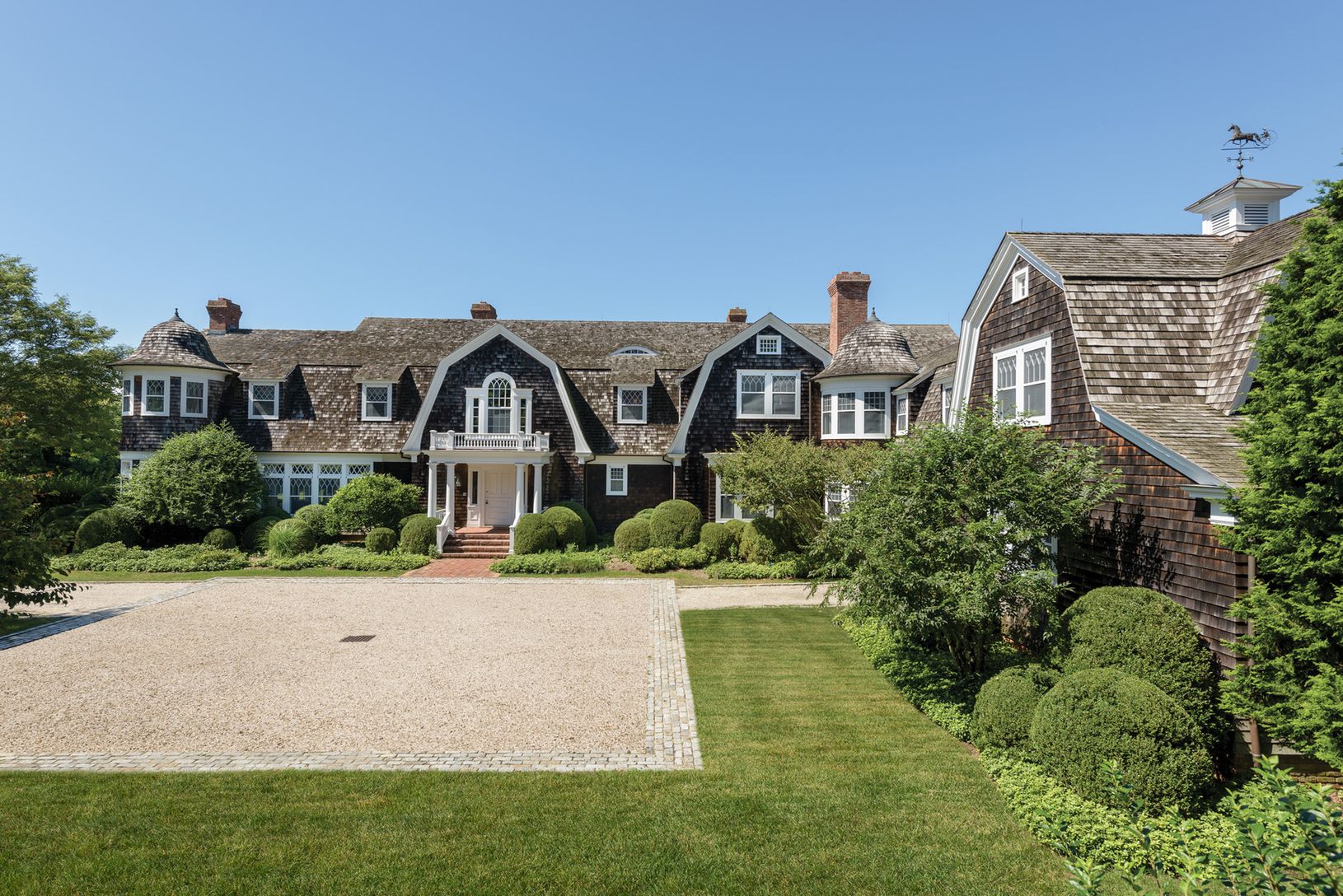 In the heart of Southampton's Estate Section, this superb estate on 3.4+/- acres, designed by renowned architect Peter Schulte, expresses the classic grandeur of the Village while providing the amenities for gracious 21st century living in a beautifully landscaped, gated and private setting just a few minutes to some of the best beaches in the world. The magnificent 13,000+/- sq. ft. gambrel home, with ten bedrooms, eight full and two half bat