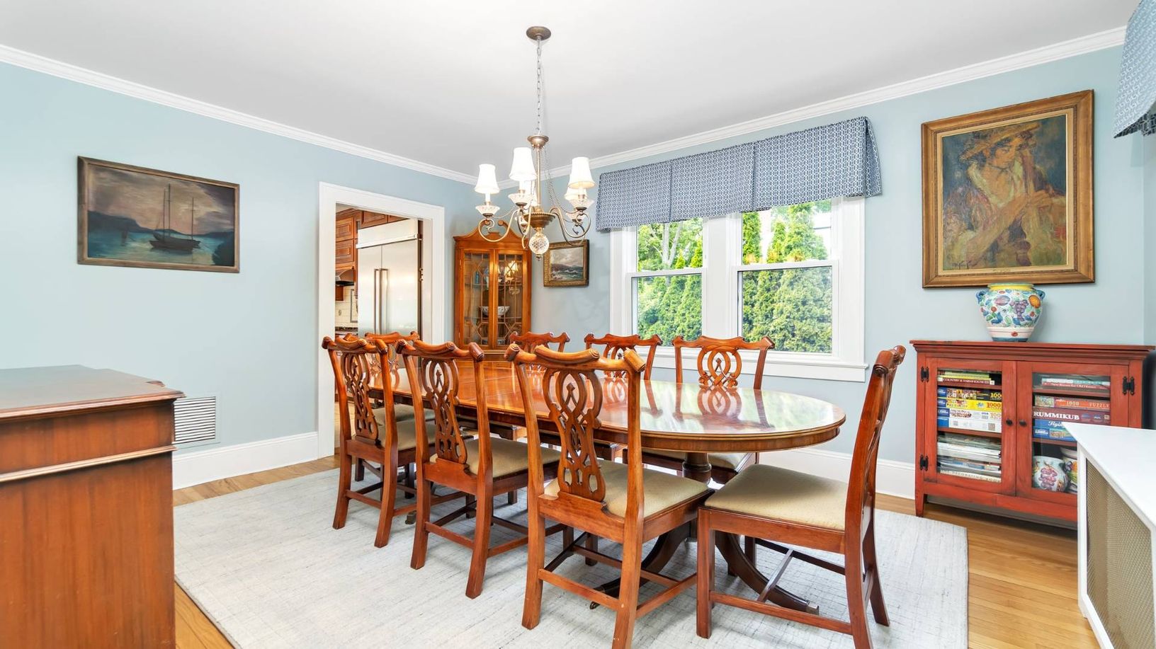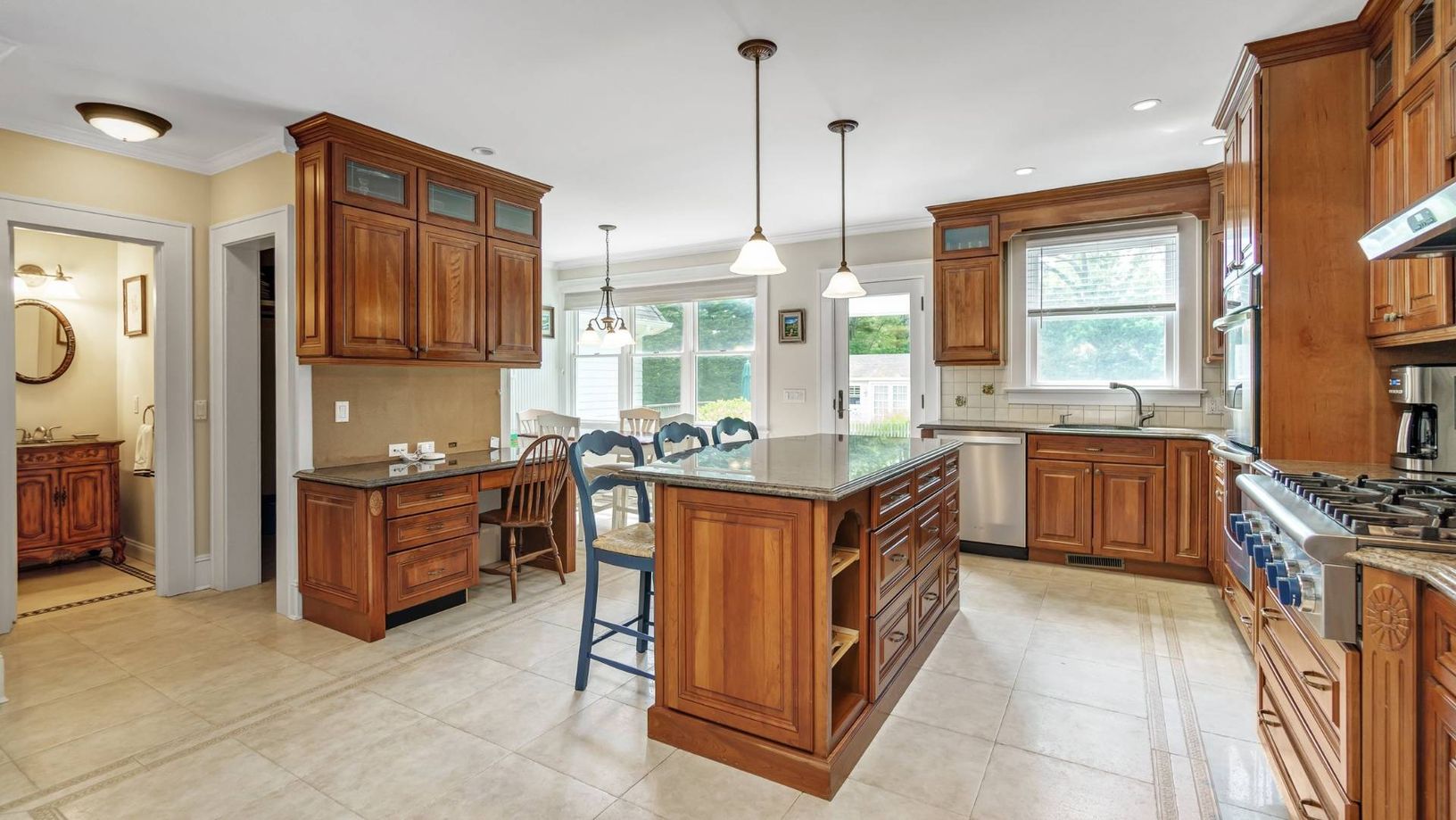 This Classic Hampton's home situated in the heart of Westhampton Beach Village offers a highly desirable location in close proximity to Main Street with a wide range of amenities and activities. The first floor features a spacious primary en-suite bedroom with walk-in closet that opens up to a mahogany deck overlooking the pool. The large kitchen is perfect for entertaining, complete with breakfast nook and large granite island, flowing into a