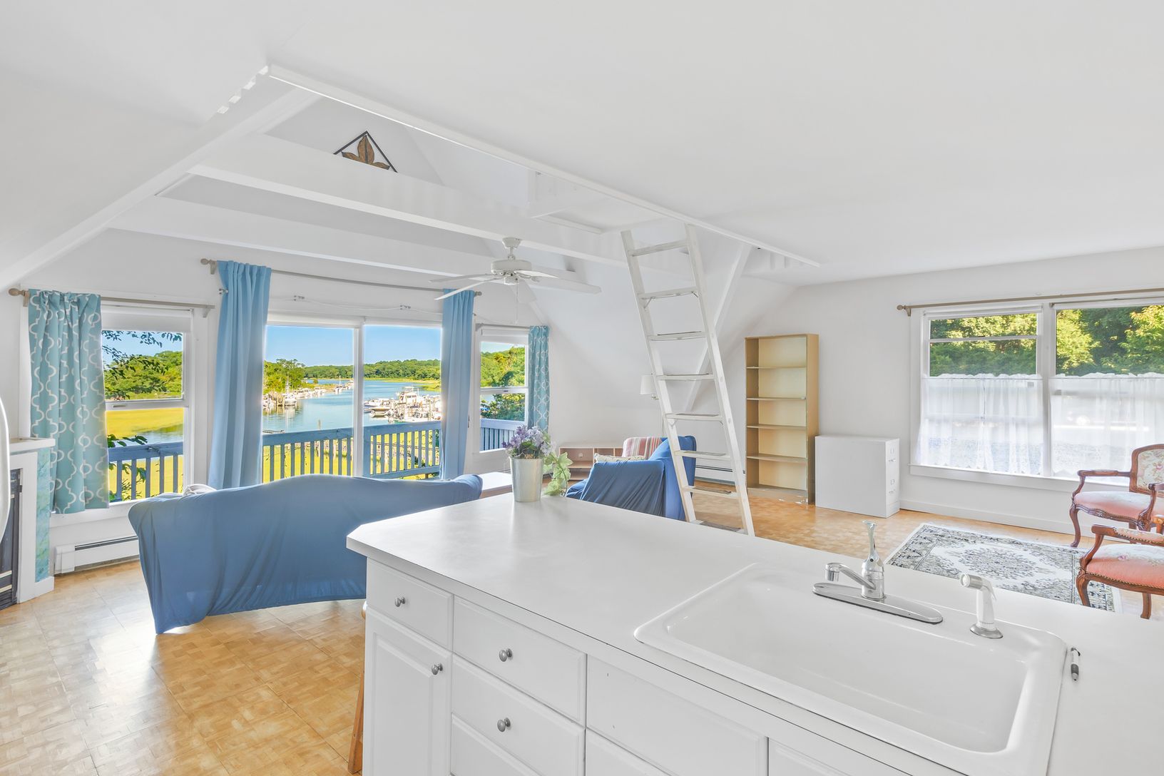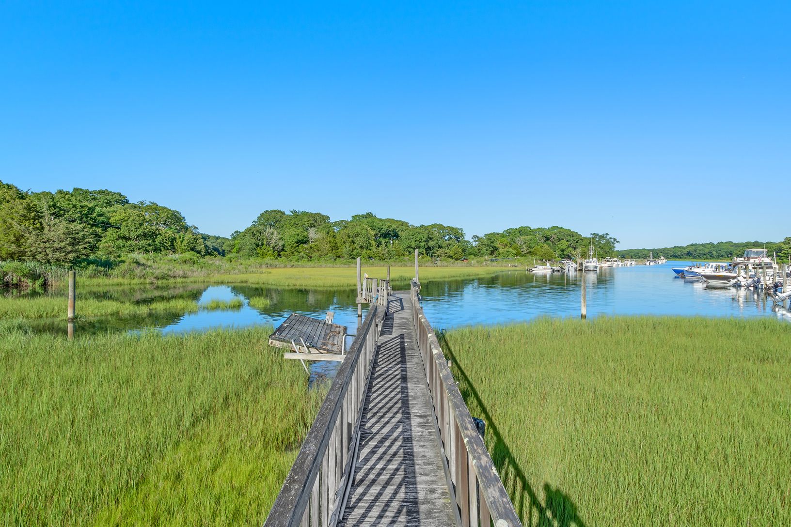 At the very end of a quiet country road there sits a stately shingle house, perched above Congdons Creek, where time seems to stand still. This property is the very embodiment of what is so special about Shelter Island, with the hustle-and-bustle of Route 27 seemingly in another world (yet only 25 minutes away by a short ferry ride). Lovingly built for himself and his family by David Dowd, of Victorian Homes, the house has been expanded, renov
