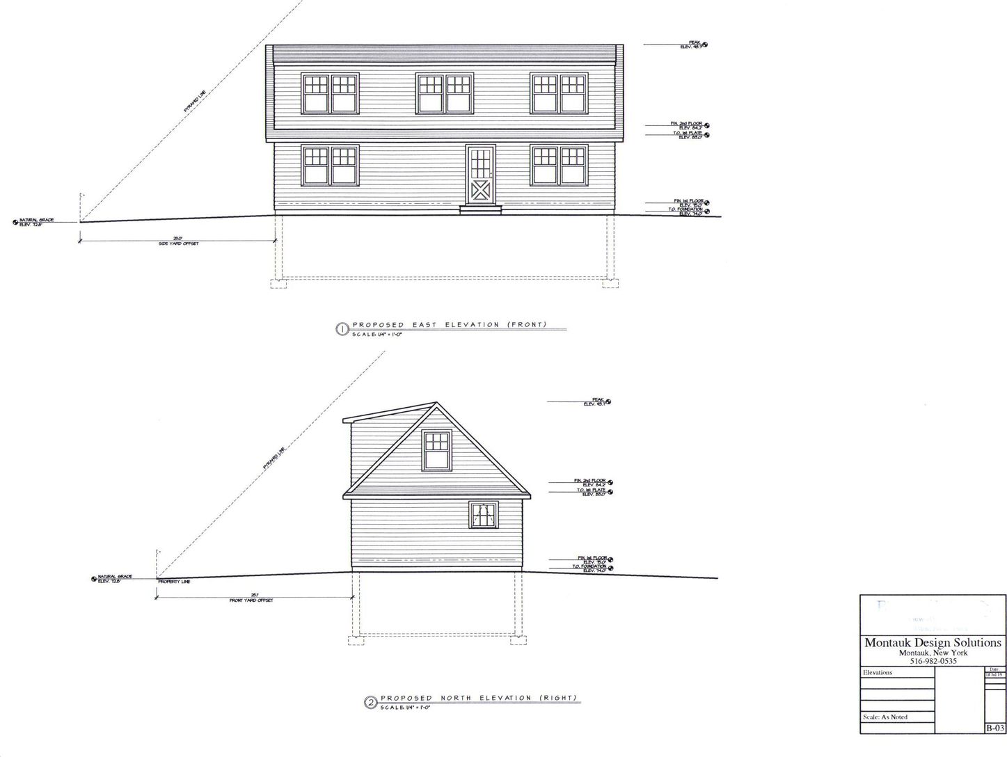 Permits are at the ready to construct a 1308 sq.f.t 3 bedroom 2 bath beach house on this .40 acre parcel of land close to Montauk village, Montauk Downs and transportation. Site plan and house elevations available for review. Come build your Montauk home.