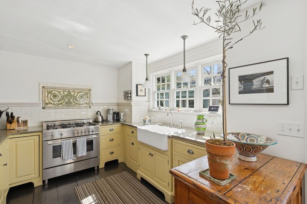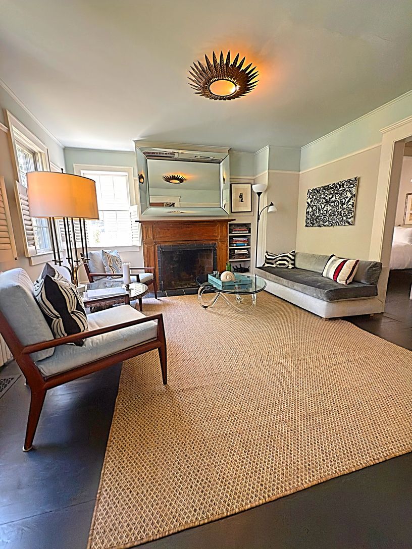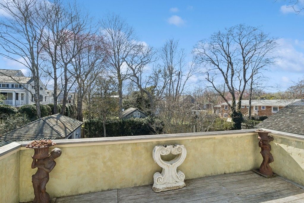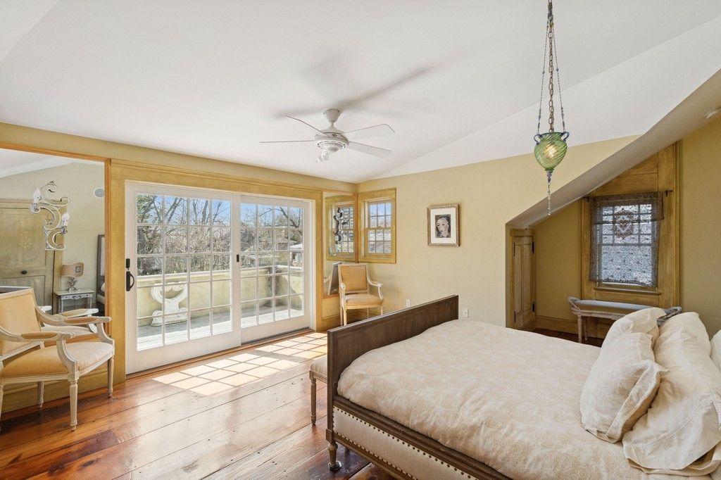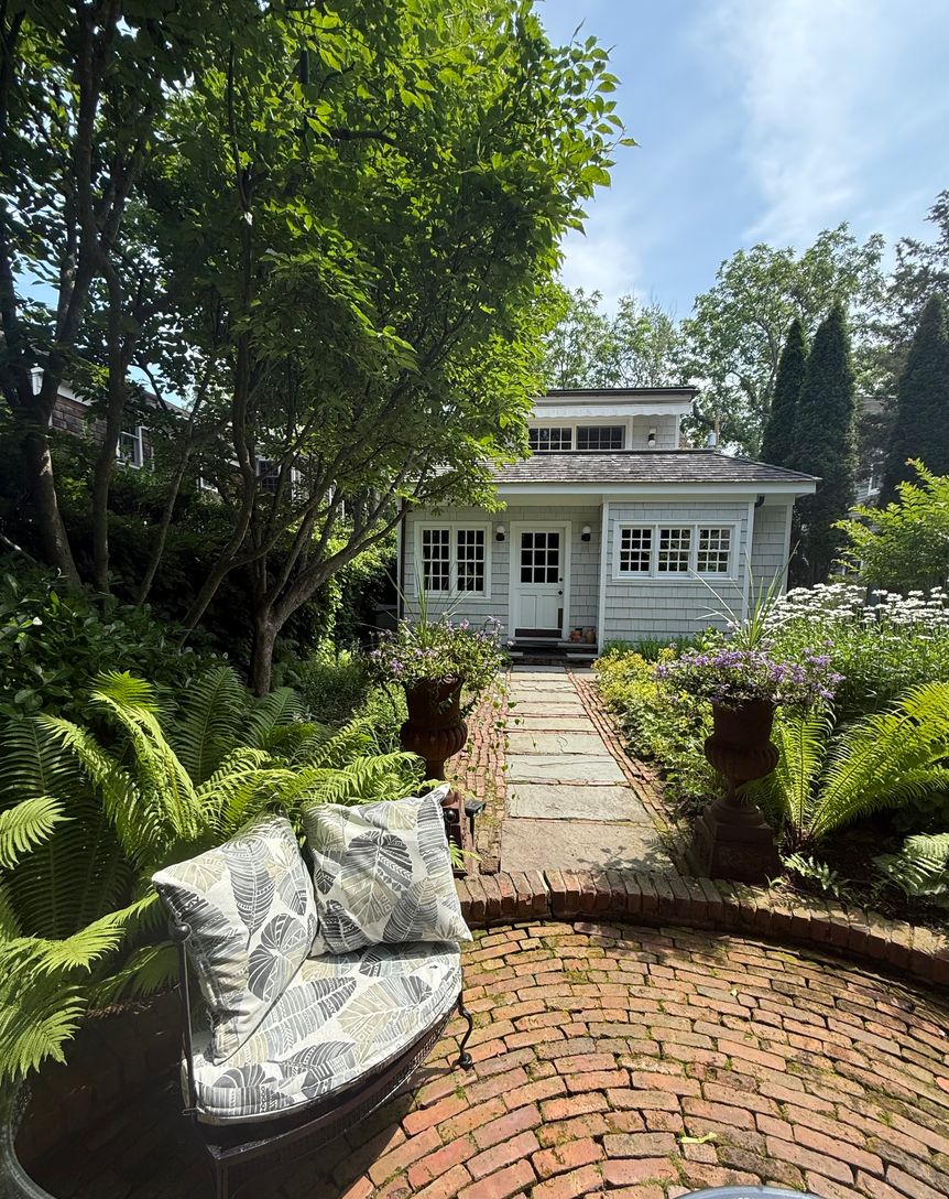 Located on one of the most charming street in Sag Harbor village , this designer house features a large primary bedroom ensuite with bathroom and with private balcony, an additional bedroom on the main floor , living room with fireplace, den with large TV, a full bathroom . The large eat-in country kitchen features high-end appliances, an English porcelain sink and a fireplace . Through a Dutch door you are leadout to the colorful garden with
