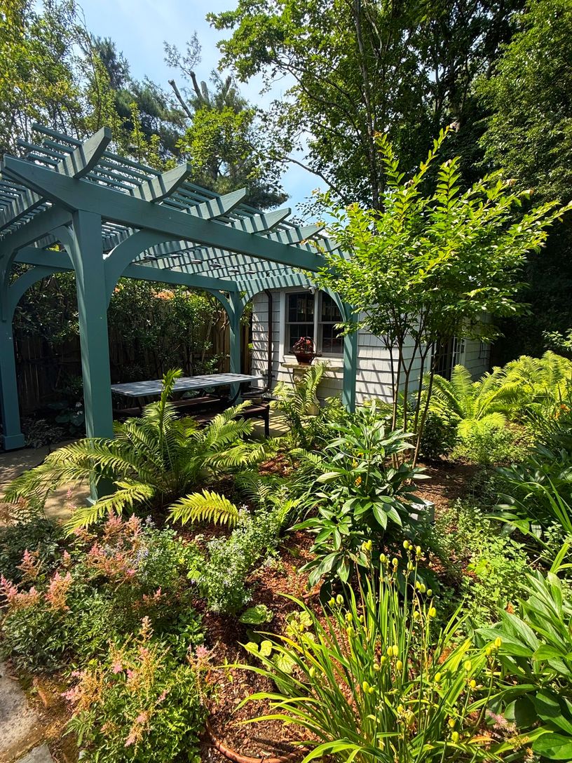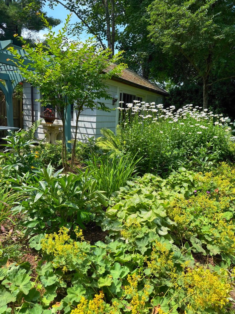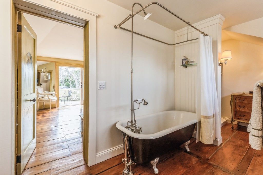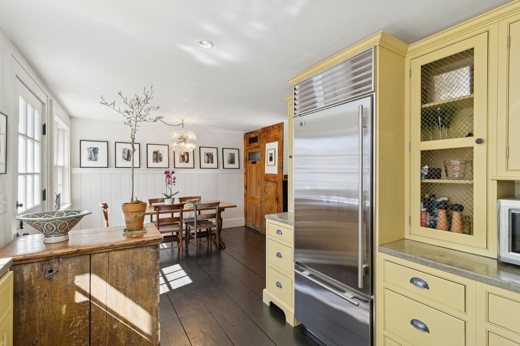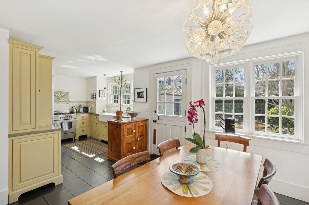 Located on one of the most charming street in Sag Harbor village , this designer house features a large primary bedroom ensuite with bathroom and with private balcony, an additional bedroom on the main floor , living room with fireplace, den with large TV, a full bathroom . The large eat-in country kitchen features high-end appliances, an English porcelain sink and a fireplace . Through a Dutch door you are leadout to the colorful garden with