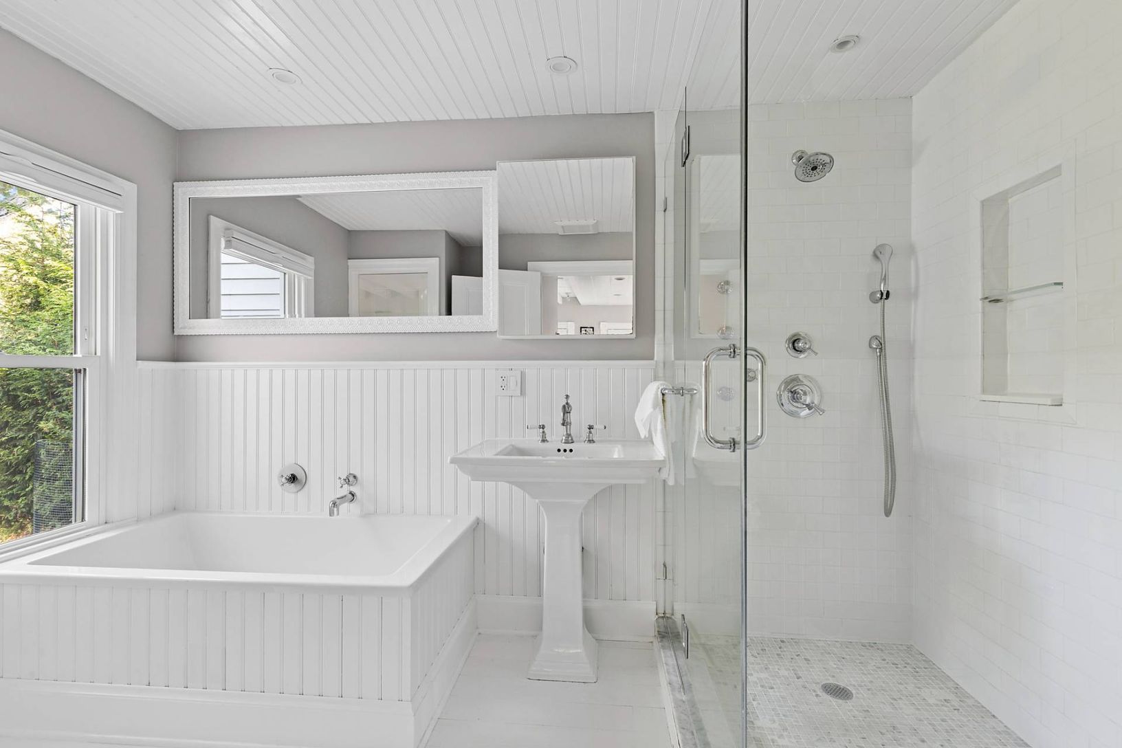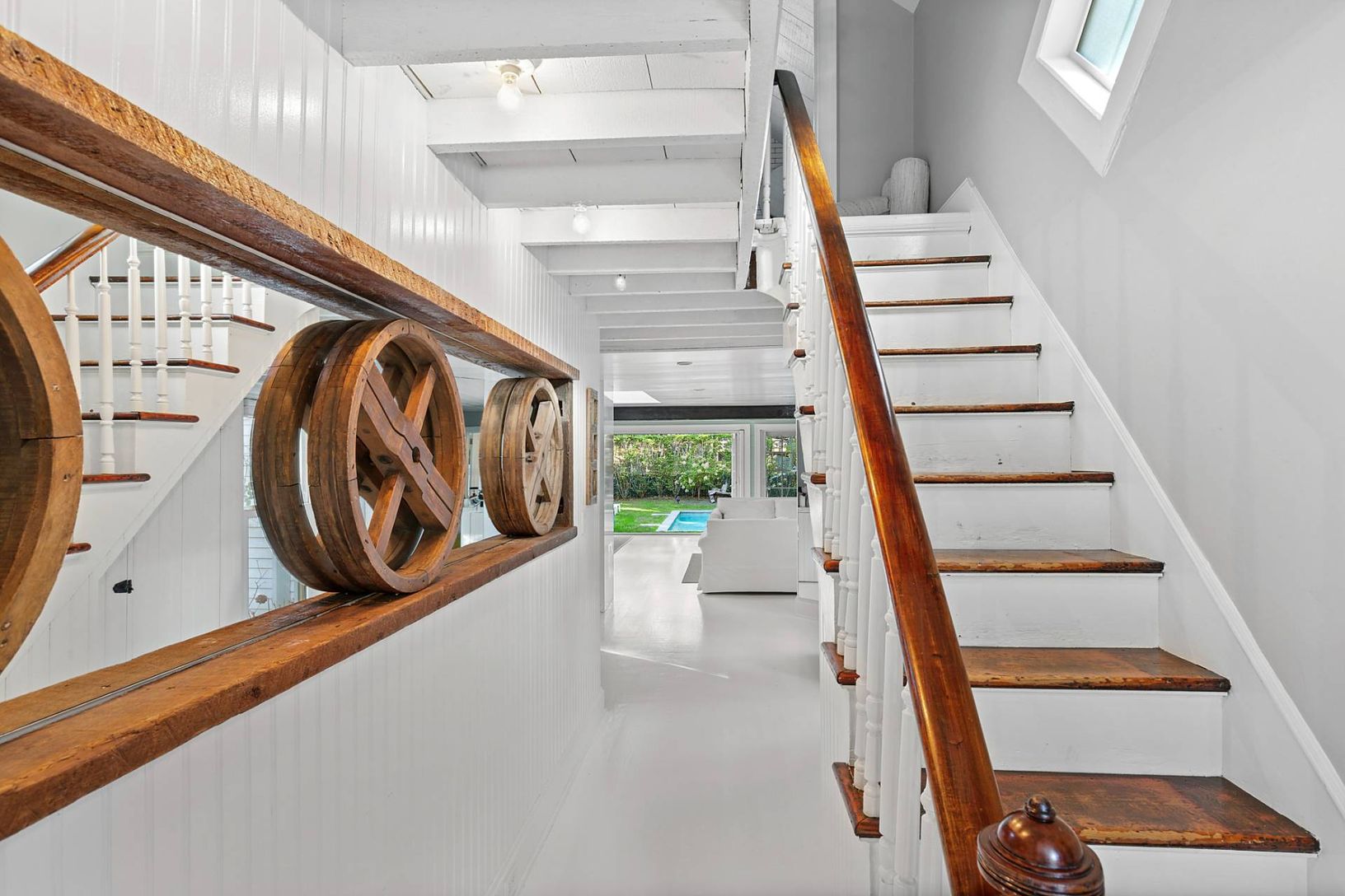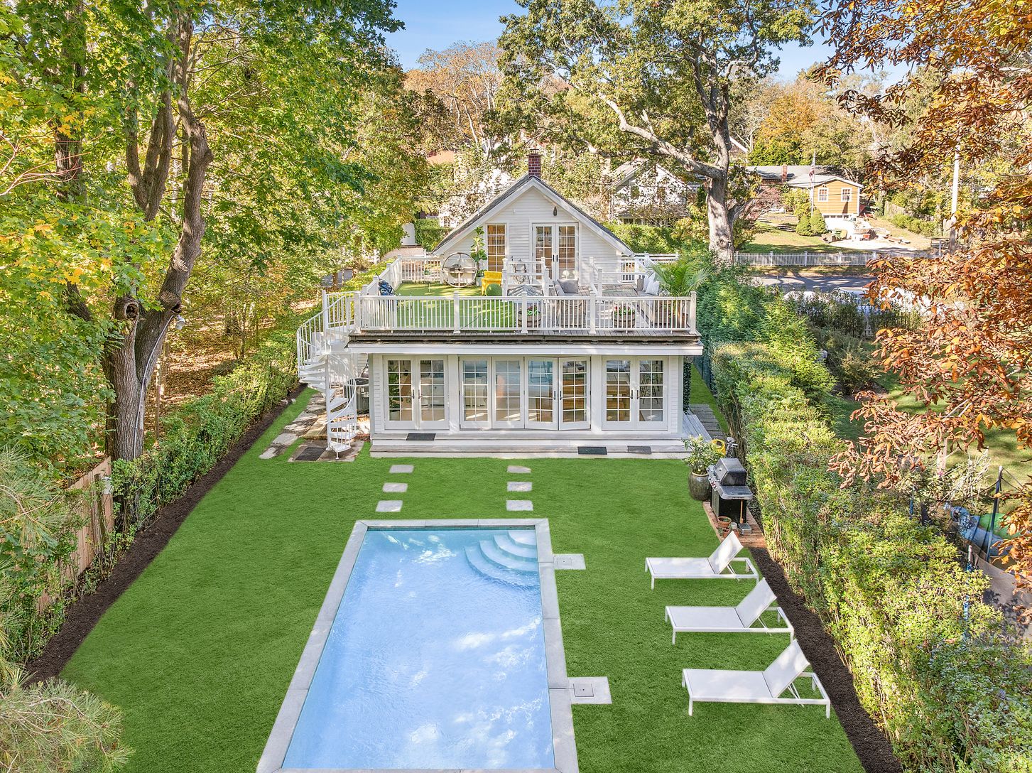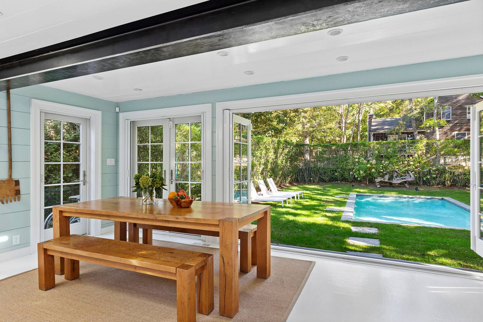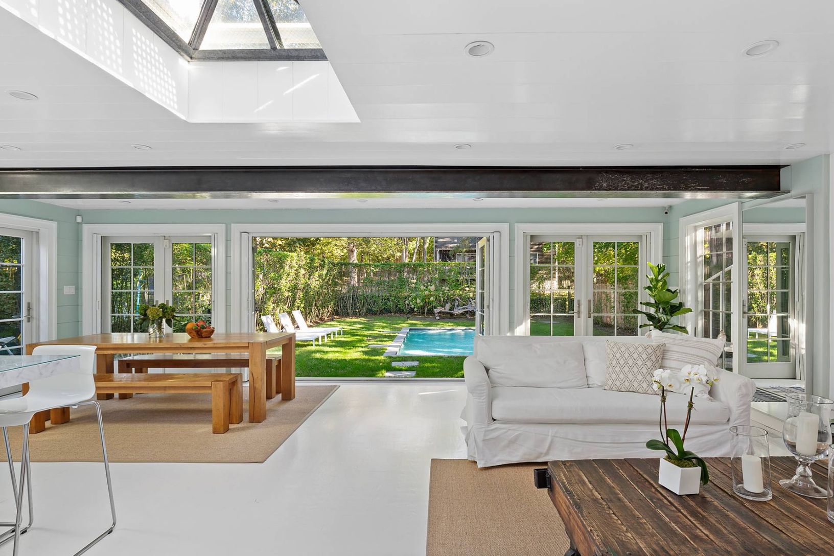 A quintessential Sag Harbor Village historic home with an inviting front porch, this turn-of-the-century home has been recently renovated and updated by noted builder and designer Ray Romano. A traditional entry hall with a graceful original staircase opens into an airy, open-concept layout that seamlessly connects the kitchen, dining, and living areas, all of which overlook the backyard through dramatic bi-fold doors that open the entire rear