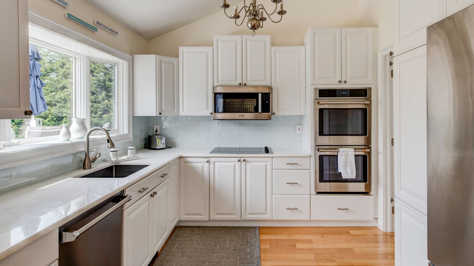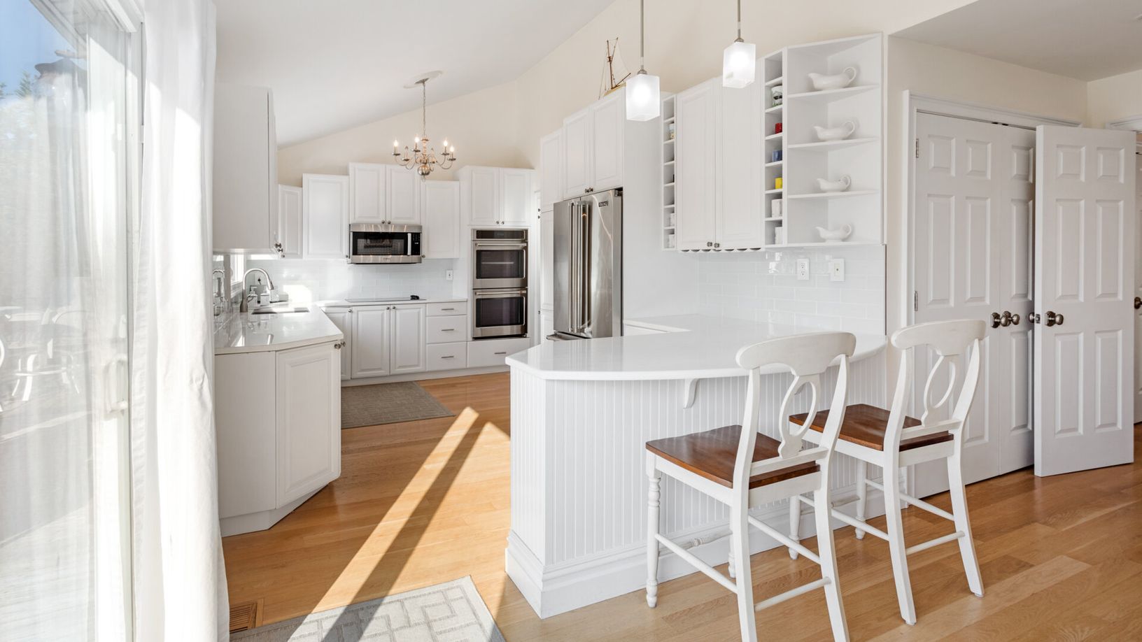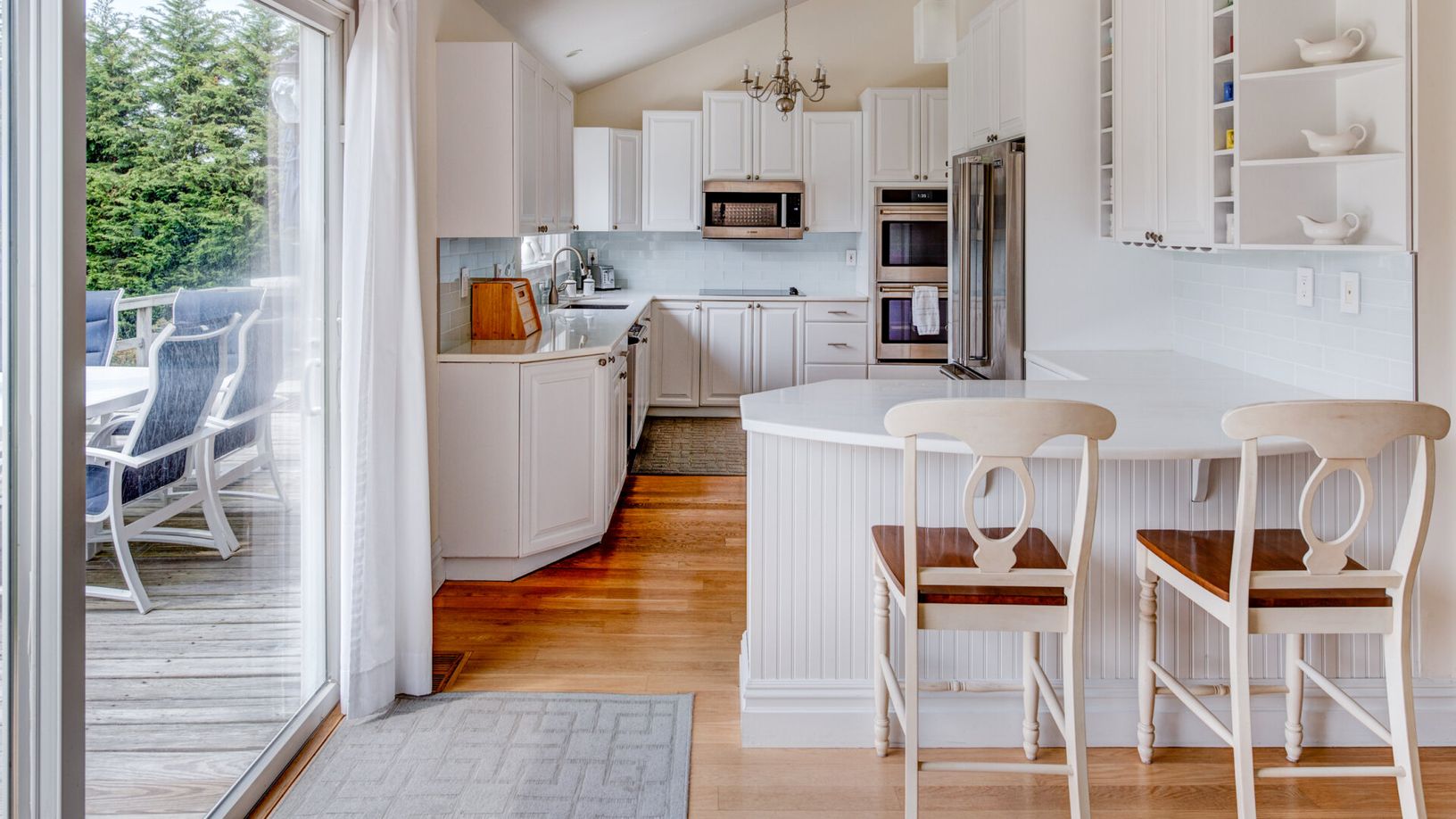 This traditional-style home, featuring a cream and white pallet, contains everything a small group of friends or family would need to escape the hustle and bustle of everyday life. Finished with a mix of well thought out, bone-colored furniture, rugs, and light fixtures, you will surely feel yourself entering a state of tr