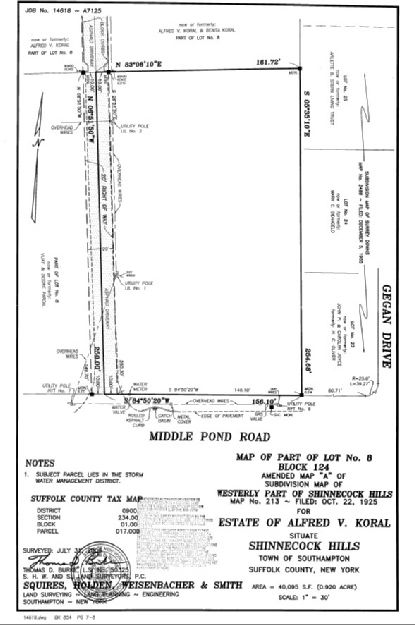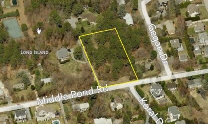 South of the Highway on Middle Pond Road. 40,095 square foot rectangular lot. 156 feet of frontage on Middle Pond Road, 254 feet of depth. R-10 zoning. One of the few remaining large lots in this community. Just reduced to $449,000. Owner says "Lets make a deal!"