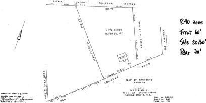 Create a large new residence on this full acre very close to Water Mill shops, Parrish Art Museum and ocean beaches. Prevailing zoning allows for 100% clearing while existing mature trees offer exceptional privacy. Open parkland across the street to the south provides additional privacy and a sunny and bright feel.