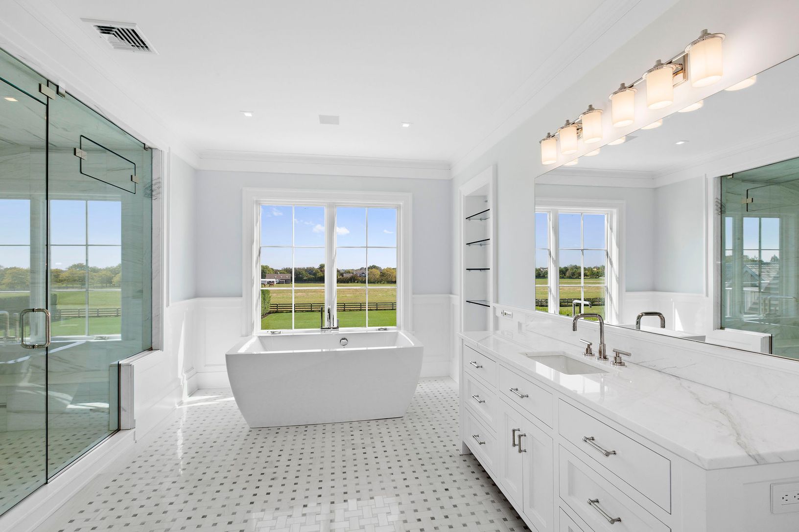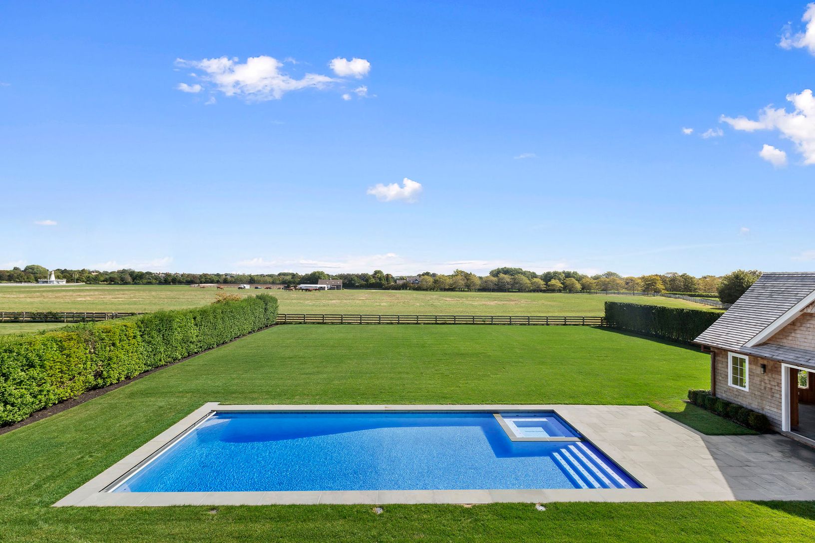Bordering over 29 acres of reserve in one of the most desirable South of the Highway locations, this magnificent new construction was built by award-winning Lipsky Building Construction and designed by architect Fred Throo. Sited on a shy acre with panoramic farm views from virtually every room, this 9995+/- sq. ft. estate was just completed. Offering 7 bedrooms including a spacious master suite with a private balcony with farm field views, do