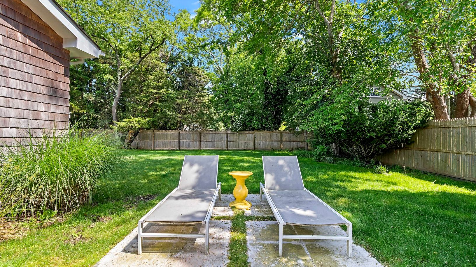 Experience modern beach living in Southampton year-round in this newly-renovated cottage. Located on a private road, the home sits on a grassy quarter acre, fenced-in to ensure safety for the whole family. The professionally-designed interior features an open floor plan with high vaulted ceilings and clean, crisp white