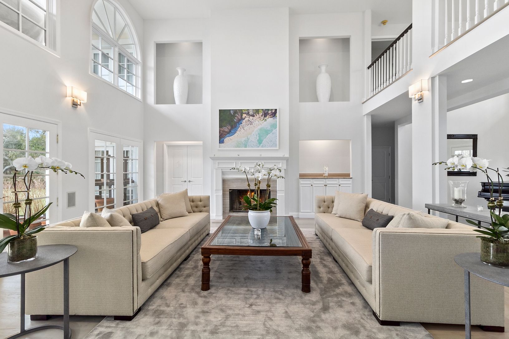 This stunning villa located south of the highway in Southampton Village offers everything one could want for a stay in the Hamptons. On the main floor you have a double height open living area flooded with sunlight with french doors leading outside. There is a gourmet kitchen, formal dining room, a study as well as two guest bedrooms. Upstairs is the primary suite complete with an exquisite tiled primary bath. In addition there are two guest s