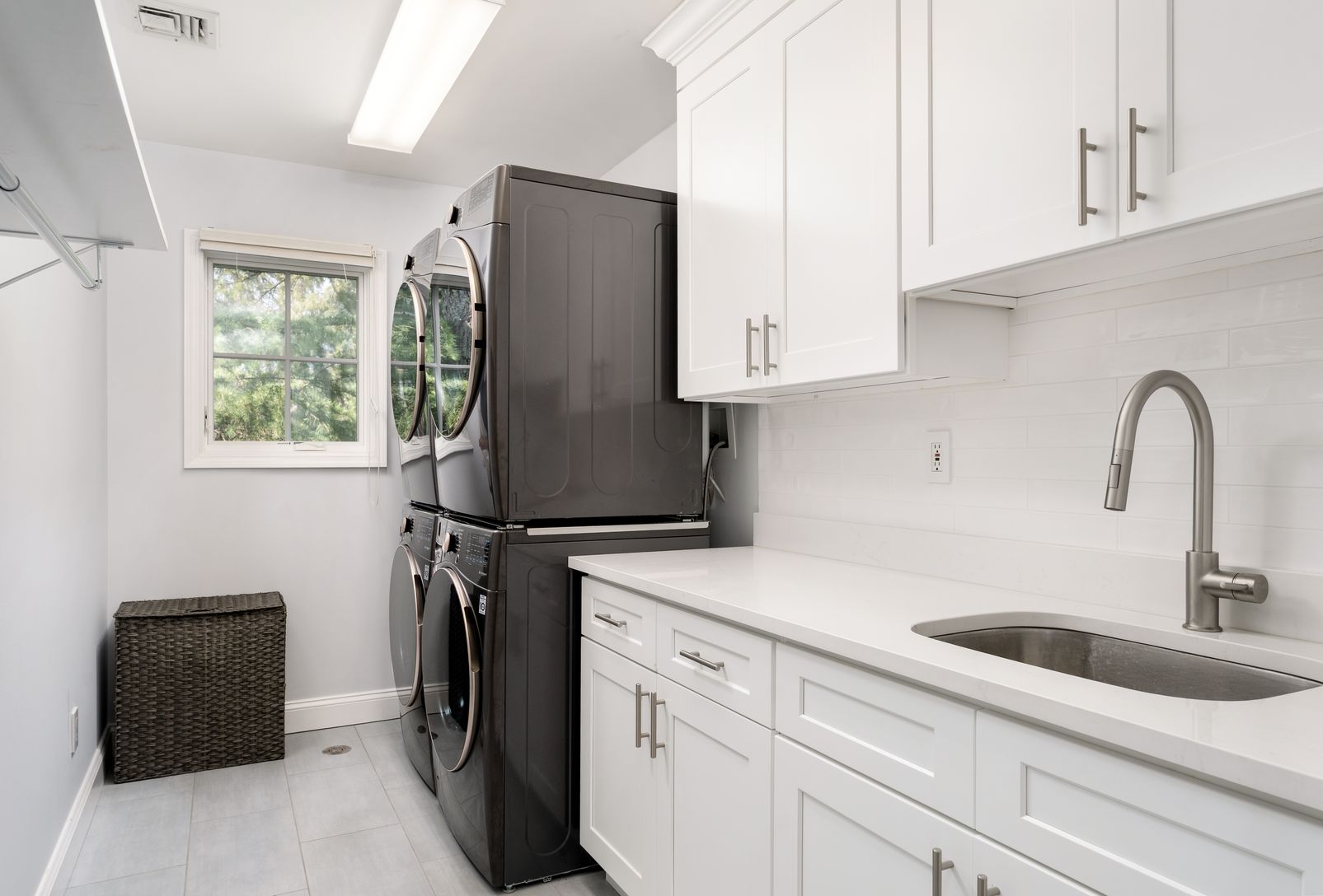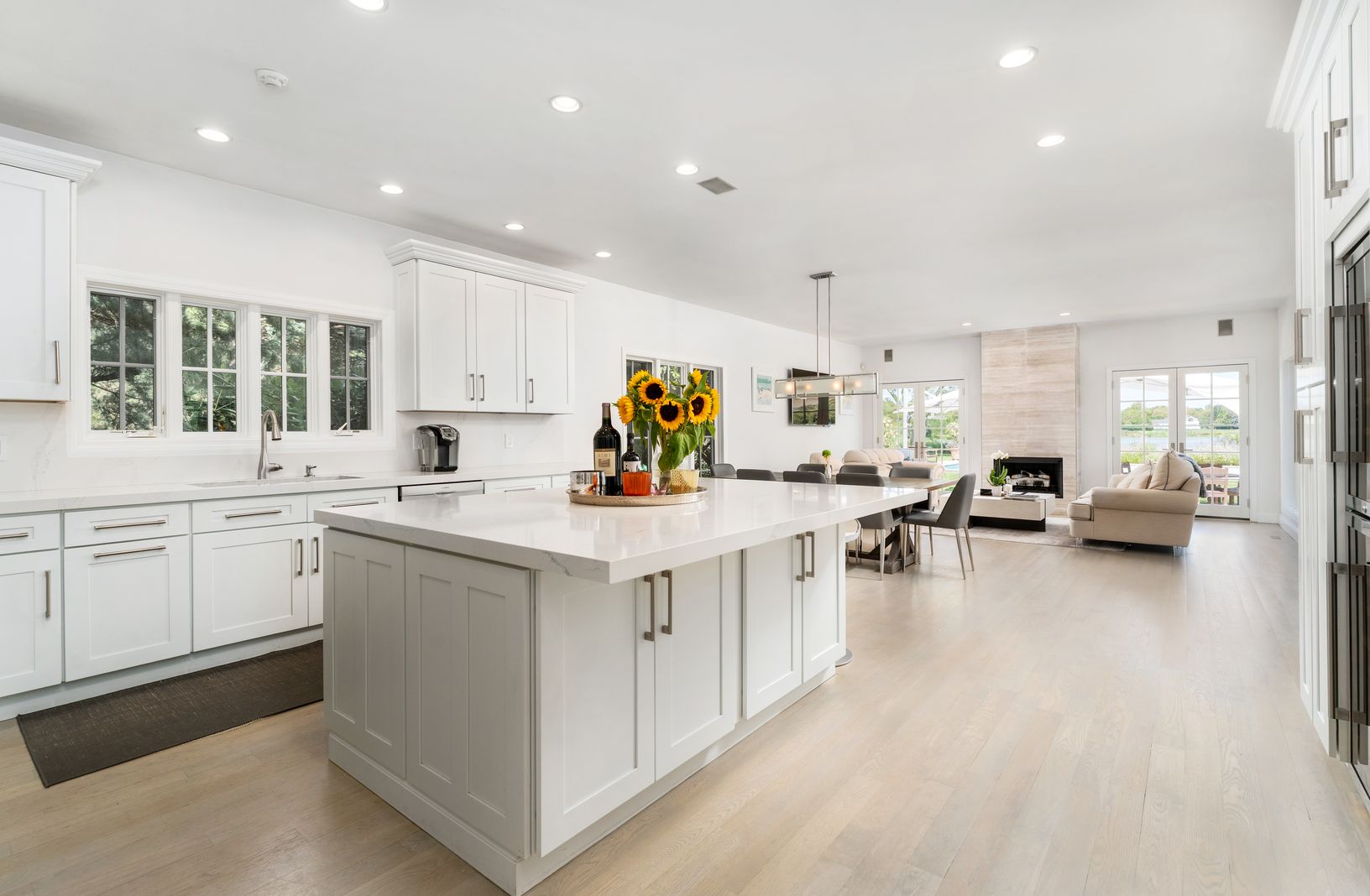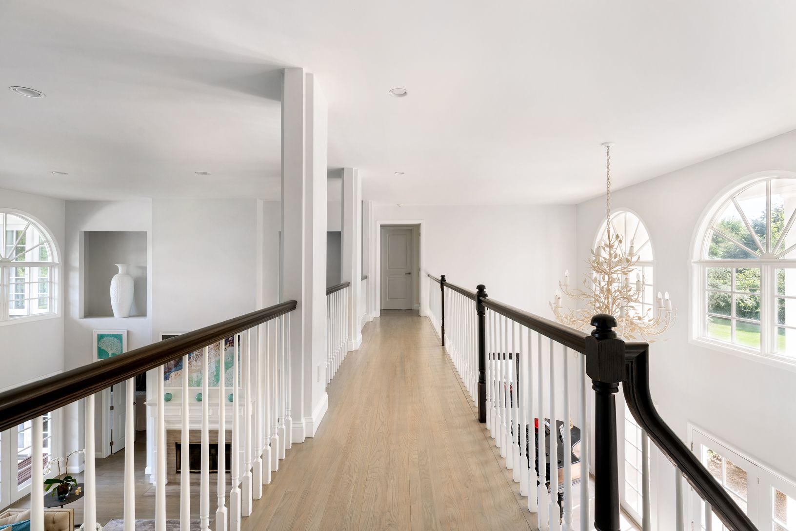 This bright & private 8,000 sqft home (including finished basement) has a west orientation over the pond, showcasing beautiful sunsets in a tranquil setting. Located in the coveted Estate Section of Southampton Village, the home has been totally renovated to the highest standards. The interior features grey hardwood floors throughout, chef’s kitchen with
