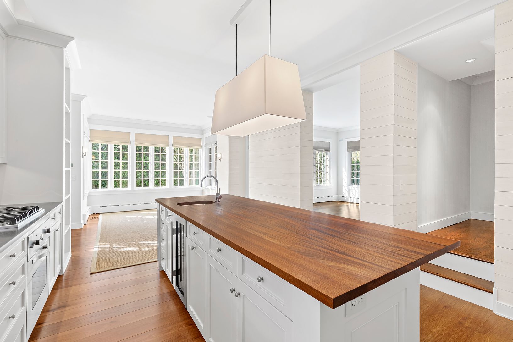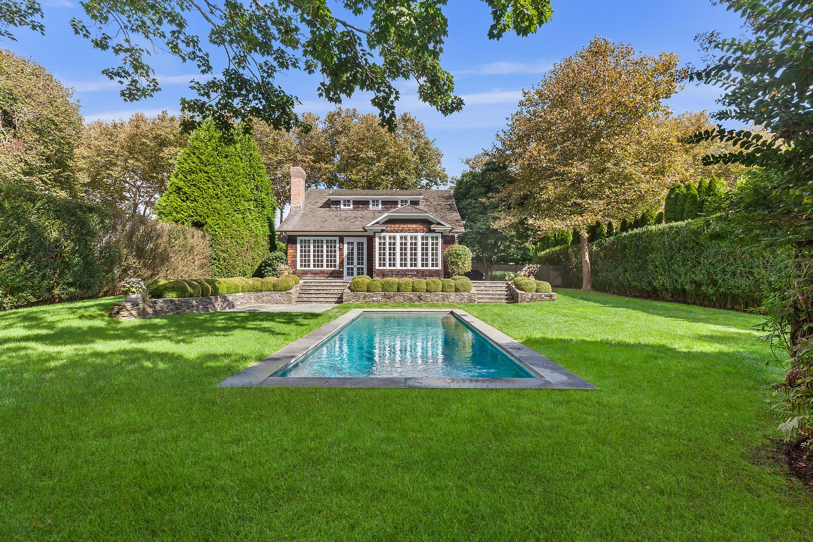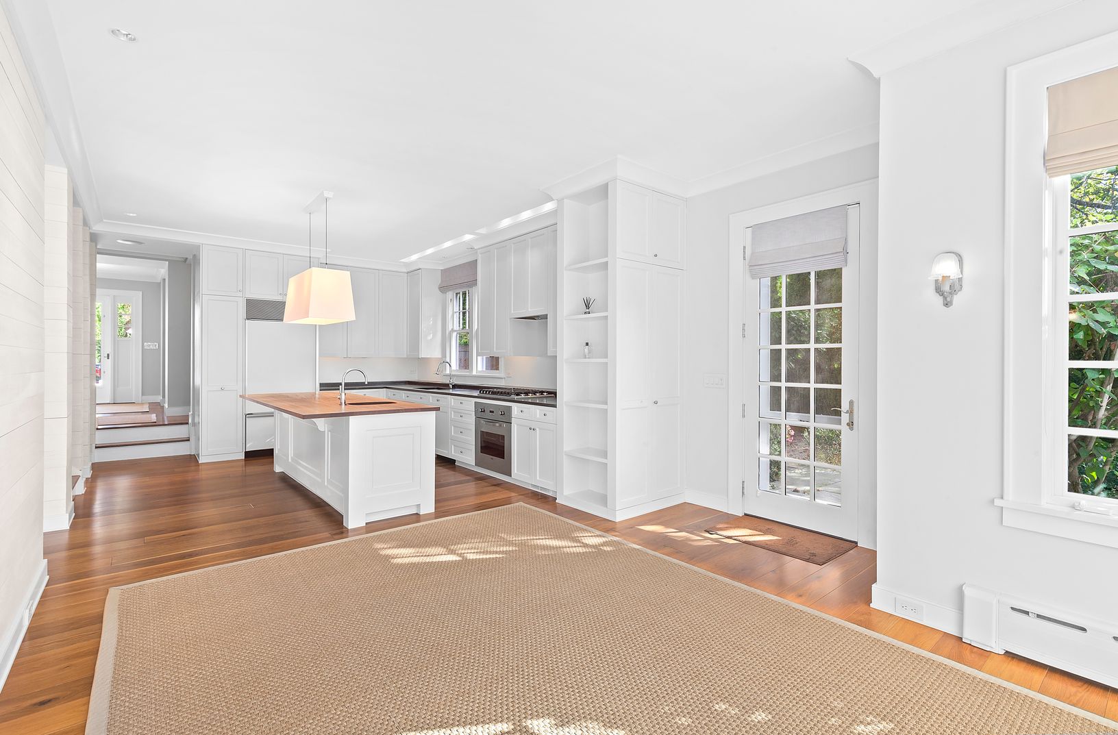 First time offering of an exquisite East Hampton, Elle Décor published three bedroom and three bathroom home designed by Wettling Architects. The light-filled central living space with nine-foot ceiling heights features a wood burning fireplace as the centerpiece to the open living space comprised of the kitchen, dining and living room. The home is a collaboration of Eve Ashcraft custom interior finishes of color and hand painted interior wall