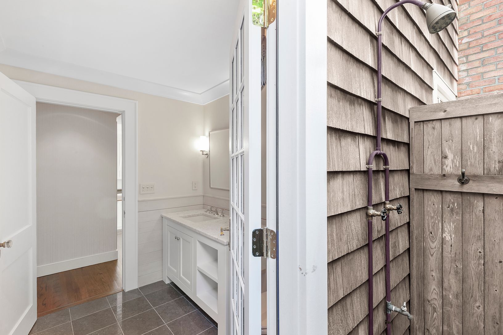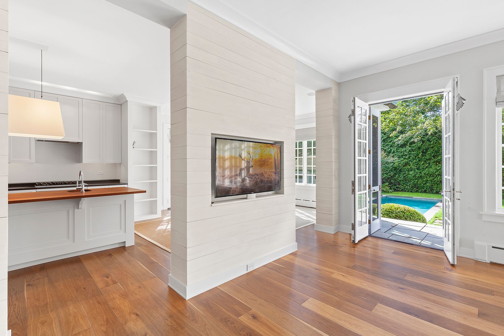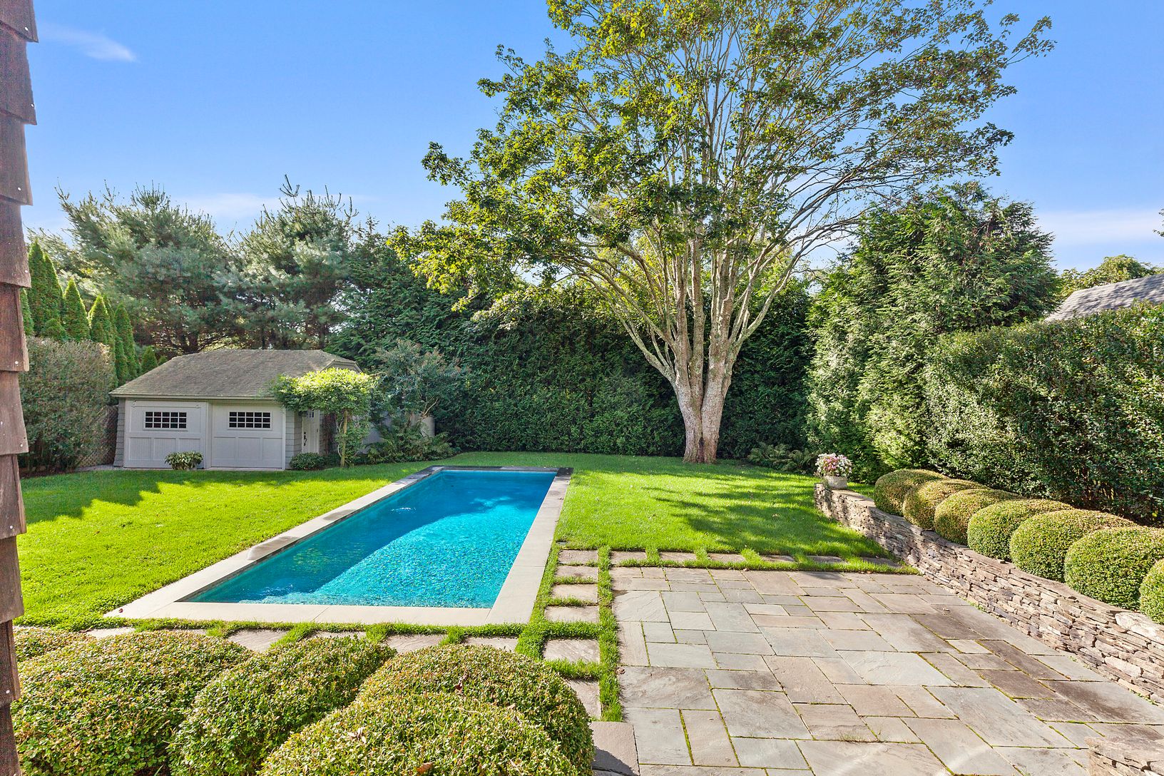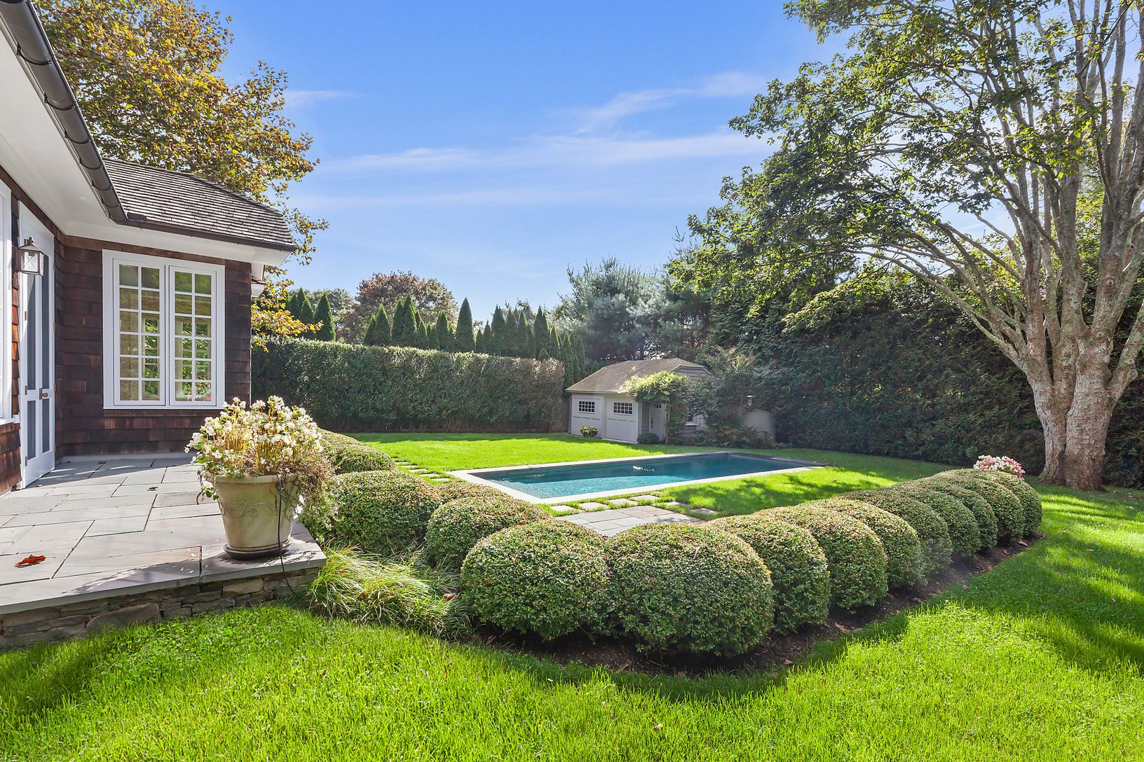First time offering of an exquisite East Hampton, Elle Décor published three bedroom and three bathroom home designed by Wettling Architects. The light-filled central living space with nine-foot ceiling heights features a wood burning fireplace as the centerpiece to the open living space comprised of the kitchen, dining and living room. The home is a collaboration of Eve Ashcraft custom interior finishes of color and hand painted interior wall