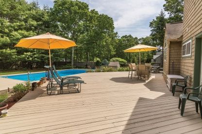 New to the market and only minutes to East Hampton Village. Traditional on .66+/- acres proudly features three bedrooms, two baths, updated kitchen, double height ceiling in living room, central air, security system and private en suite master. Additional features include 20' x 40' sparkling heated pool plus 1,400+/- sq. ft. of deck, great for entertaining. Low taxes, professionally landscaped and move-in condition. This is your perfect "stay