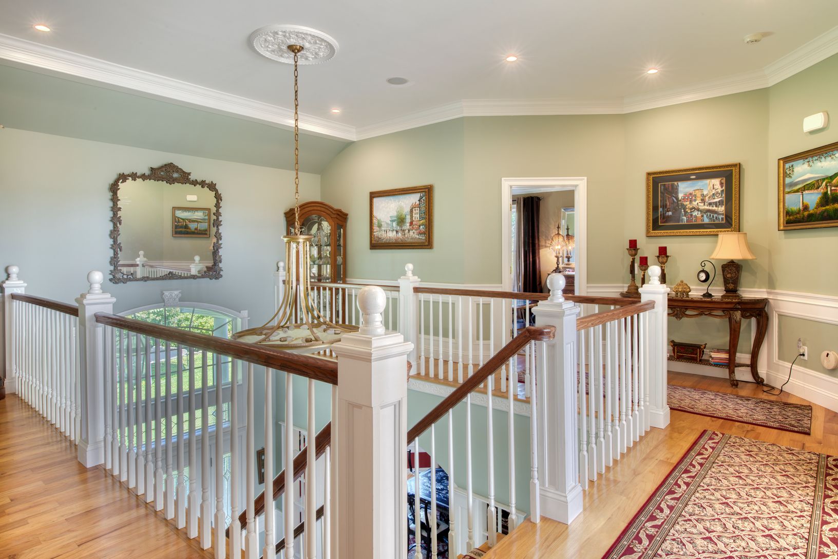 Builders own 4 bedroom, 3.5 bath home. First floor has large family room with wood stove fireplace, eat in kitchen, formal dining room, den, first floor bedroom, laundry room and 1.5 baths. Large master suite with sitting area and huge California walk in closet. Central vacuum and speaker system throughout the house. Solar panels. Full unfinished walk out basement with high ceilings. Very private flag lot with beautiful landscaping and in grou