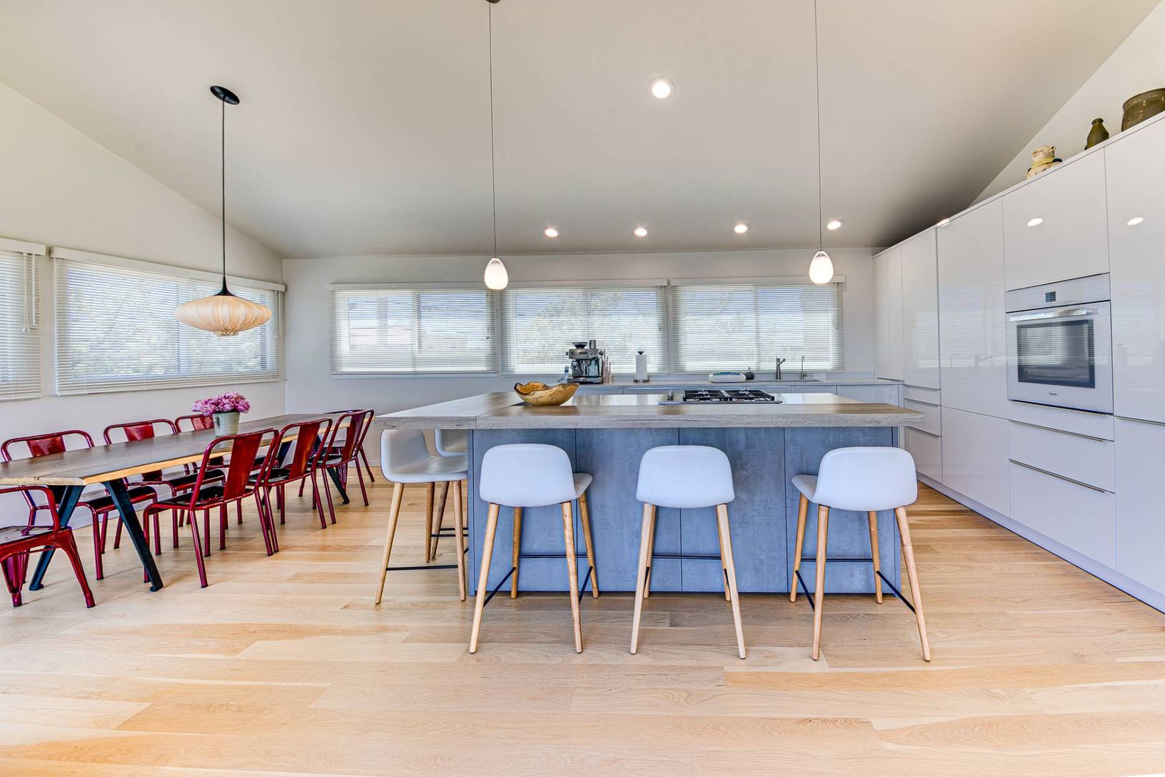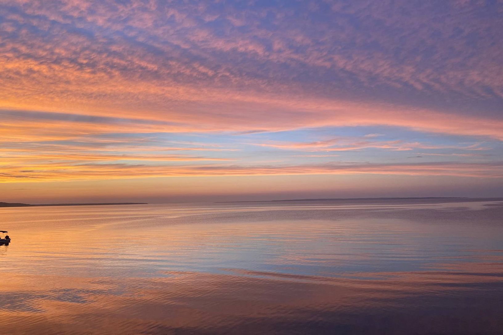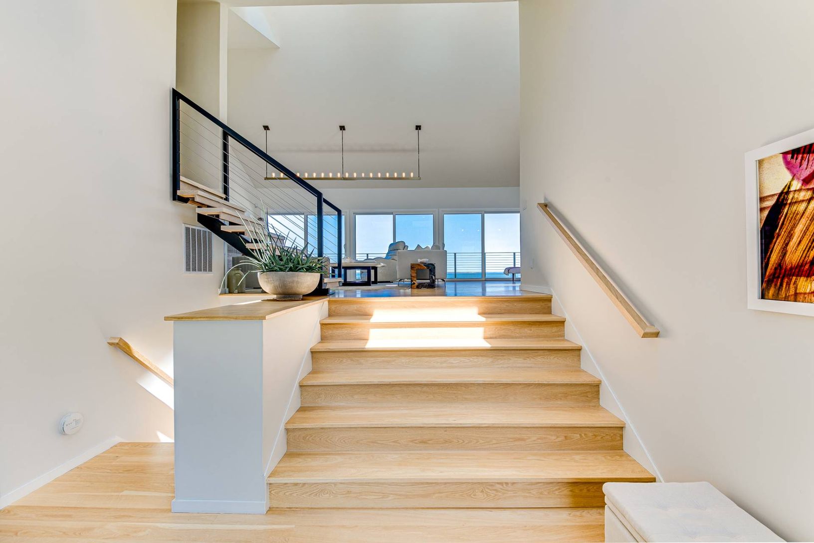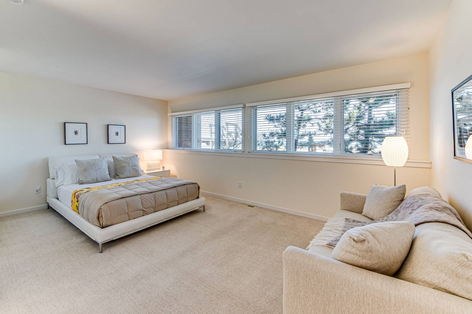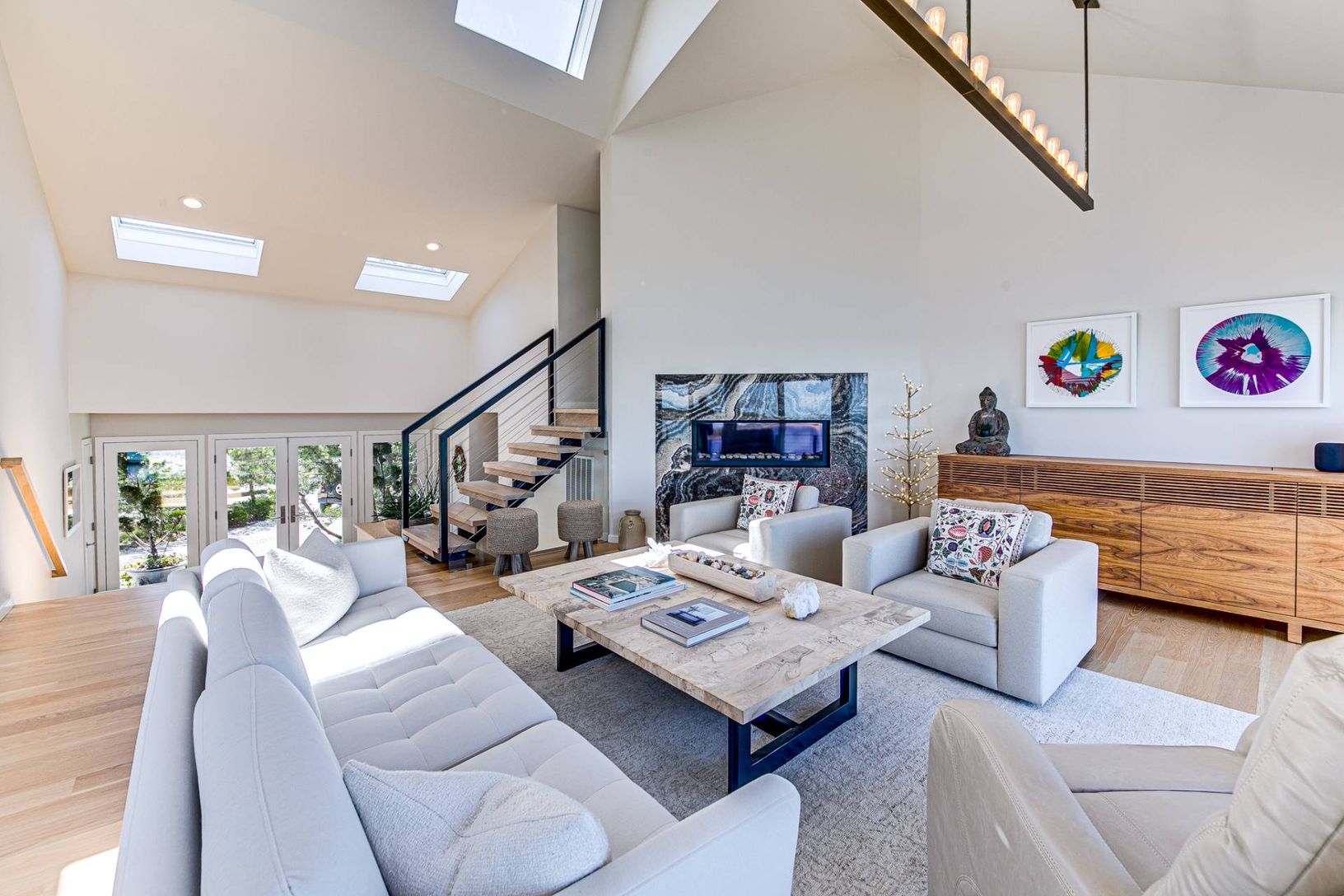 Located on Amagansett's coveted Cranberry Hole Road, this contemporary waterfront home offers unending views with spectacular sunsets from every room, especially the great room with its walls of sliding glass doors. Light cascades from skylights in the cathedral ceilings to the natural oak floors adding a touch of warmth to this approximately 3,000 square feet home featuring 3 bedrooms and 3.5 bathrooms. Outside the door is your own private be
