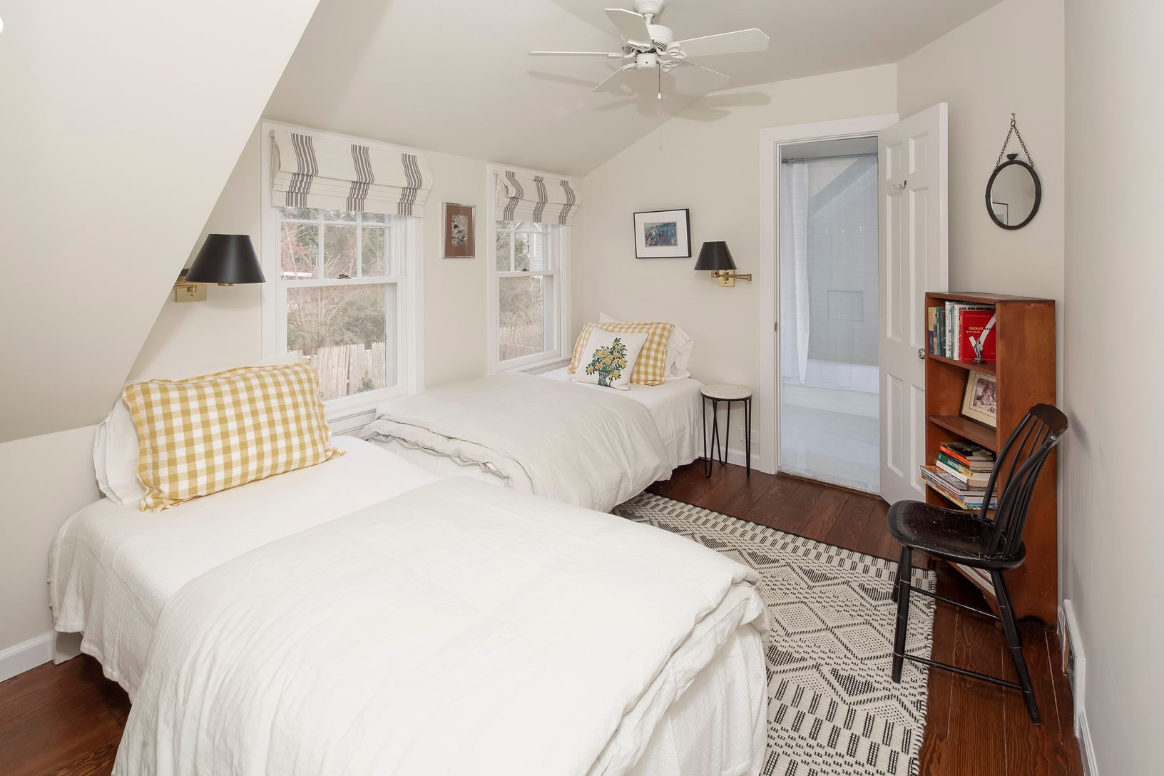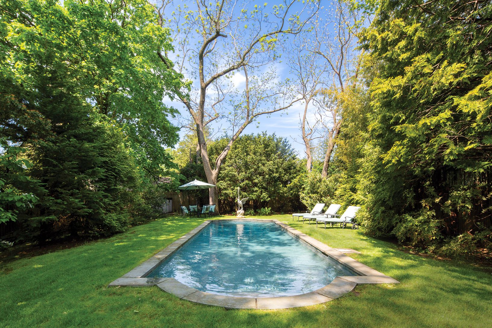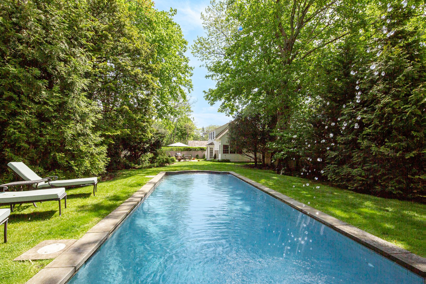 A perfect summer get-a-away. Located on a beautifully landscaped property with a large heated pool and patio. Enter the house through the sunny living room with adjoining dining room overlooking the rear patio and backyard. A large kitchen and primary bedroom and bath on the first floor. On the second floor you will find 2 bedrooms, a full bathroom, sitting area/office and a large deck. The interior of the house has been freshly painted a