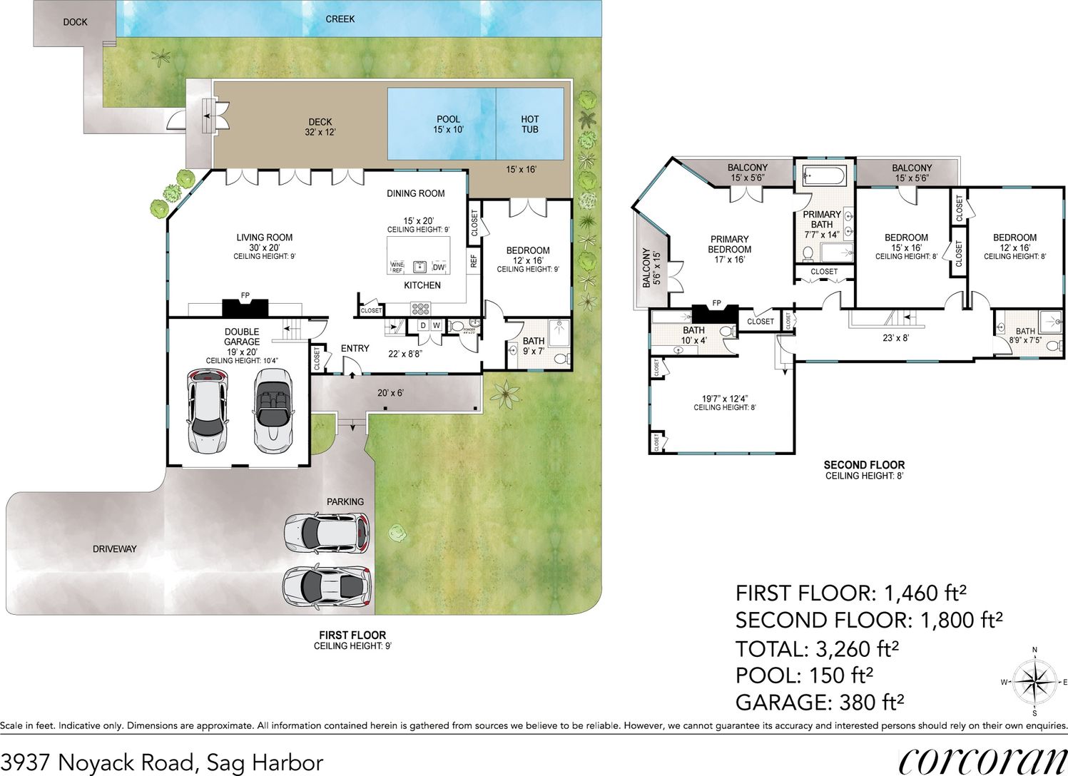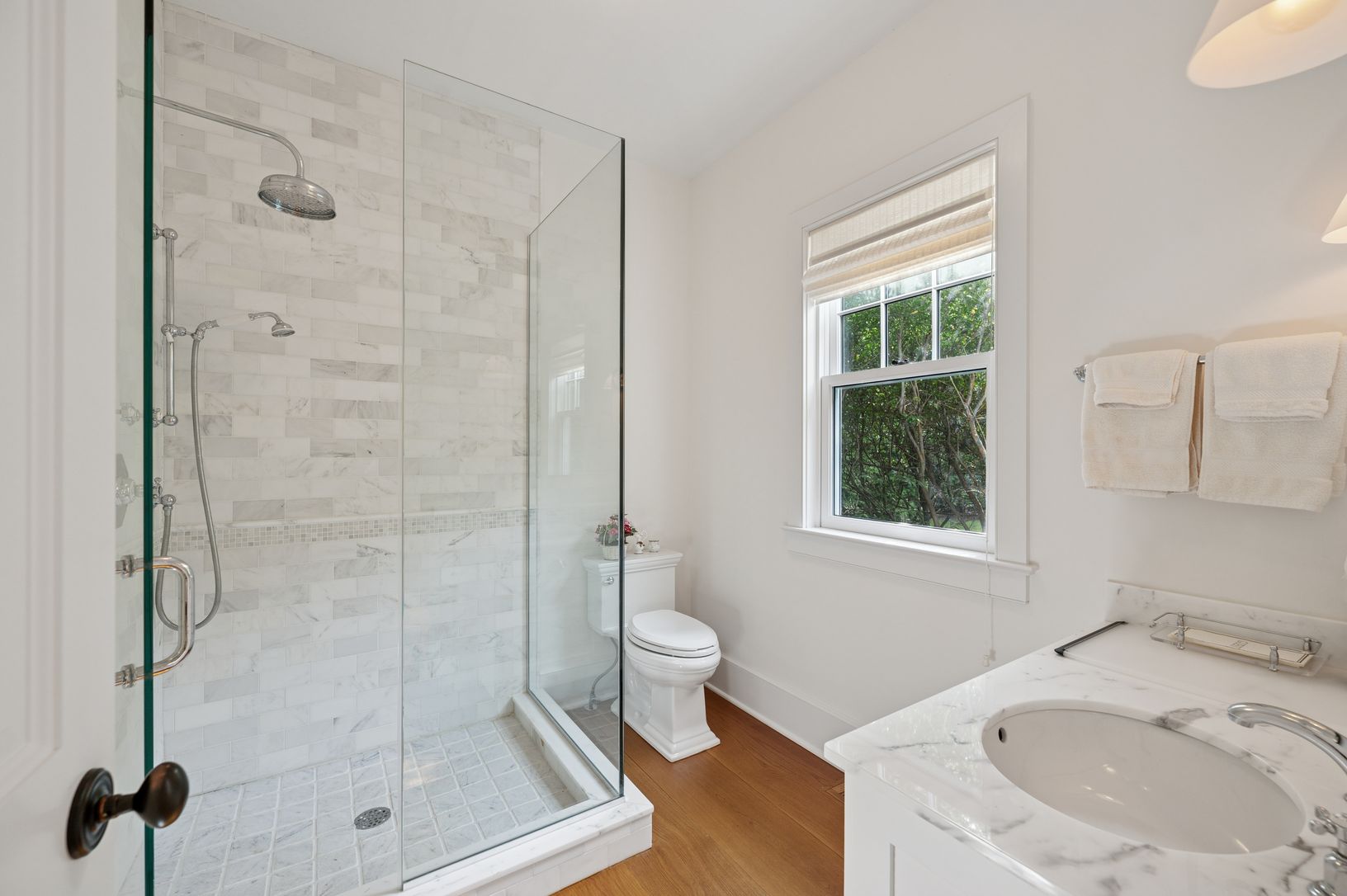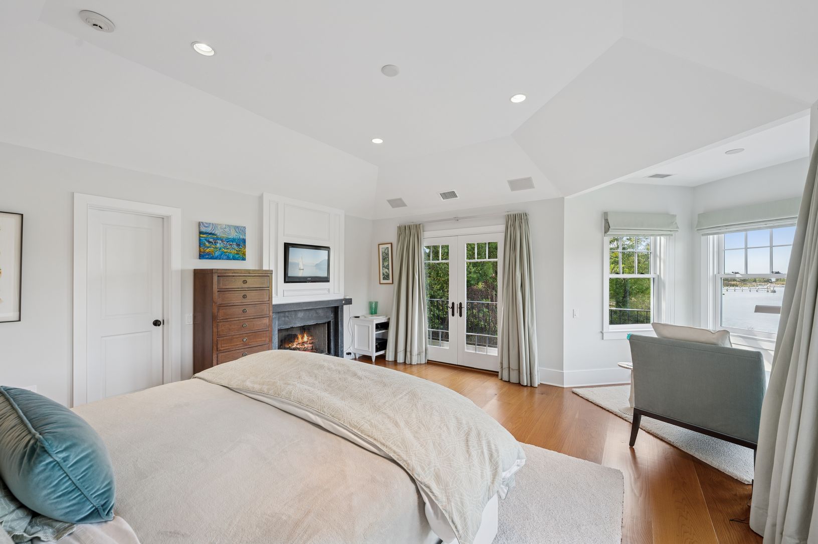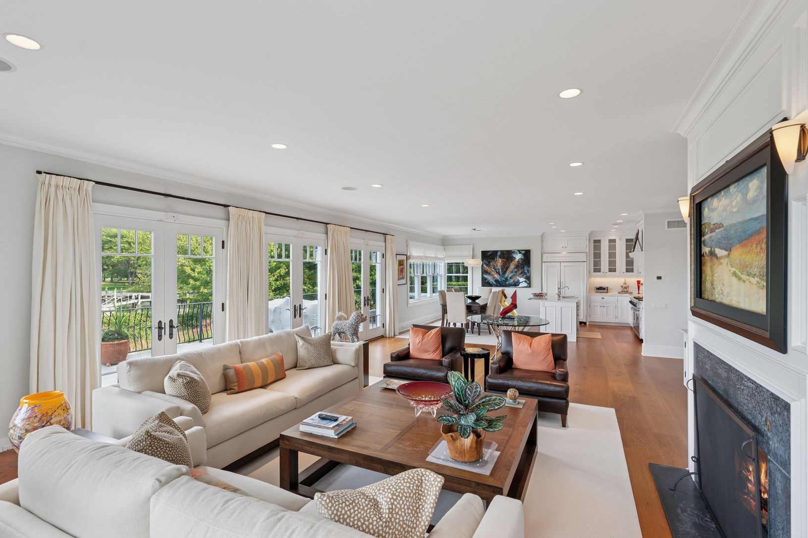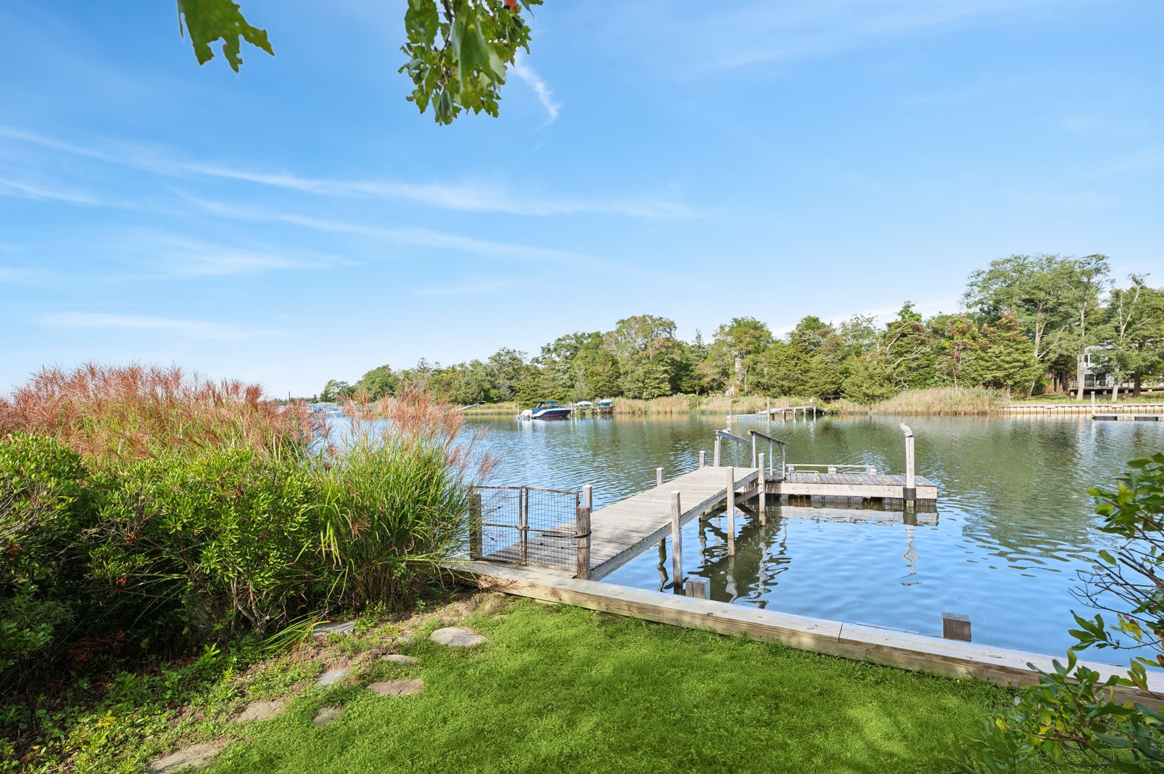 This shingle-style retreat offers more than 3200SF of living space across two levels, perfectly designed for entertaining and easy Hamptons living. Set on nearly half an acre with bulkheaded frontage on Sag Harbor Cove, deep-water dock, heated gunite pool, spa, and expansive decks overlooking the cove and Noyac Bay. The first floor flows seamlessly to the outdoors, featuring a huge living room with fireplace, a sun-filled dining room and kitch