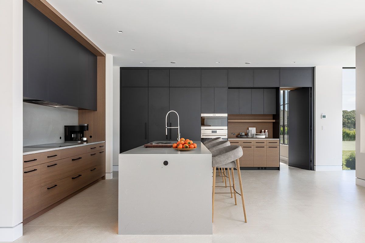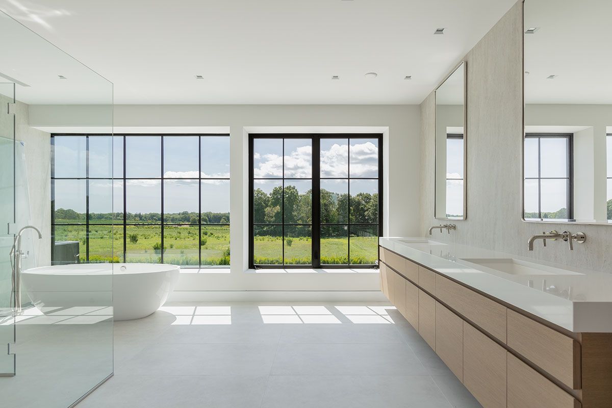 A triumph of modern farmhouse design, this stunning, newly completed estate by East End Building Company sprawls across 1.5 acres, offering breathtaking southern views over a 50-acre reserve. Encompassing over 12,600 square feet across three levels of finely articulated space, this home is an architectural marvel, designed with luxury, comfort, and functionality in mind. A dramatic 11-foot custom pivot door welcomes you into a two-story foyer,