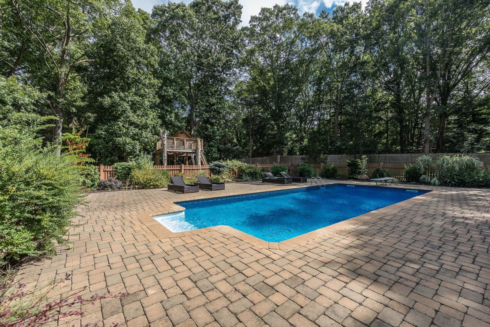 This 3 bedroom, 2 bath one level home is just minutes to Louse Point. Great light and open living space with vaulted ceilings, an expansive deck for outdoor entertaining complete with covered areas. The heated pool and sunny large patio is fenced off from both a spacious front & rear yard. New HVAC system