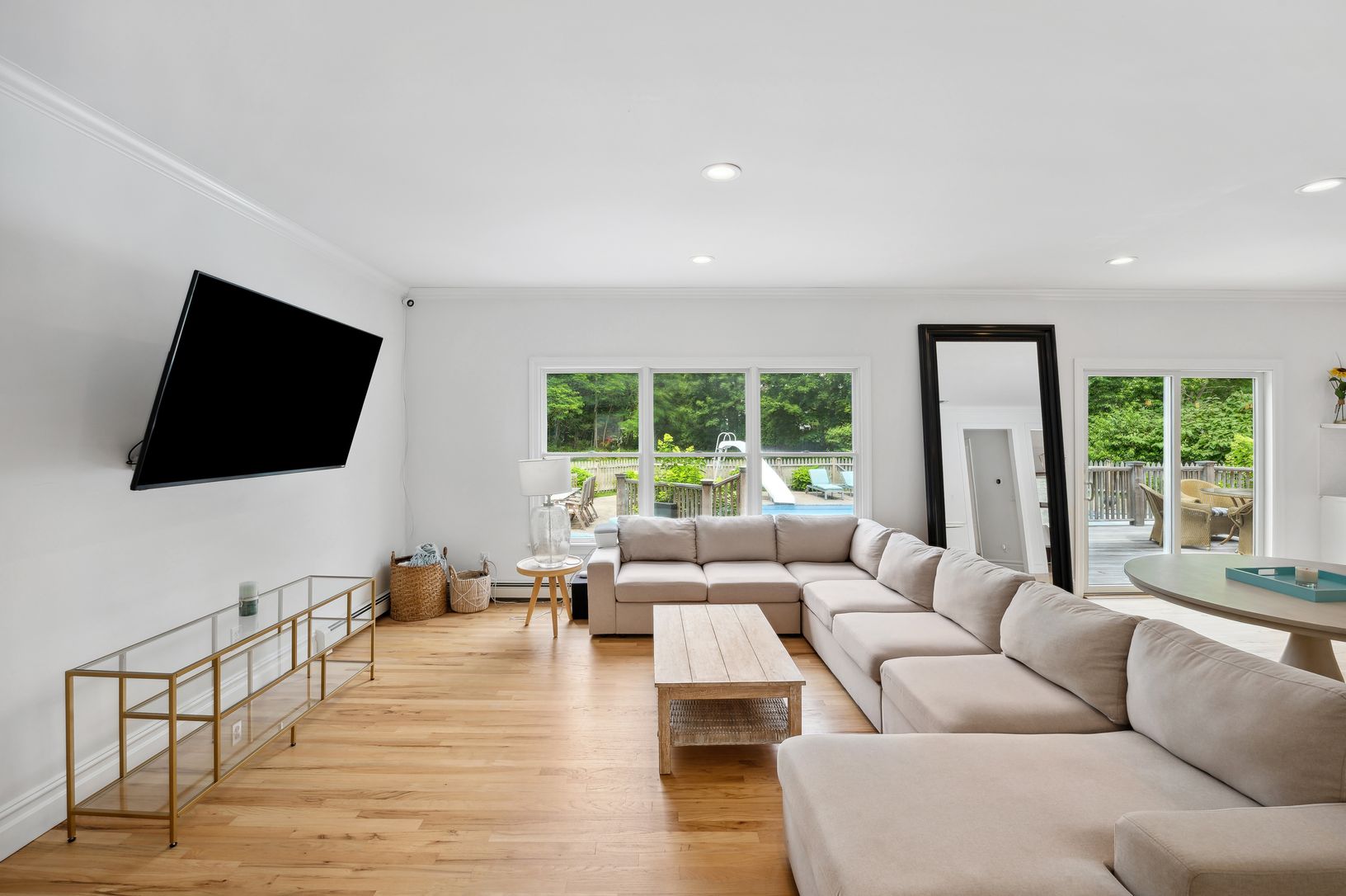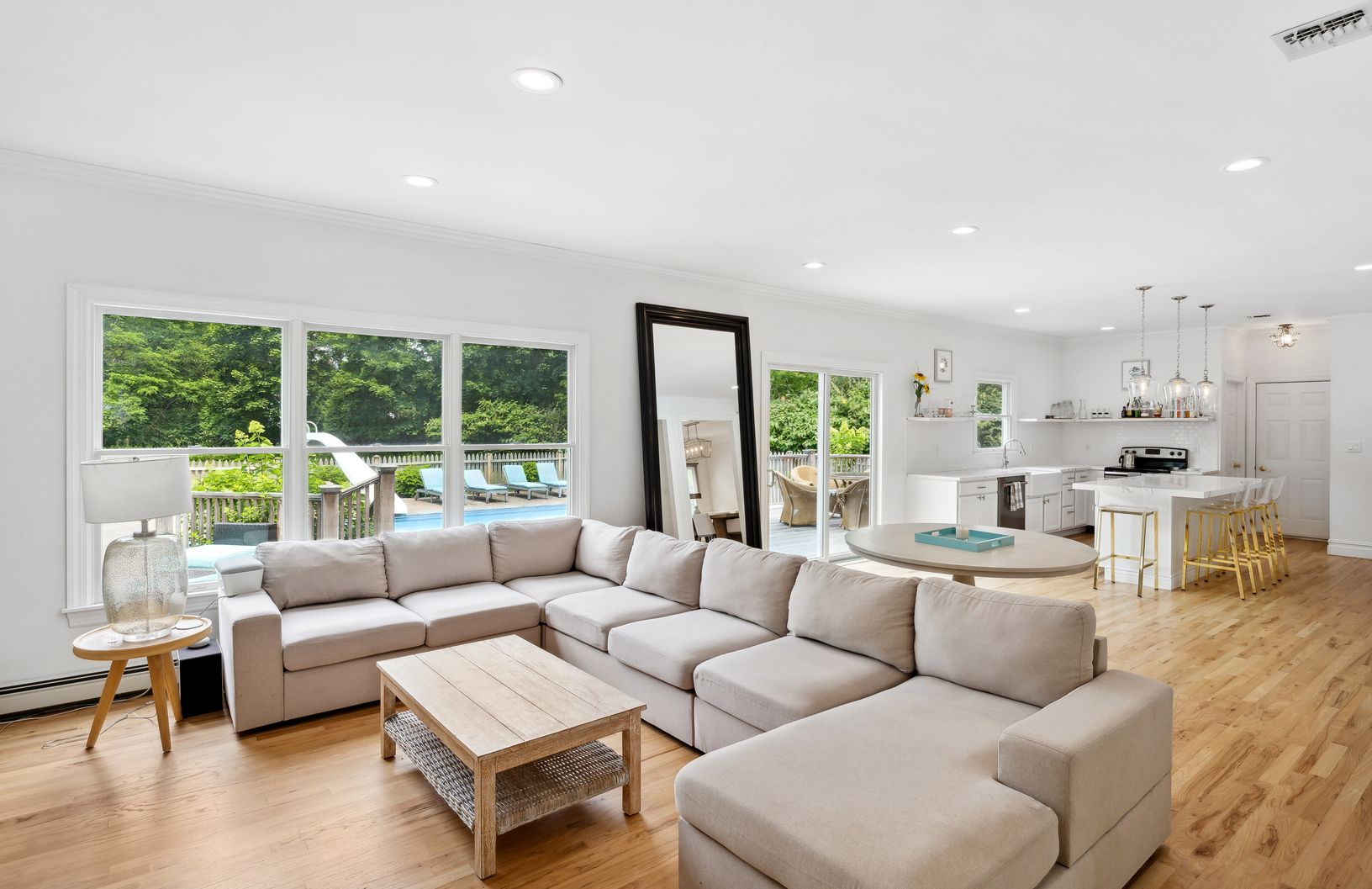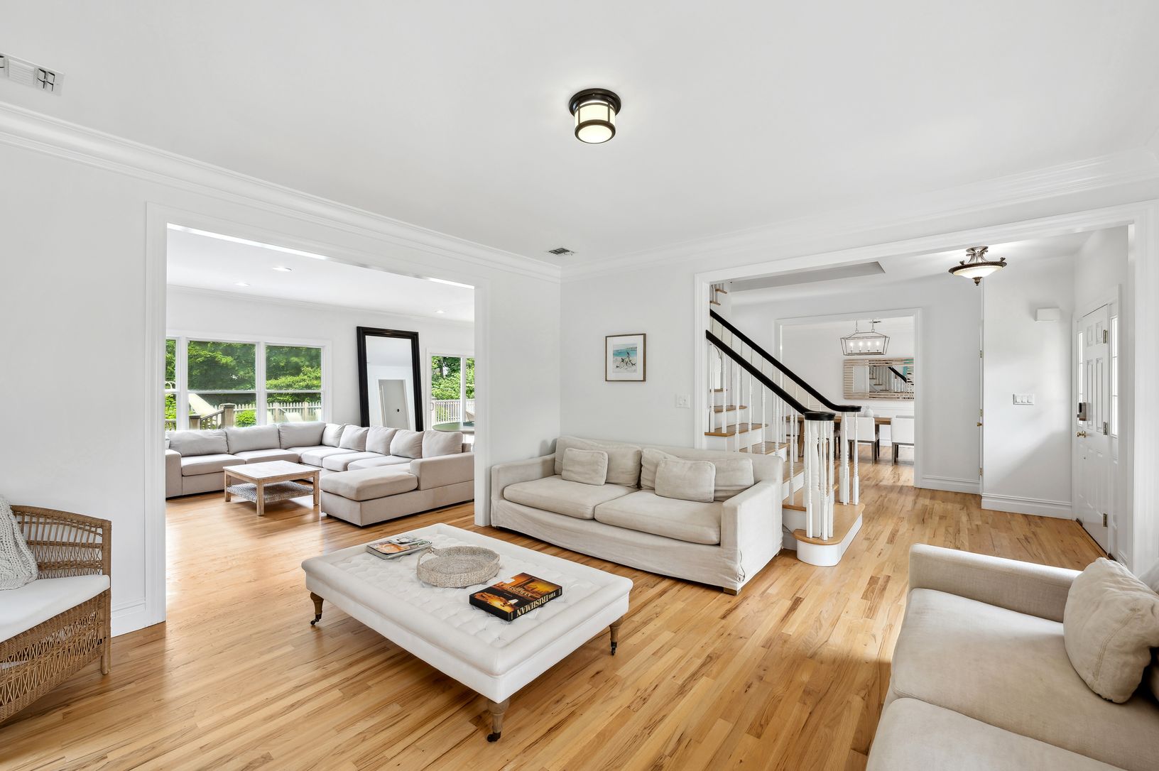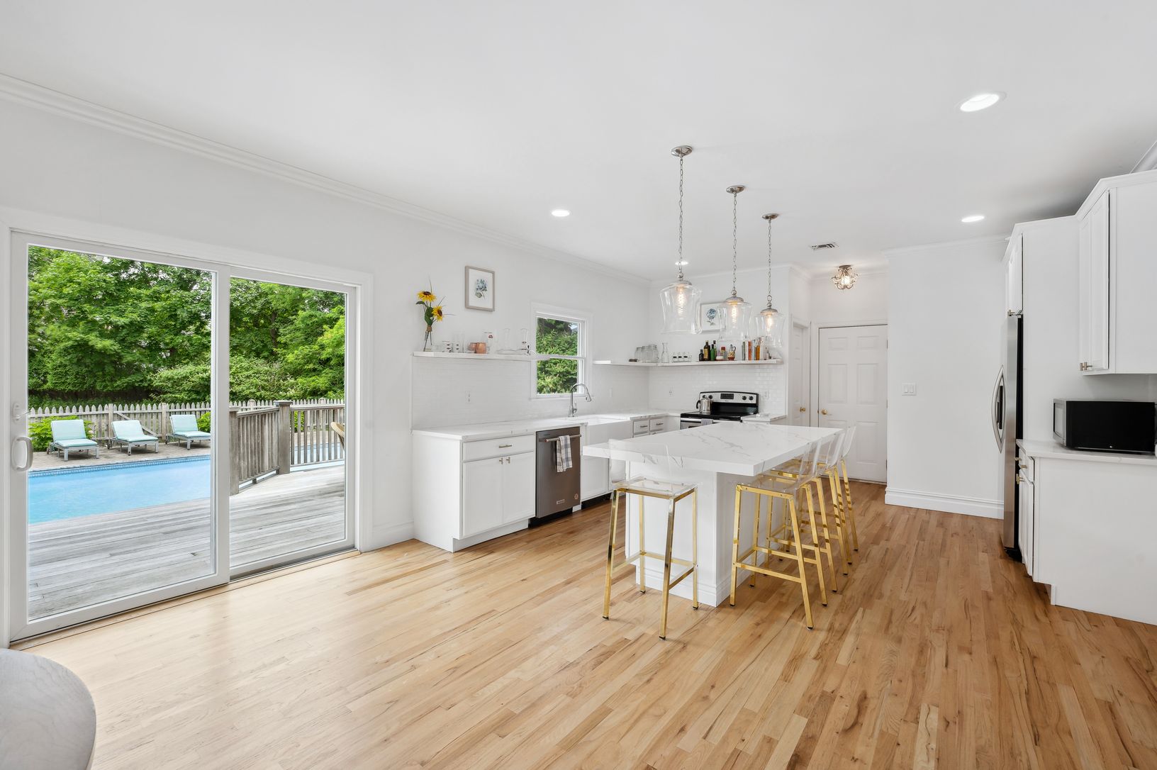 Half a mile from the Village of Westhampton Beach is this 4 bedroom, 3 bath traditional home with an in ground heated pool set on 1.21 acres of land surrounded by exquisite landscaping and mature trees. Tastefully renovated in 2020, this bright home offers a spacious floor plan for easy living and entertaining. The first floor has an easy flow from foyer to formal dining room or living room and surrounded by a large eat in kitchen and great r