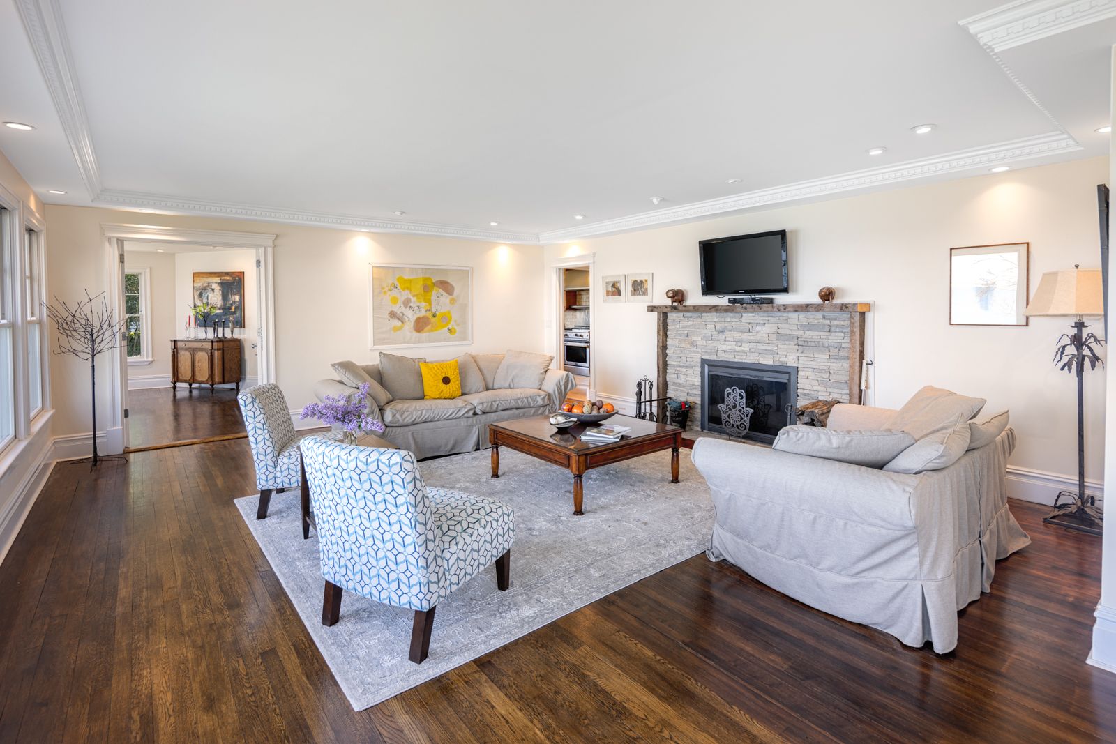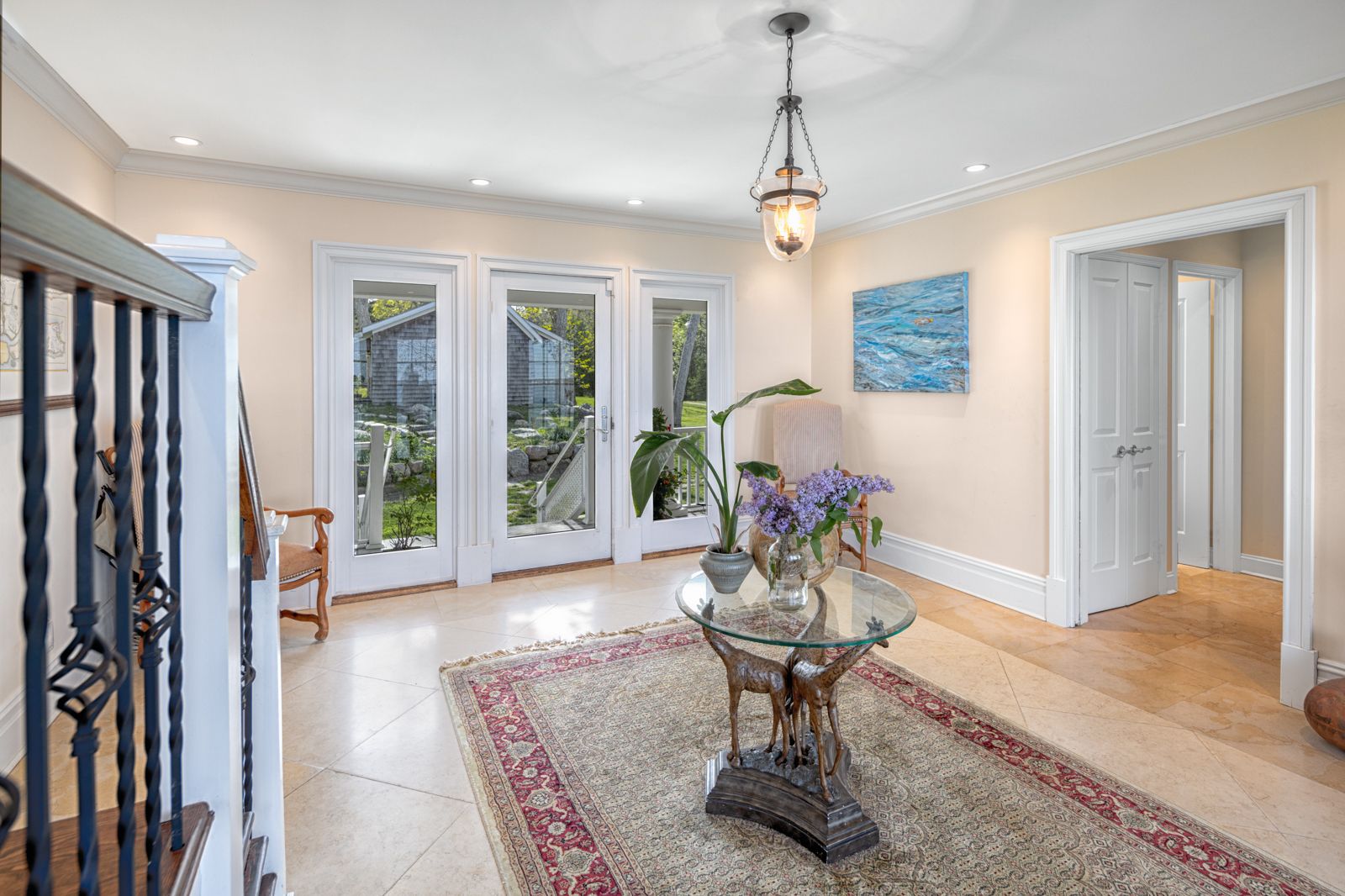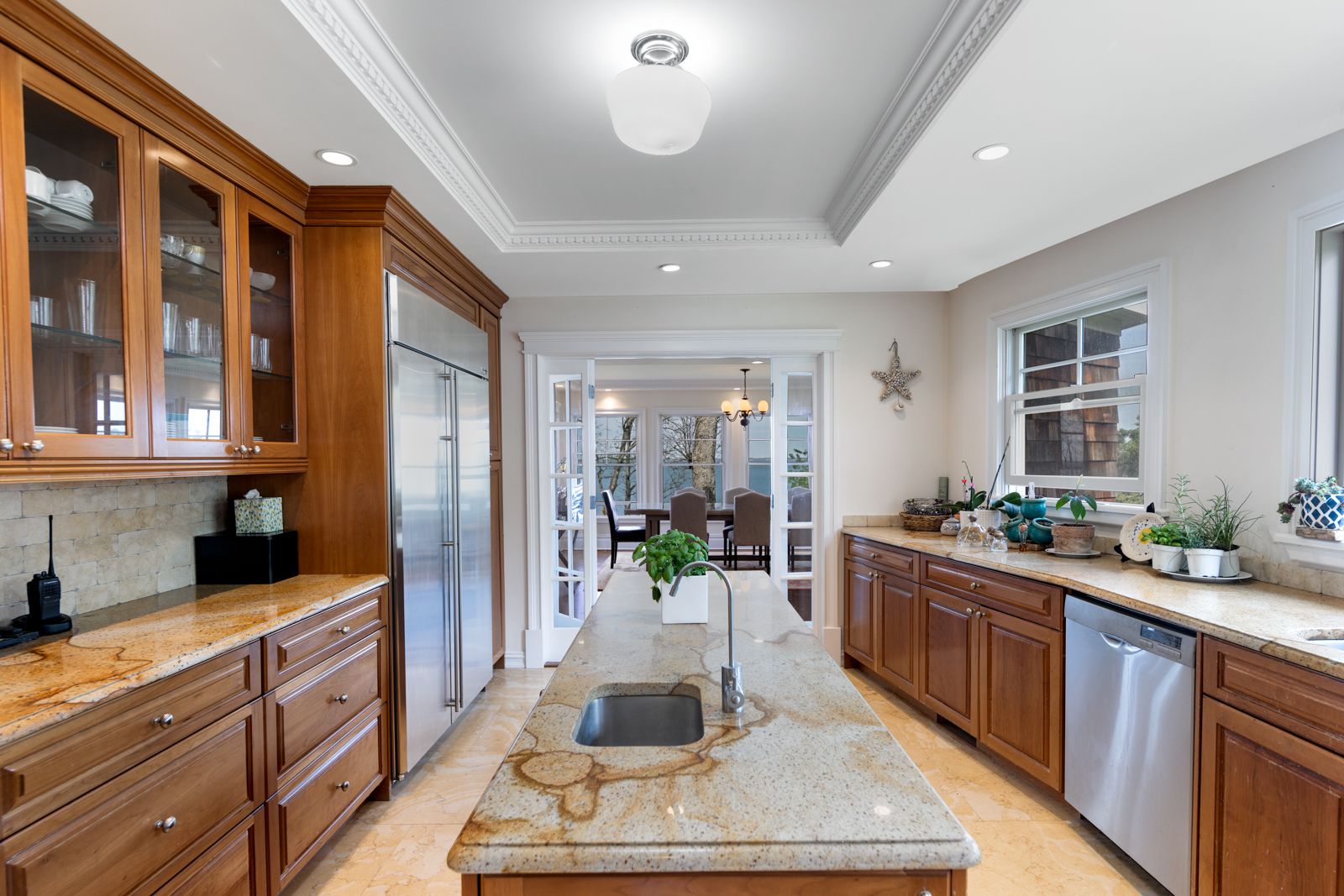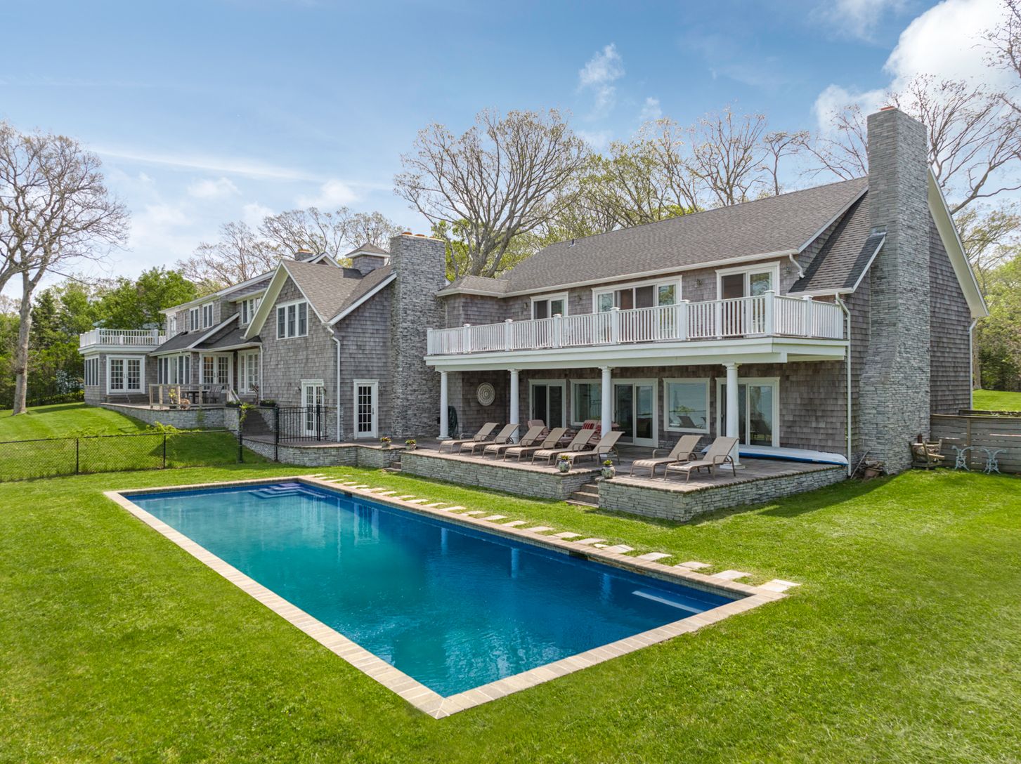 Spectacular Nassau Point Bayfront featuring +5,500 sq. feet home with endless waterfront views. Huge entry foyer, living room with fireplace, family room, formal dining room, and gourmet kitchen complete the entertaining space. Six spacious bedrooms with 5.5 baths plus a huge primary suite with library, patio and private decks overlooking the vast backyard with gunite pool and private stairs leading to the Bay beach. Experience summer at its b