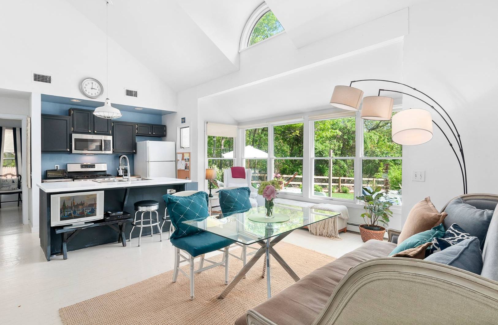 Private light and bright artist's cottage offers 3 bedrooms, 3 baths and an extra room for an office or storage. The centrally-air-conditioned home adjusts to any comfort level. There is a double-height living room with loft above which features skylights for abundant natural light. A fully-equipped chef's kitchen with gas stove, stainless steel appliances and a custom Jerusalem stone kitchen counter is open to the dining area featuring double