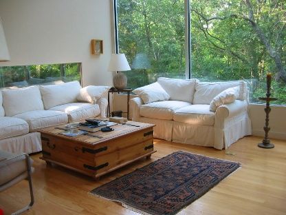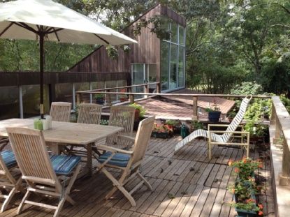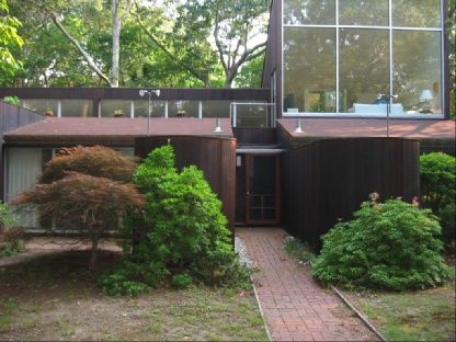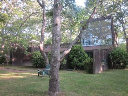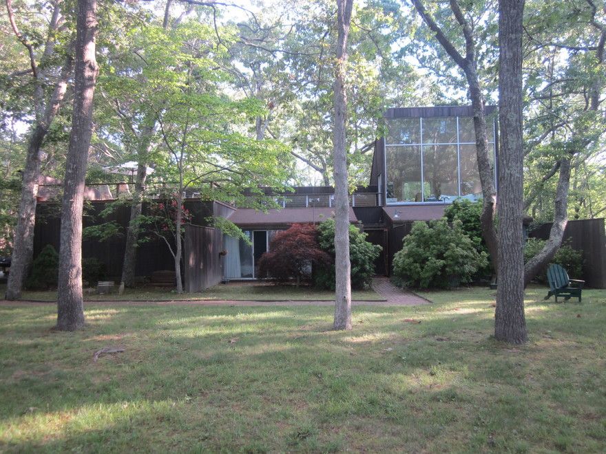 Located at the end of a quiet road, this vintage modern, designed by a French architect, offers delightful seclusion, water access, and scenic meadows. The unique top floor living room has floor- to- ceiling glass walls offering panoramic views, with sliders leading to a rooftop deck that creates an idyllic entertaining space. A spacious kitchen with island and lots of natural light, two bedrooms each with their own bathroom plus his and her o