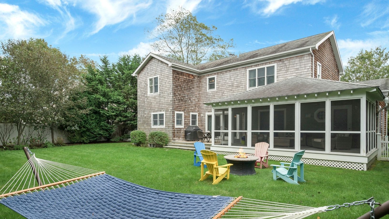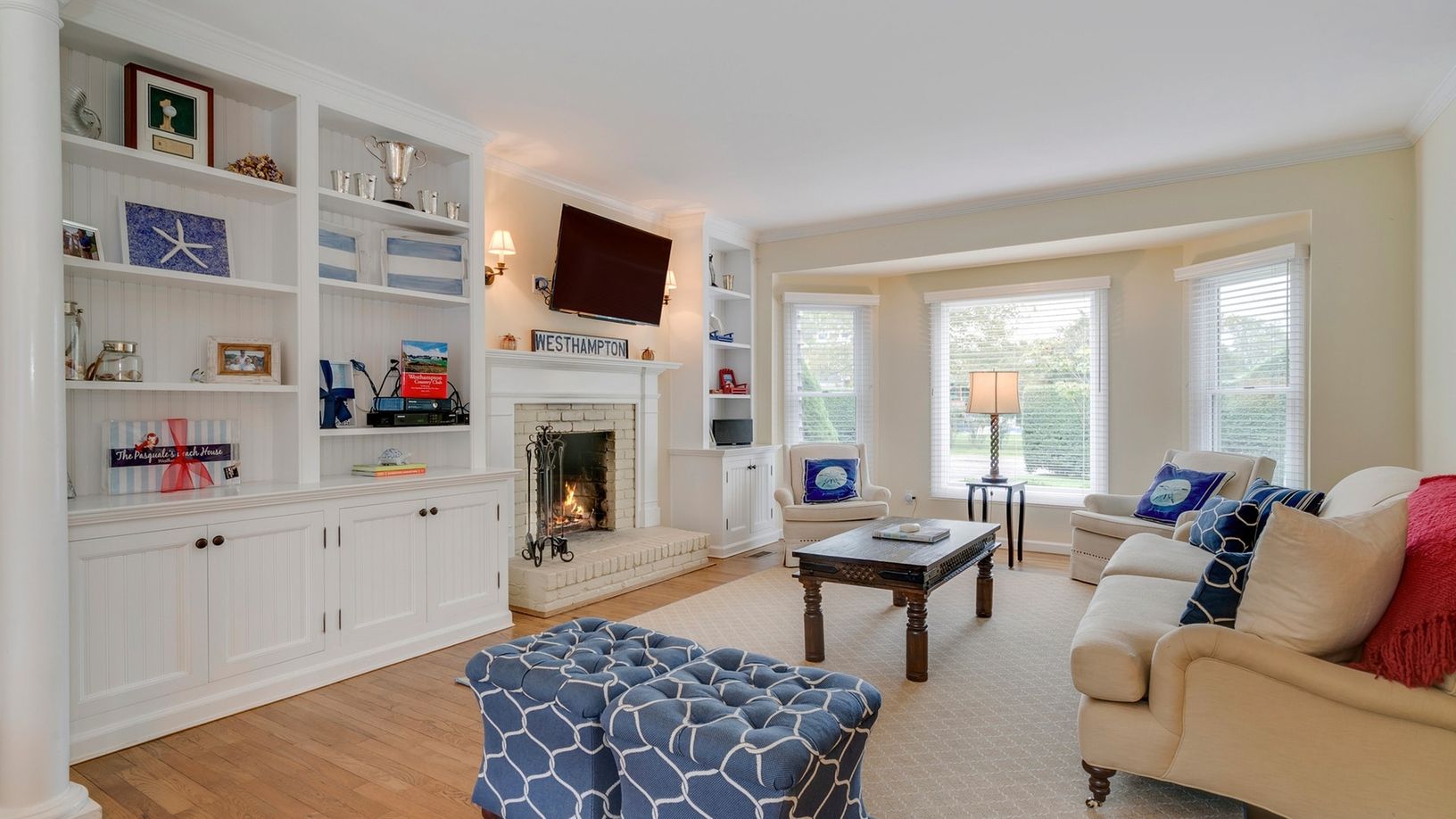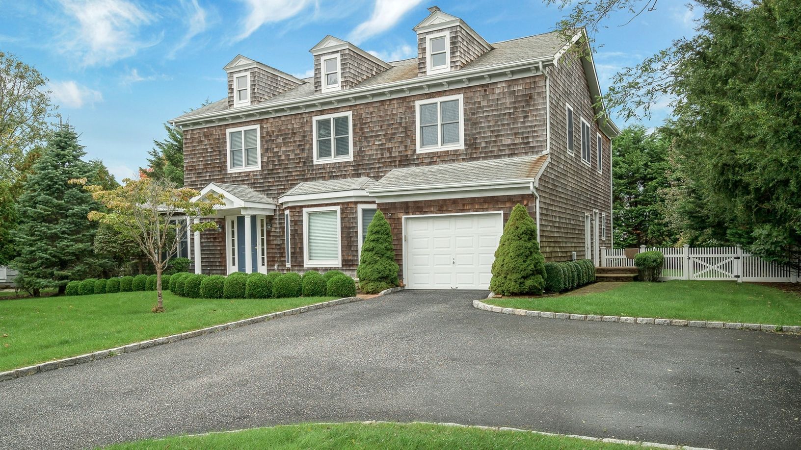 4 Bayview Drive in Westhampton is located south of Montauk Highway and south of South Country Road. The home's first floor features an open floor plan with sizeable kitchen, walk in pantry, dining room, living room with wood burning fire place, den with custom built-ins, bedroom, and full bathroom with laundry. The second level is complete with three ensuite bedrooms, including the master suite with his and her walk-in closets. Large outdoor,