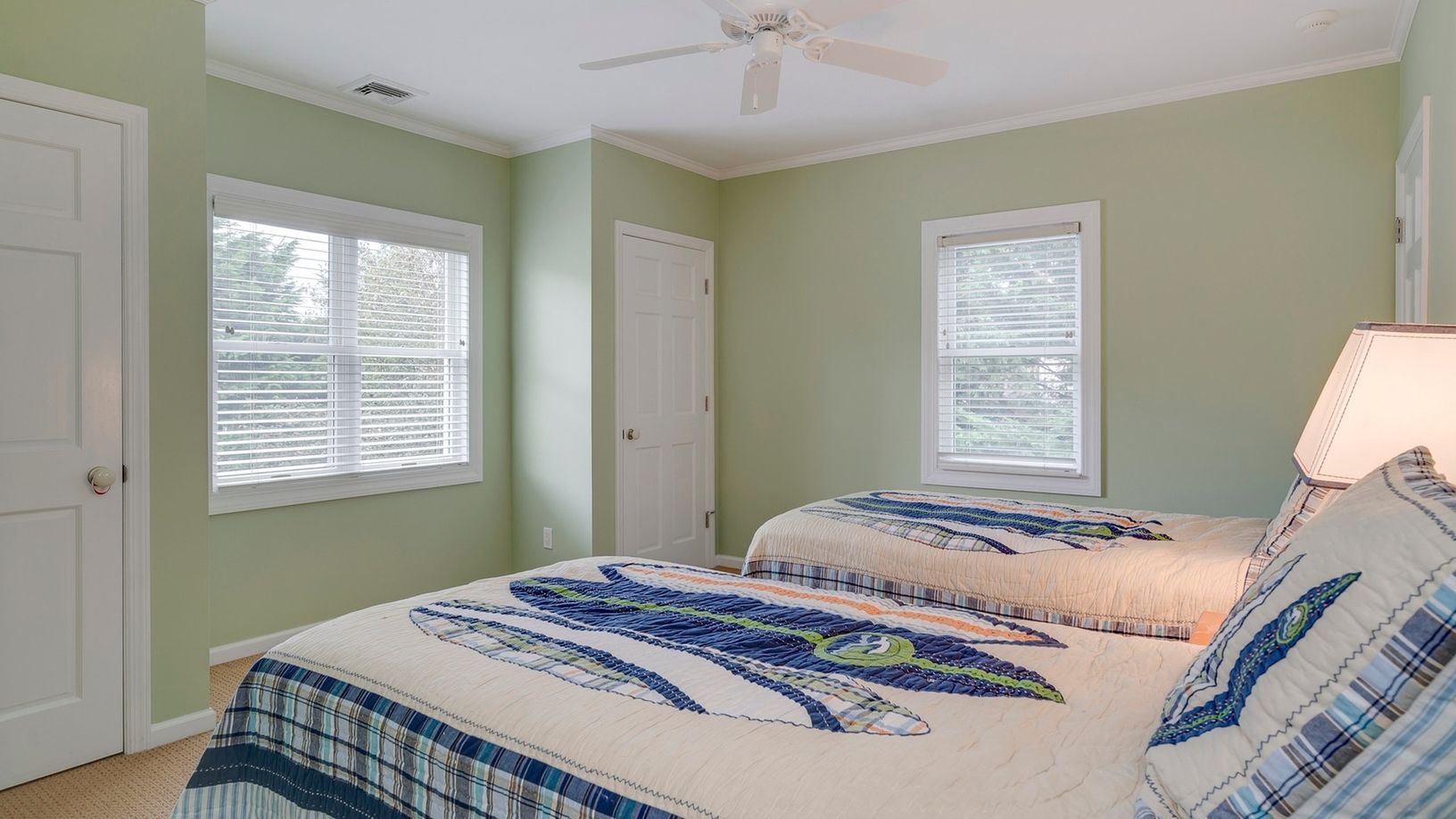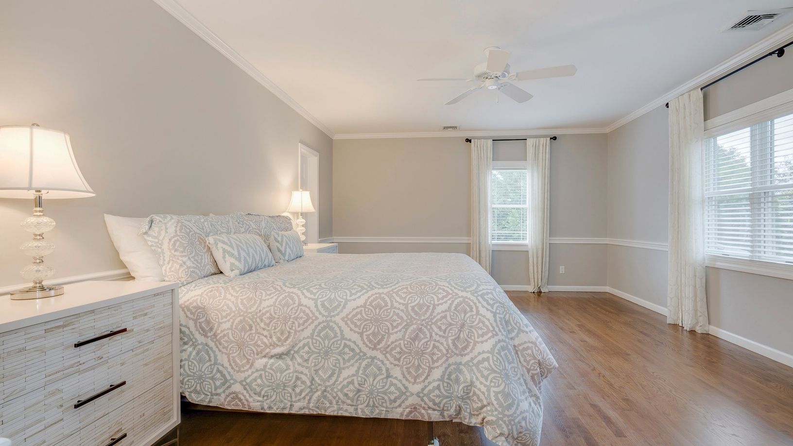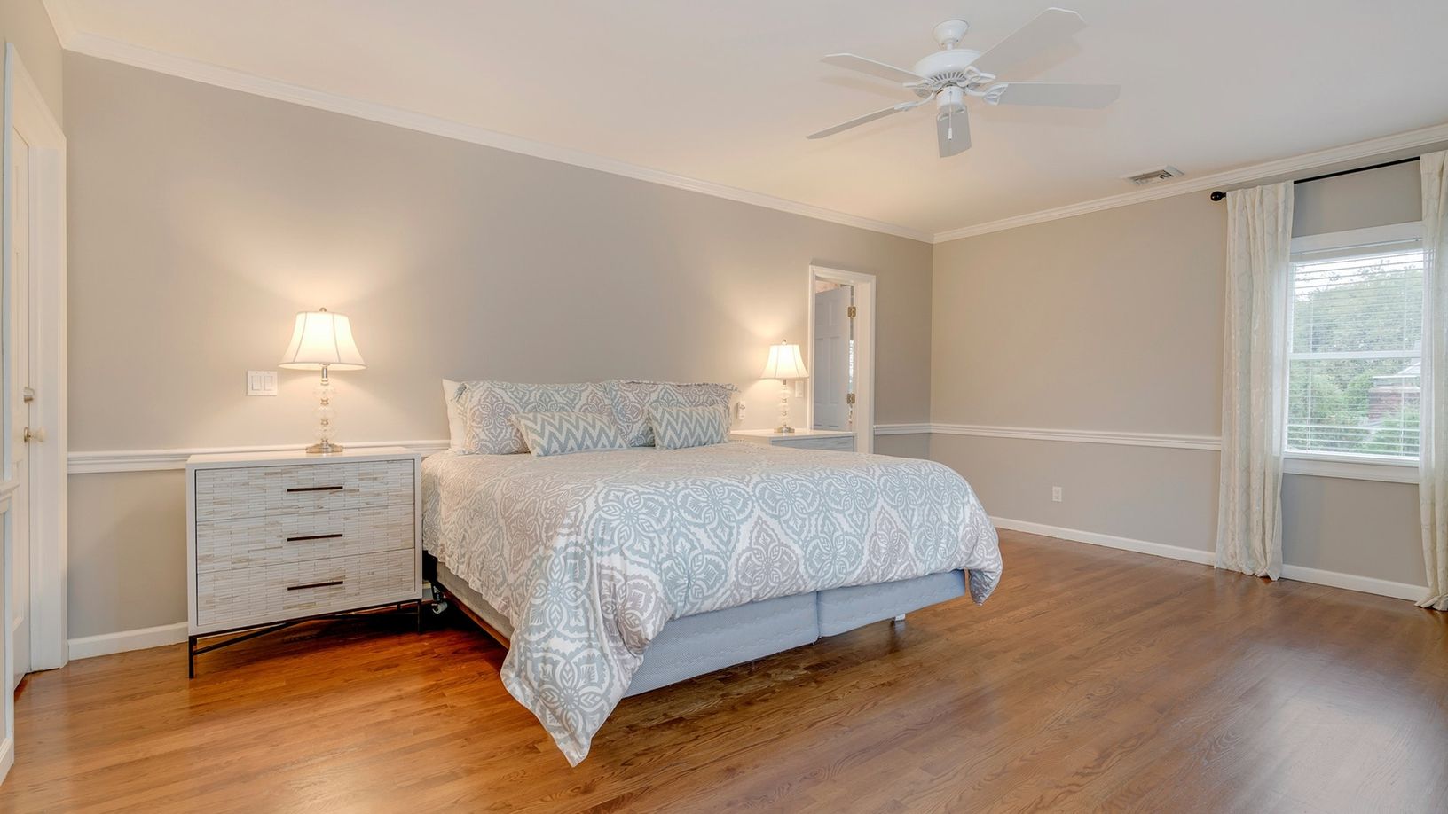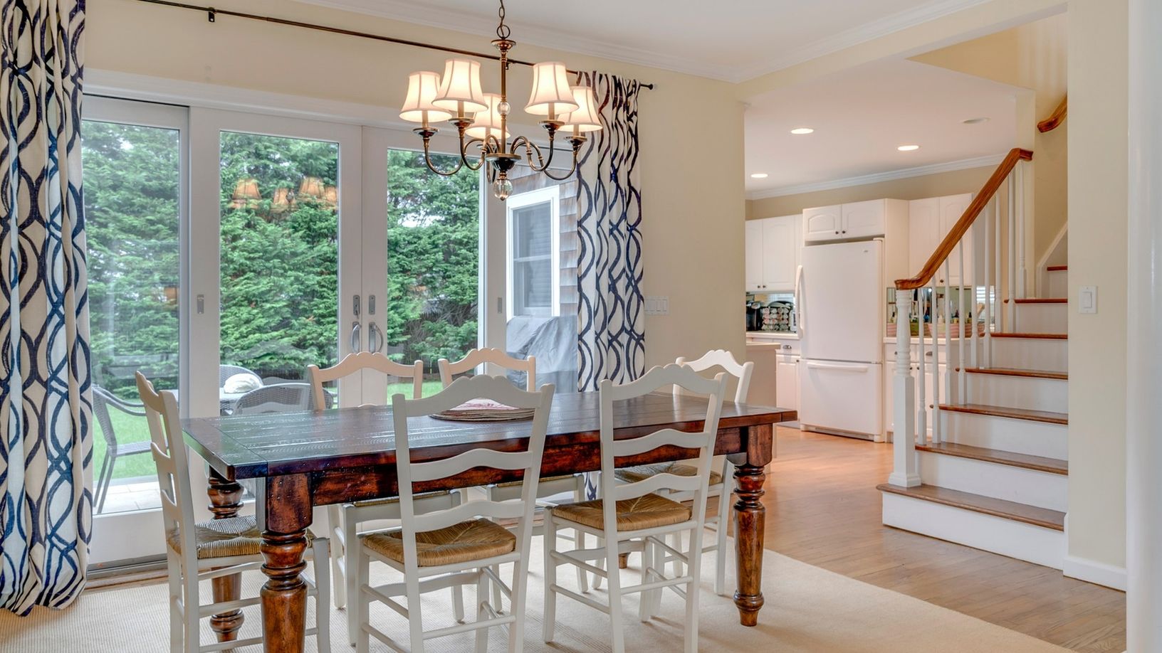 4 Bayview Drive in Westhampton is located south of Montauk Highway and south of South Country Road. The home's first floor features an open floor plan with sizeable kitchen, walk in pantry, dining room, living room with wood burning fire place, den with custom built-ins, bedroom, and full bathroom with laundry. The second level is complete with three ensuite bedrooms, including the master suite with his and her walk-in closets. Large outdoor,