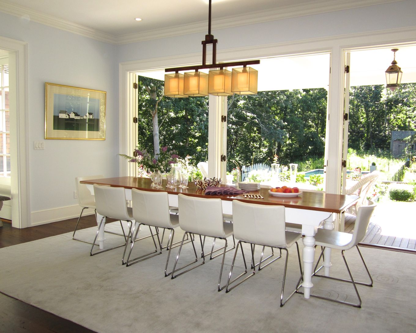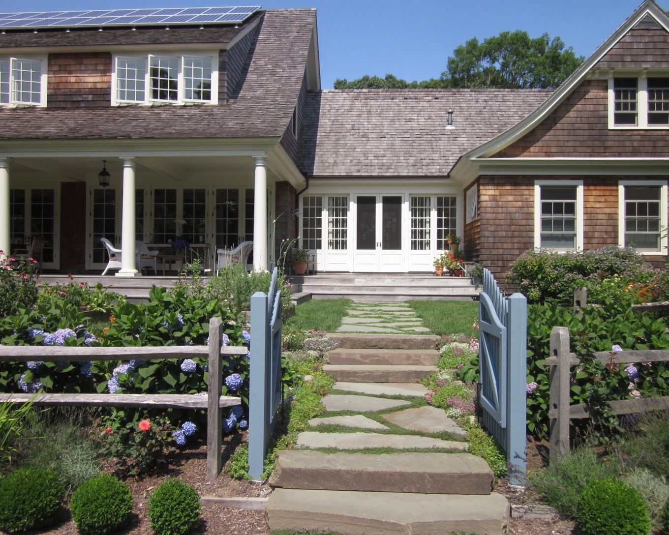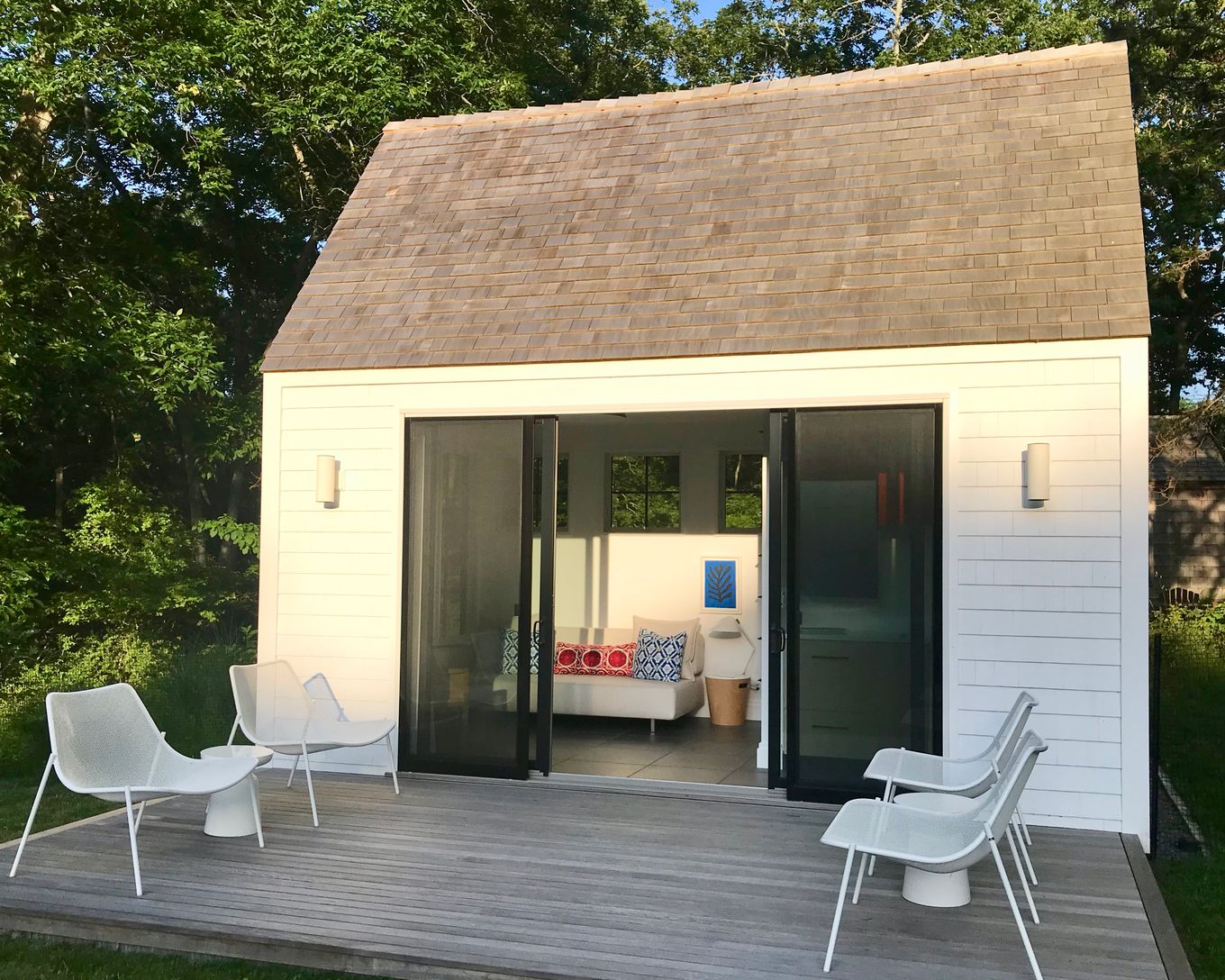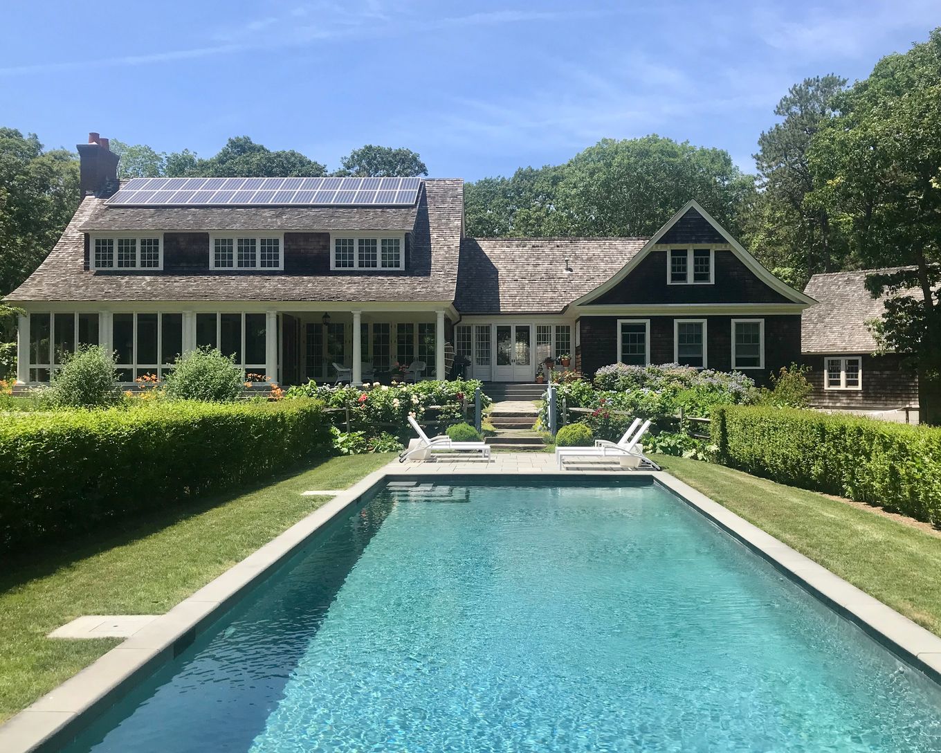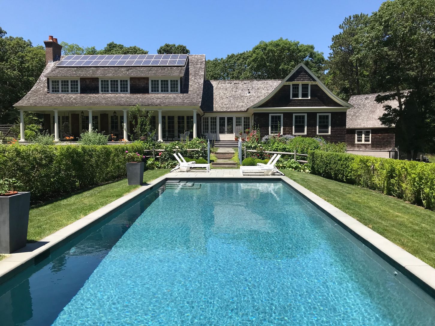 Gorgeous in Amagansett. This shingle-style house with contemporary light-filled interiors is set in the Devon Highlands estate area. Very private with lush gardens, but centrally located less than a mile to ocean beaches, ½ mile to Gardiner’s Bay beaches, and 2 miles from the Amagansett Farmers Market and village. (Several bikes provided.) Perfect set up as the first floor of the main house is a gracious open area. The ten-foot-tall coffered-