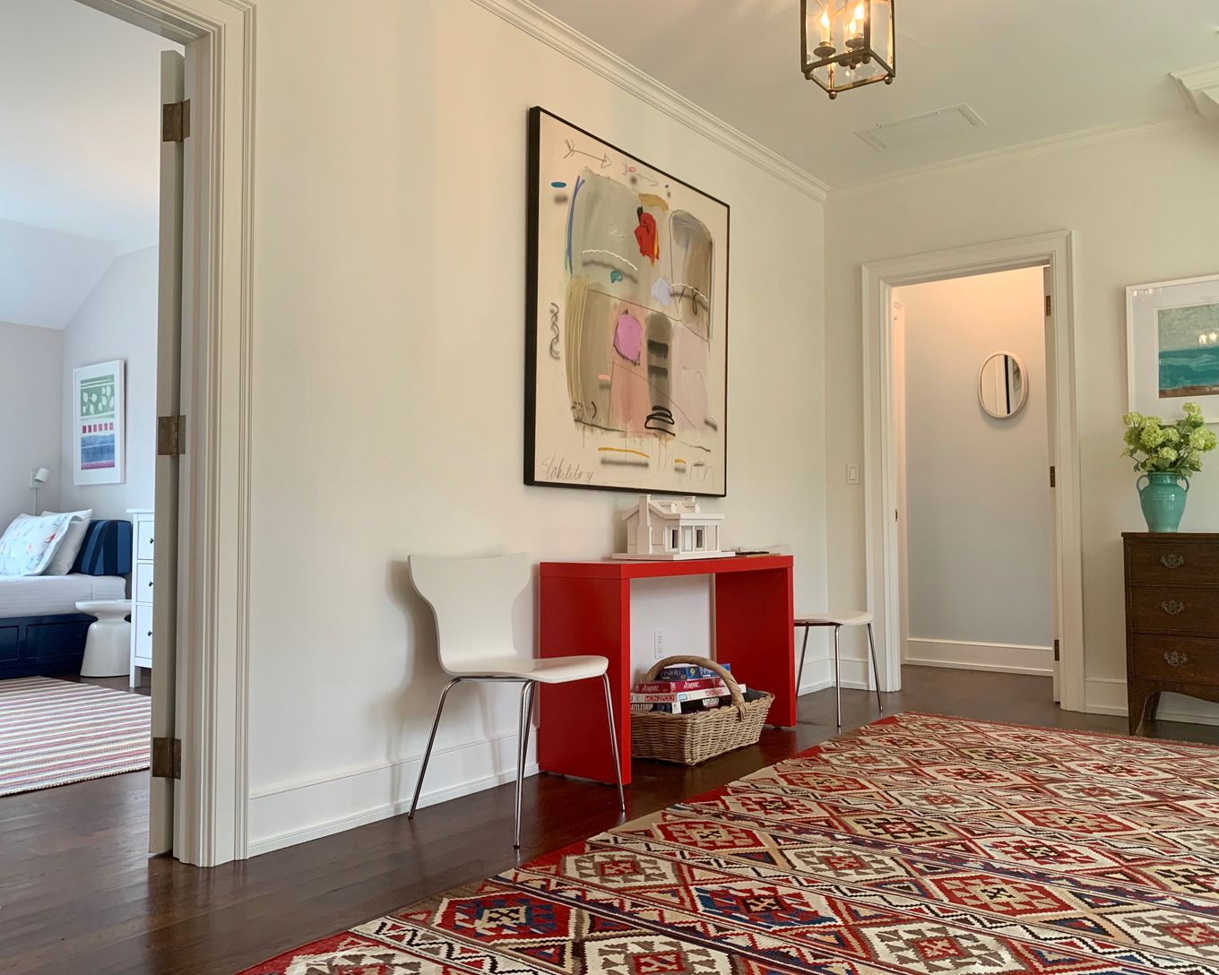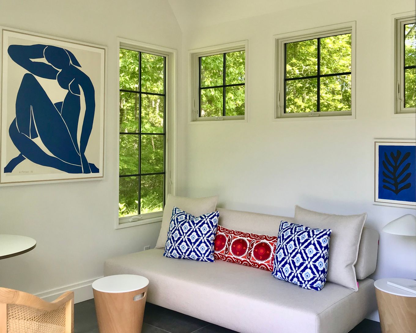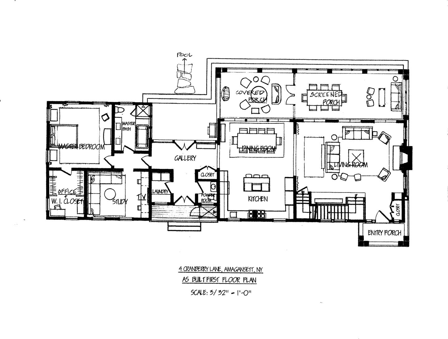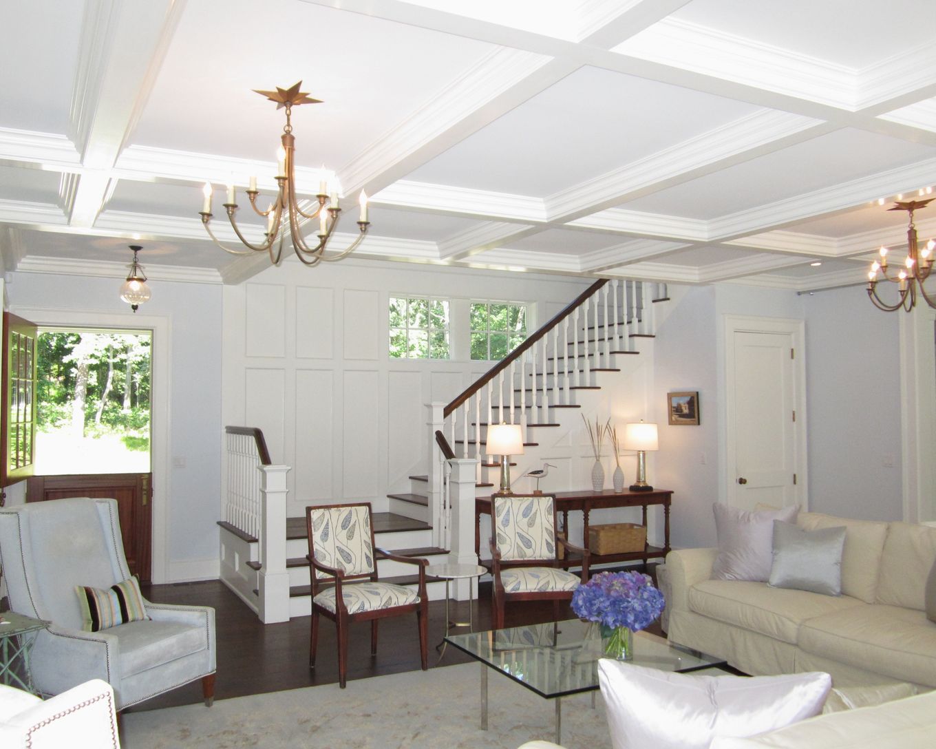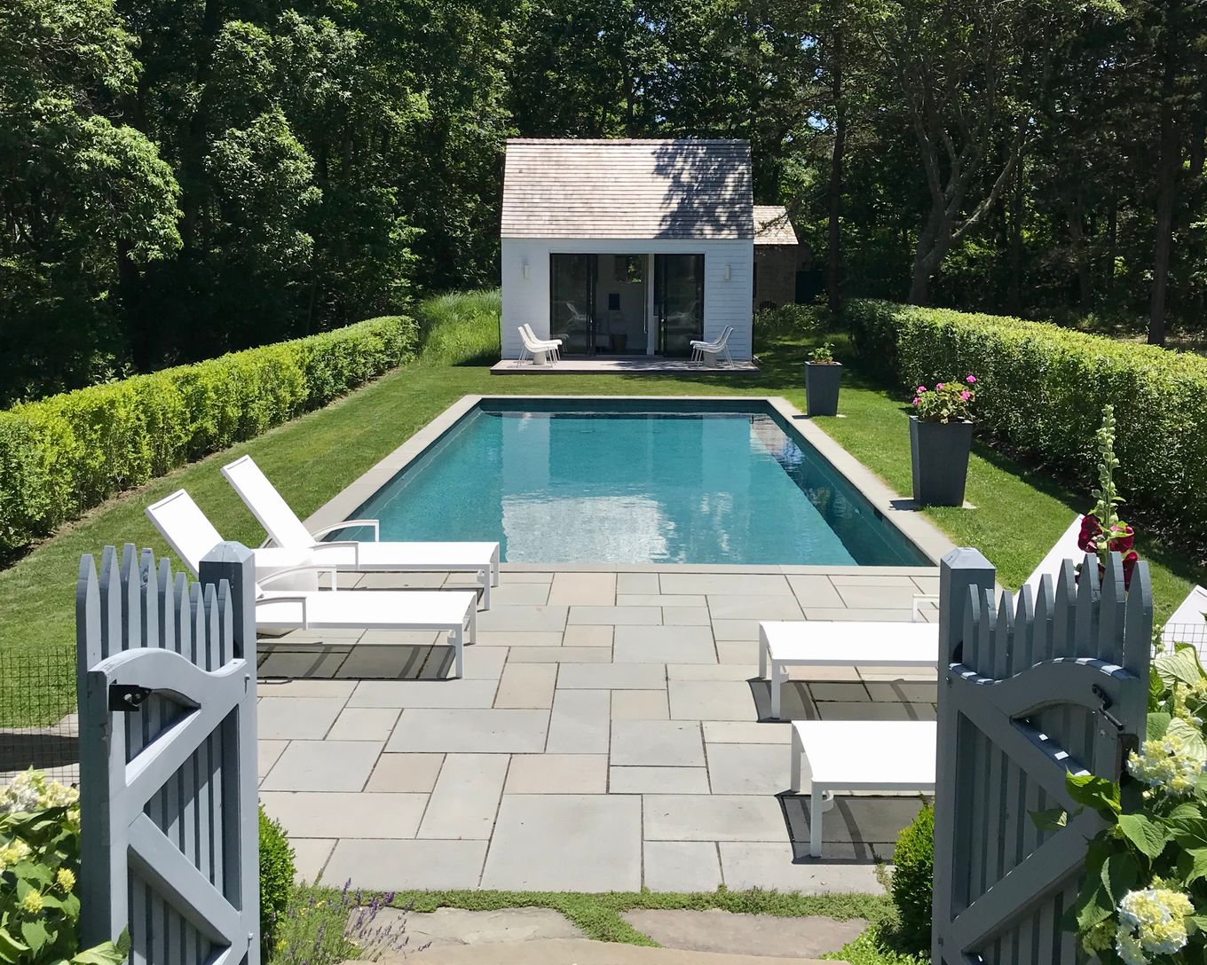 Gorgeous in Amagansett. This shingle-style house with contemporary light-filled interiors is set in the Devon Highlands estate area. Very private with lush gardens, but centrally located less than a mile to ocean beaches, ½ mile to Gardiner’s Bay beaches, and 2 miles from the Amagansett Farmers Market and village. (Several bikes provided.) Perfect set up as the first floor of the main house is a gracious open area. The ten-foot-tall coffered-